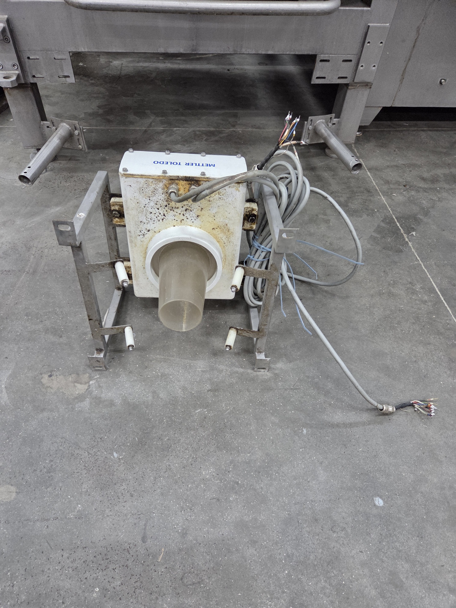 Mettler-Toledo GmbH pipe line metal detector, diameter clearance: 150 mm, total dimensions: 450 mm x 450 mm x 500 mm.