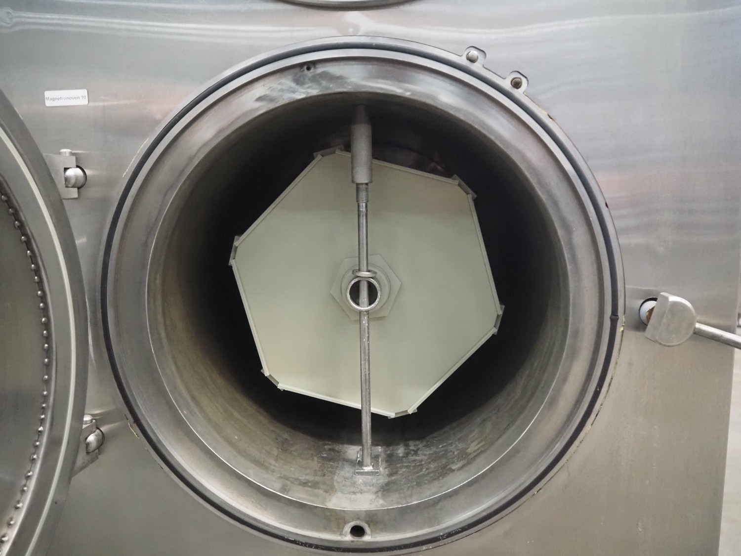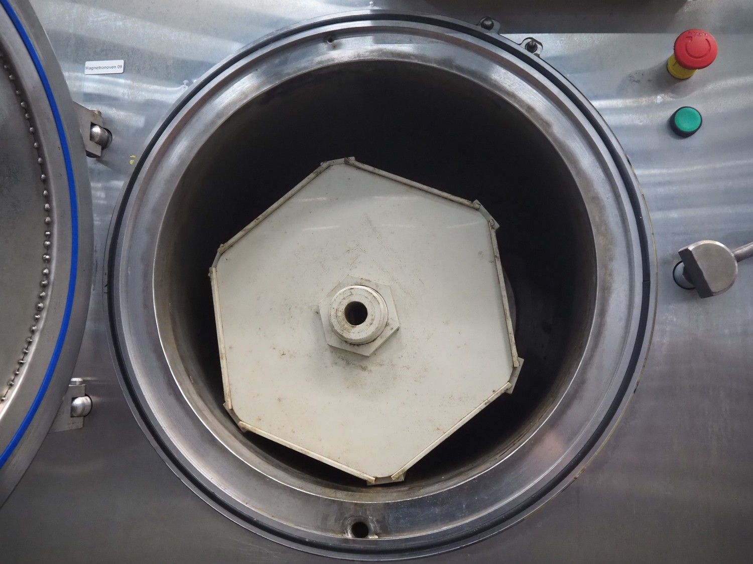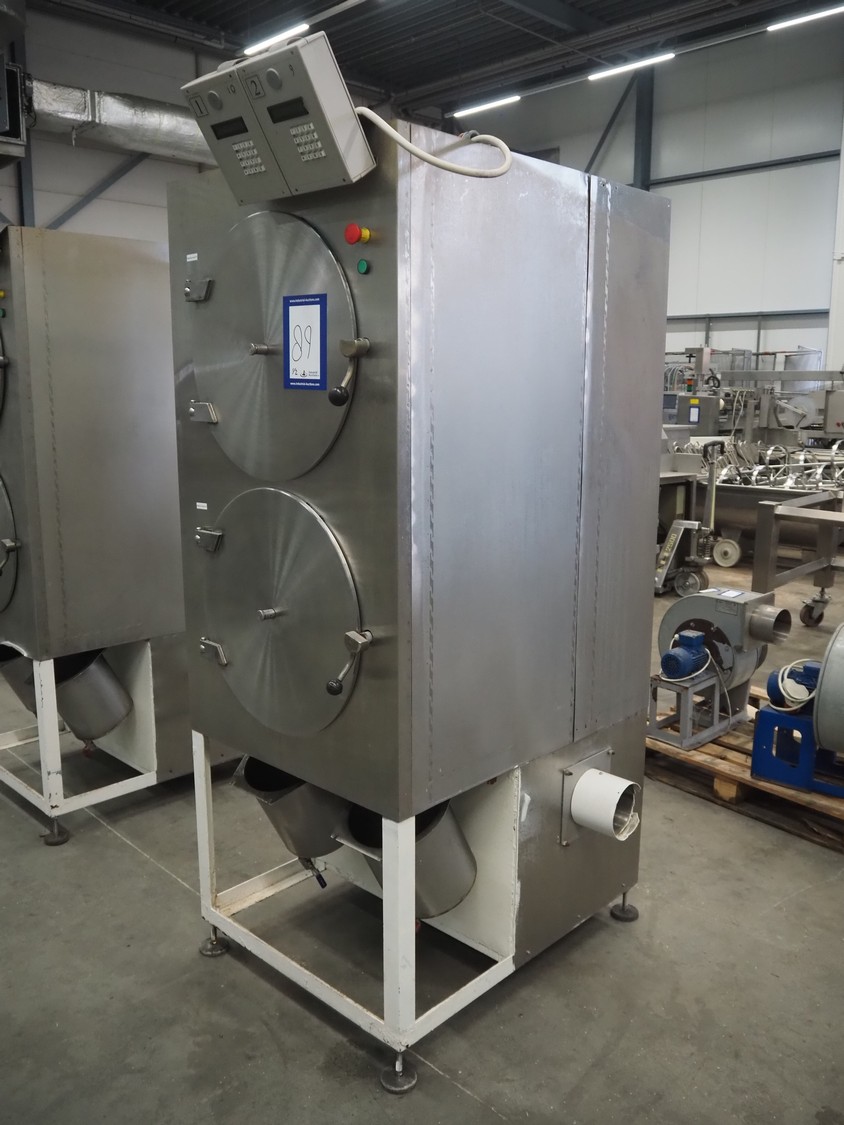 Vacuum oven/microwave, inside dimensions: (2x) Ø 440 mm x 690 mm, dimensions plastic forms: 500 mm x 370 mm x 550 mm, total dimensions: 1020 mm x 1600 mm x 2200 mm.