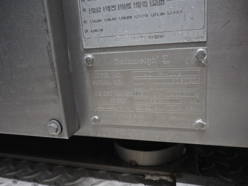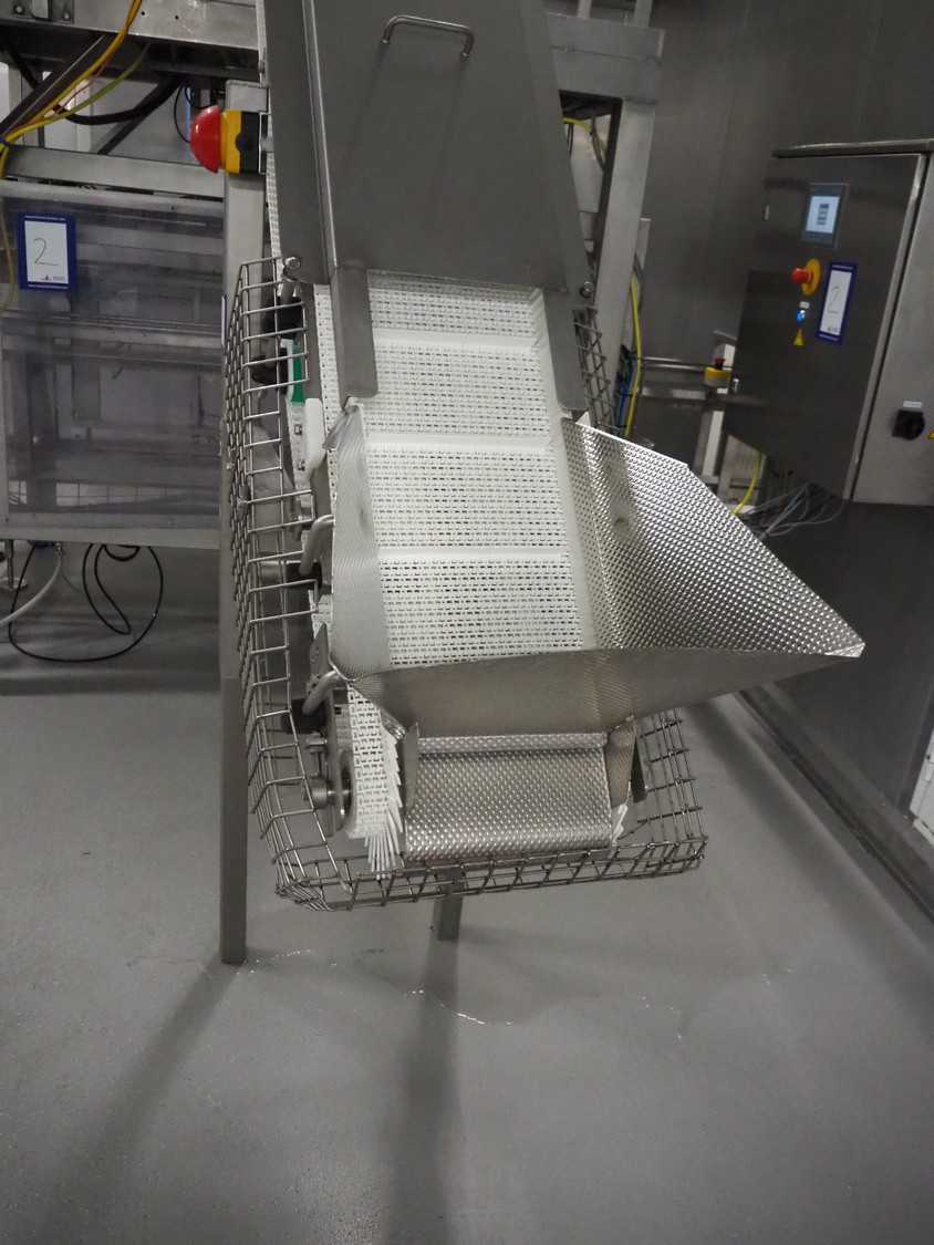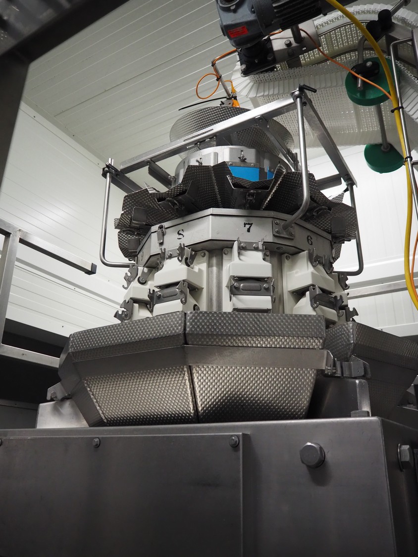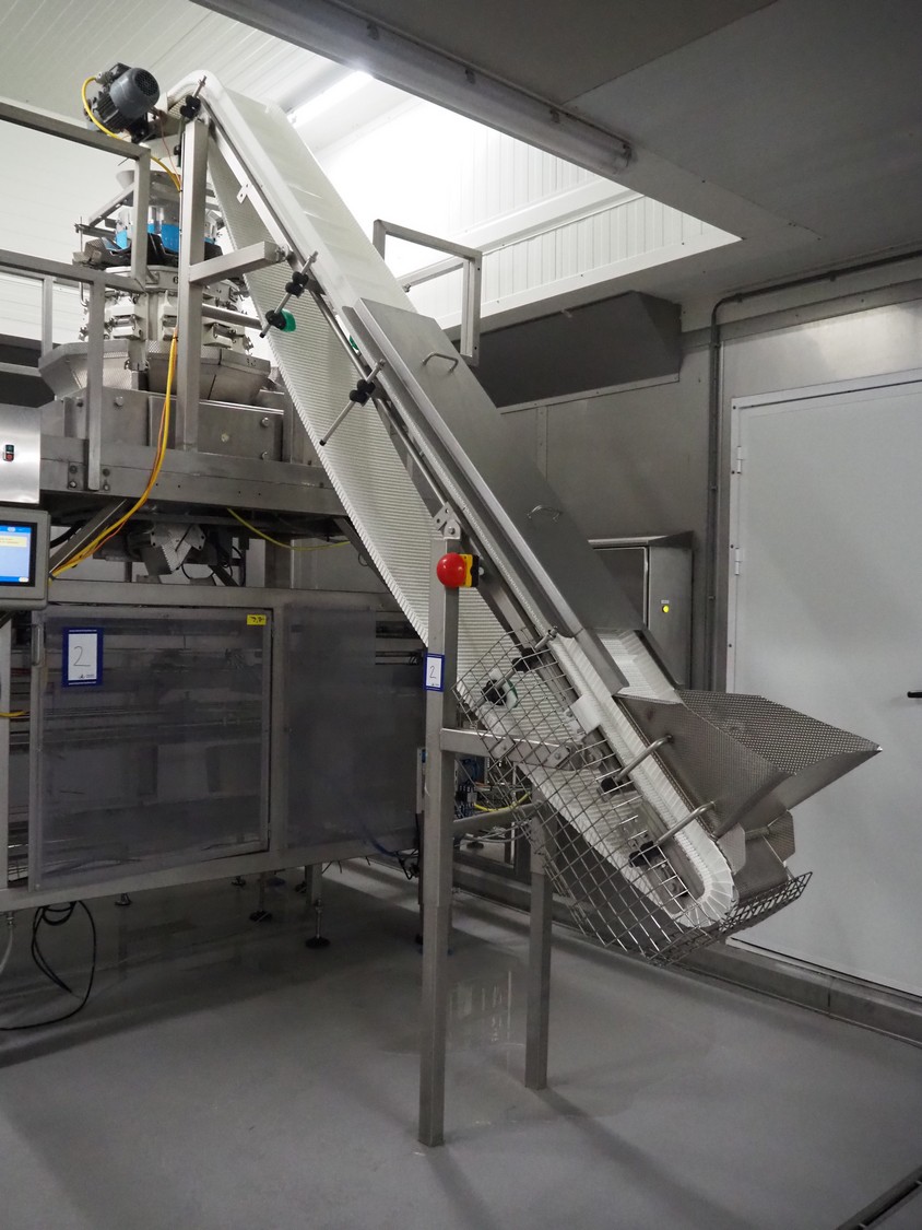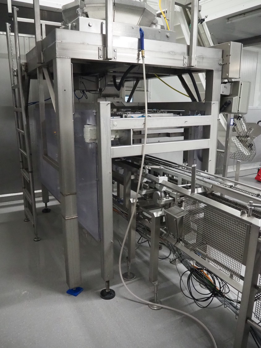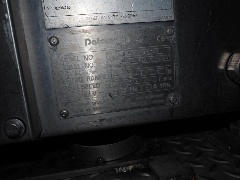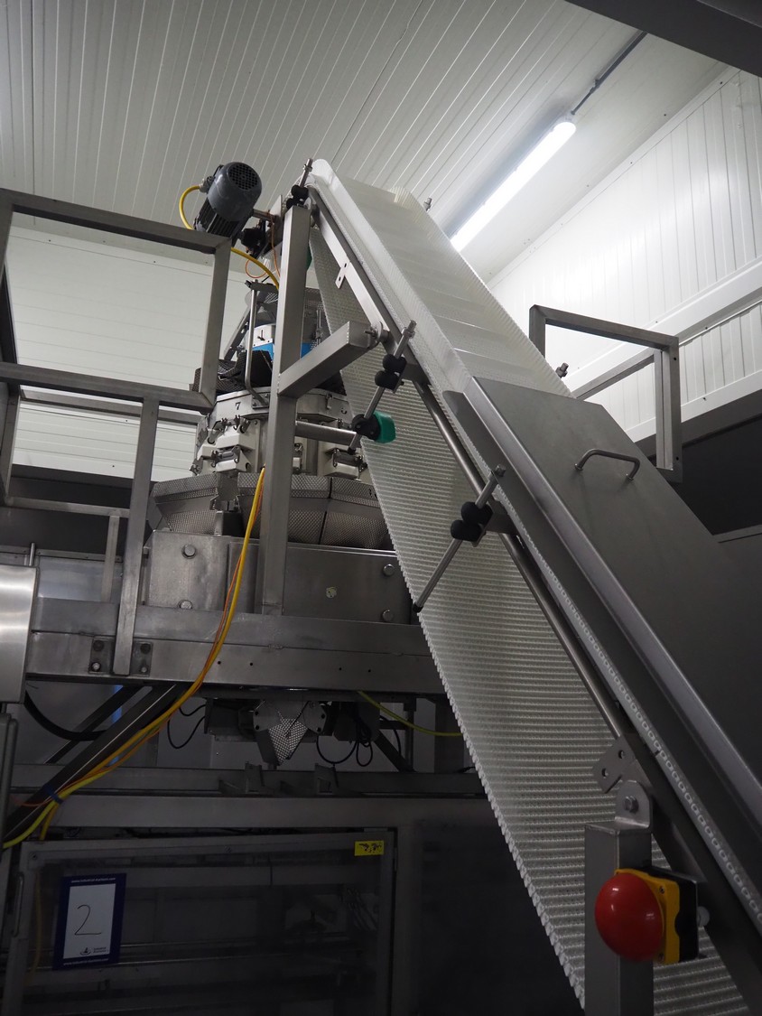 Yamato Scale 10-heads multihead weigher with s/s platform, elevating belt and G. Mondini S.p.a. chain conveyor with tray holder, type Yamato Scale multihead weigher: ADW-410SV, serial number: WG060924, 220/240 V, 1 Ph, 50/60 Hz, 5 A, weight range: 8-1000 gram, type: Mondini S.p.a. chain conveyor: C/T, serial number: A/11/A-00292, year of construction: 07/2011, 400 V, 3 Ph, 50 Hz, elevating belt with dividers, plastic belt, belt width: 180 mm, distance between dividers: 150 mm, divider height: 30 mm, dimensions elevating belt: 3100 mm x 600 mm x 3500 mm, dimensions multihead weigher: 1800 mm x 2100 mm x 3500 mm, dimensions chain conveyor: 6000 mm x 1150 mm x 1650 mm, dimensions elevating belt: 3100 mm x 600 mm x 3500 mm and dimensions switch cabinet: 300 mm x 800 mm x 850 mm. Lot already professionally dismantled and transported to Boxtel.