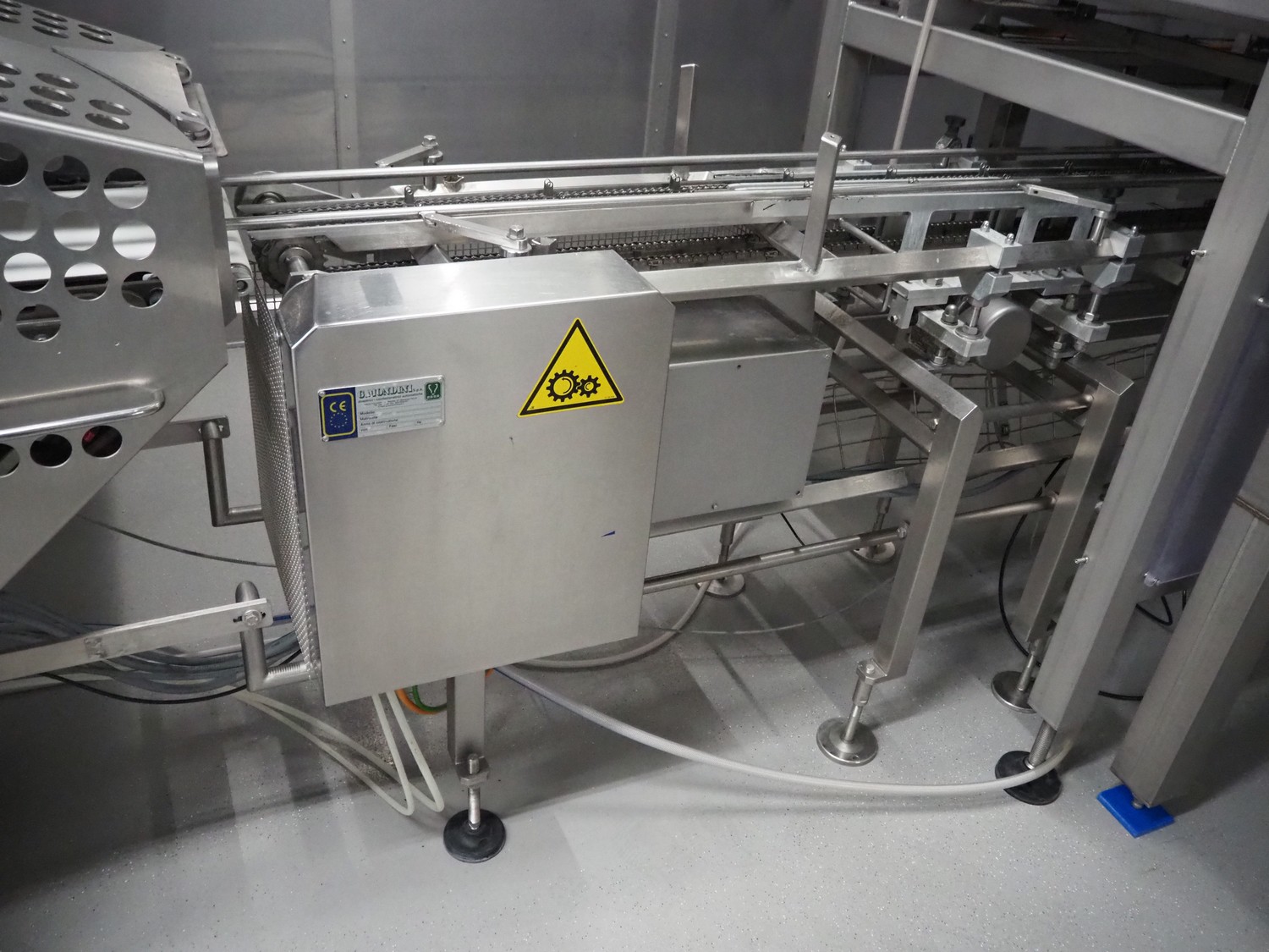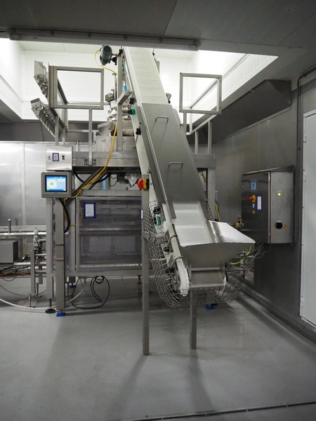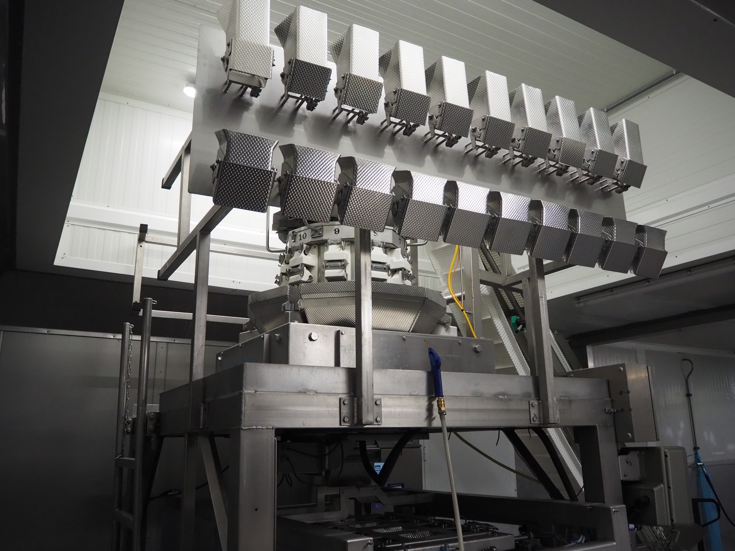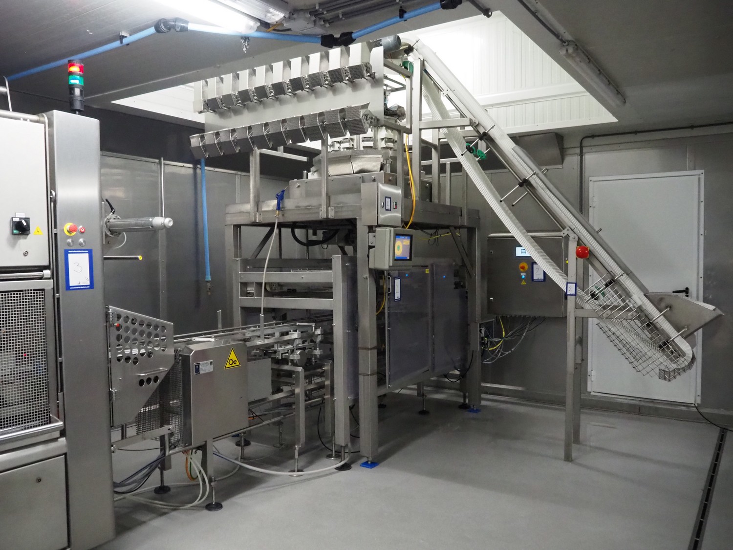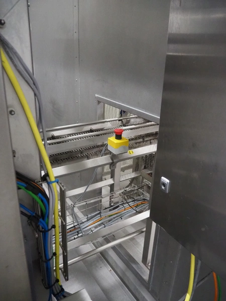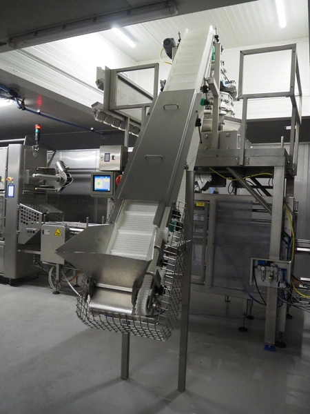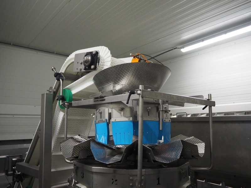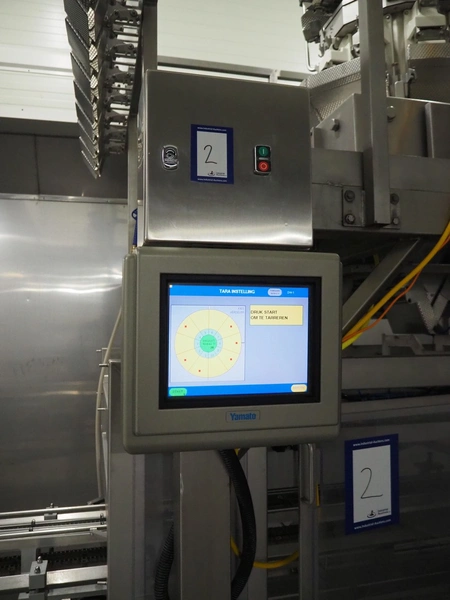 Yamato Scale 10-heads multihead weigher with s/s platform, elevating belt and G. Mondini S.p.a. chain conveyor with tray holder, type Yamato Scale multihead weigher: ADW-410SV, serial number: WG060924, 220/240 V, 1 Ph, 50/60 Hz, 5 A, weight range: 8-1000 gram, type: Mondini S.p.a. chain conveyor: C/T, serial number: A/11/A-00292, year of construction: 07/2011, 400 V, 3 Ph, 50 Hz, elevating belt with dividers, plastic belt, belt width: 180 mm, distance between dividers: 150 mm, divider height: 30 mm, dimensions elevating belt: 3100 mm x 600 mm x 3500 mm, dimensions multihead weigher: 1800 mm x 2100 mm x 3500 mm, dimensions chain conveyor: 6000 mm x 1150 mm x 1650 mm, dimensions elevating belt: 3100 mm x 600 mm x 3500 mm and dimensions switch cabinet: 300 mm x 800 mm x 850 mm. Lot already professionally dismantled and transported to Boxtel.
