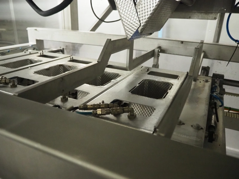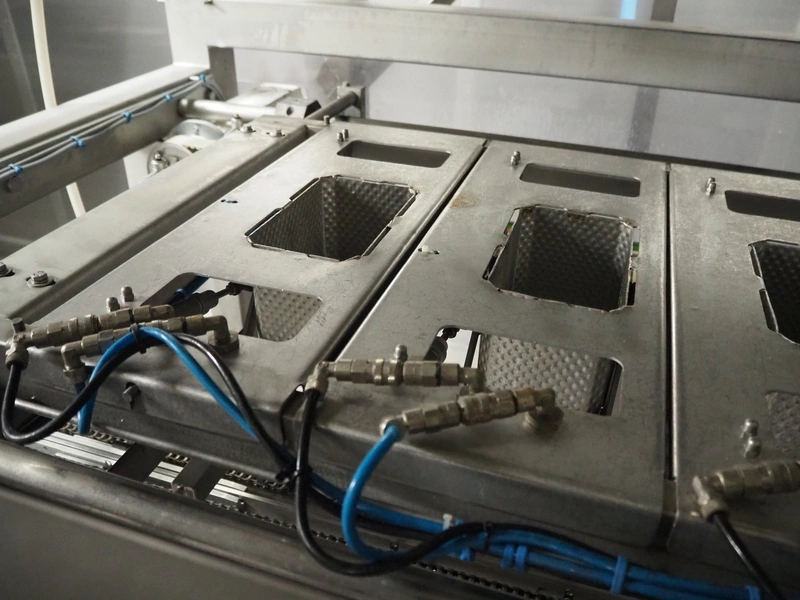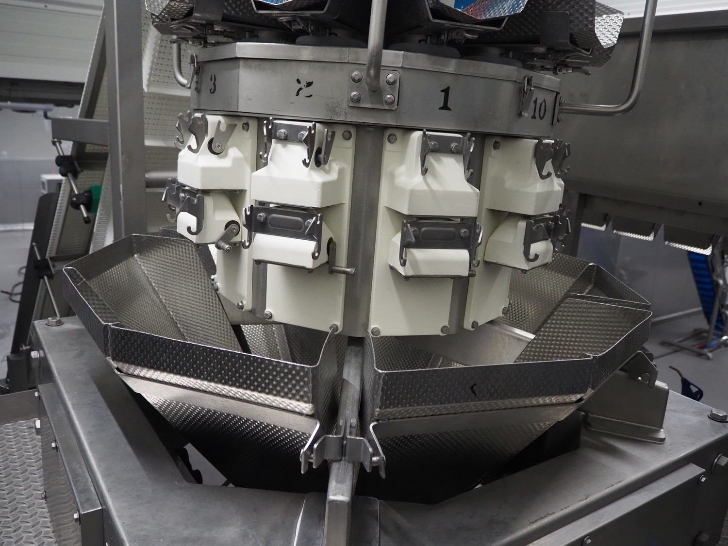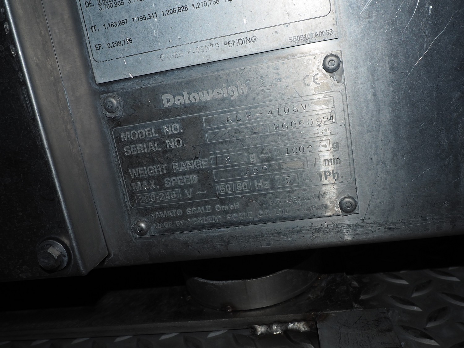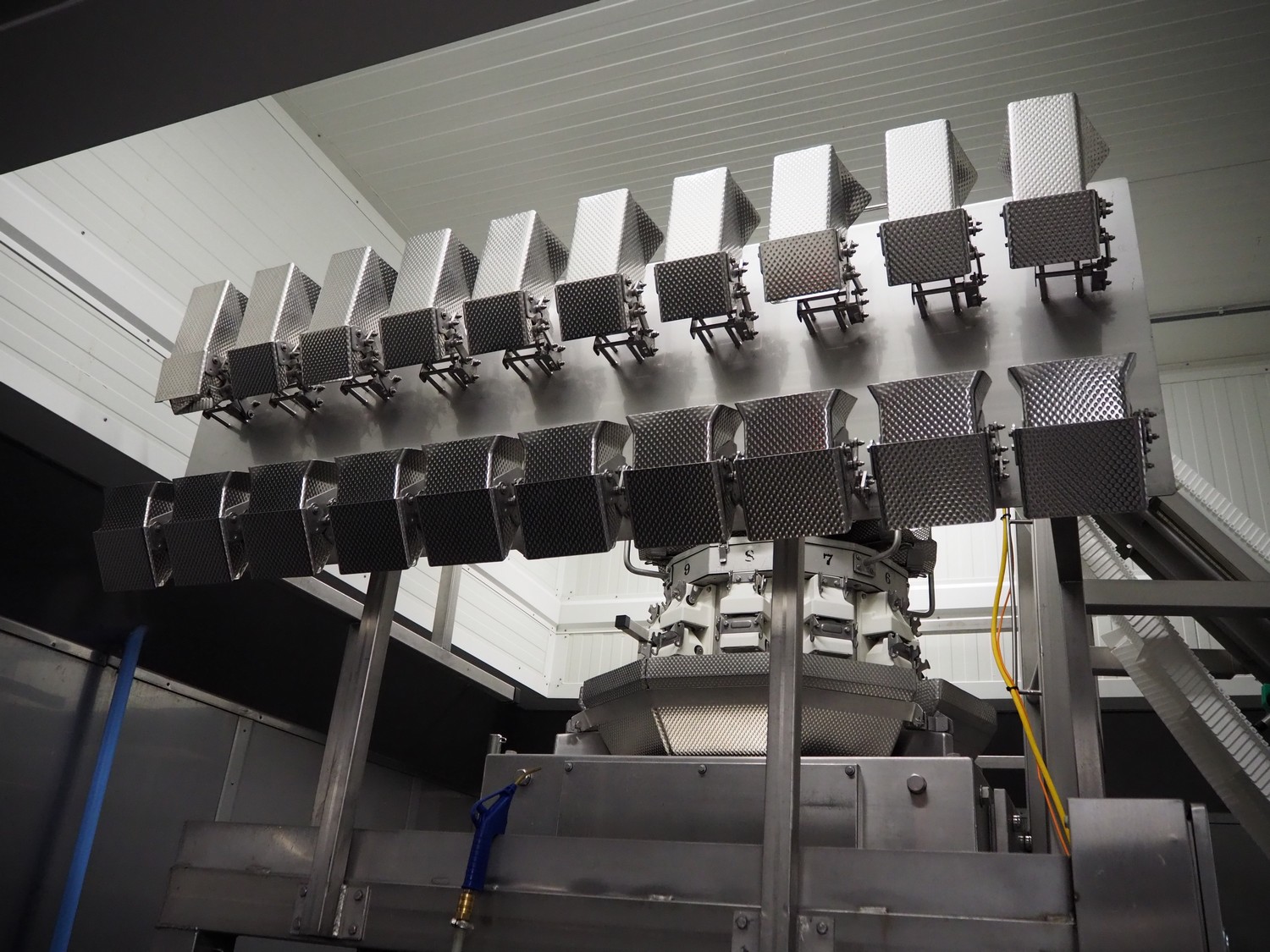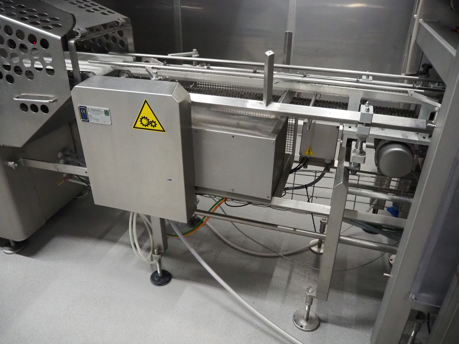 Yamato Scale 10-heads multihead weigher with s/s platform, elevating belt and G. Mondini S.p.a. chain conveyor with tray holder, type Yamato Scale multihead weigher: ADW-410SV, serial number: WG060924, 220/240 V, 1 Ph, 50/60 Hz, 5 A, weight range: 8-1000 gram, type: Mondini S.p.a. chain conveyor: C/T, serial number: A/11/A-00292, year of construction: 07/2011, 400 V, 3 Ph, 50 Hz, elevating belt with dividers, plastic belt, belt width: 180 mm, distance between dividers: 150 mm, divider height: 30 mm, dimensions elevating belt: 3100 mm x 600 mm x 3500 mm, dimensions multihead weigher: 1800 mm x 2100 mm x 3500 mm, dimensions chain conveyor: 6000 mm x 1150 mm x 1650 mm, dimensions elevating belt: 3100 mm x 600 mm x 3500 mm and dimensions switch cabinet: 300 mm x 800 mm x 850 mm. Lot already professionally dismantled and transported to Boxtel.