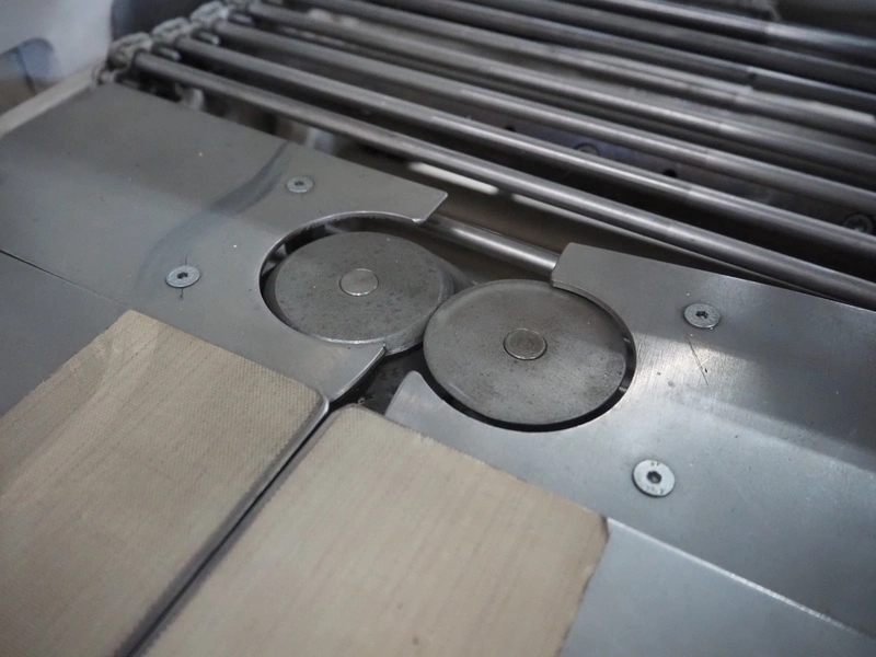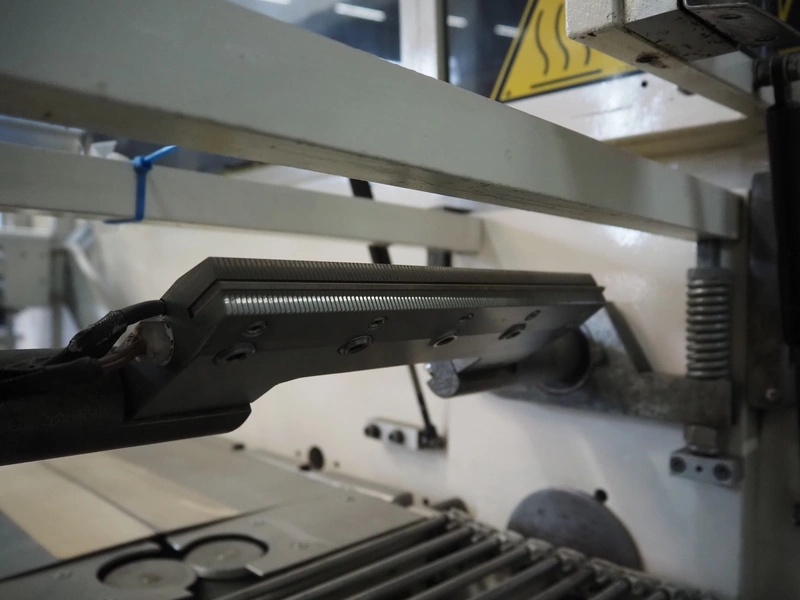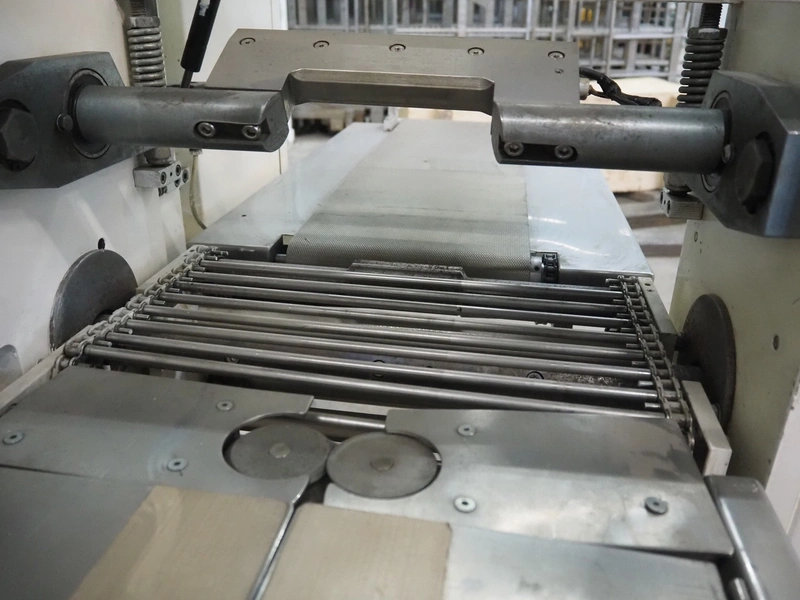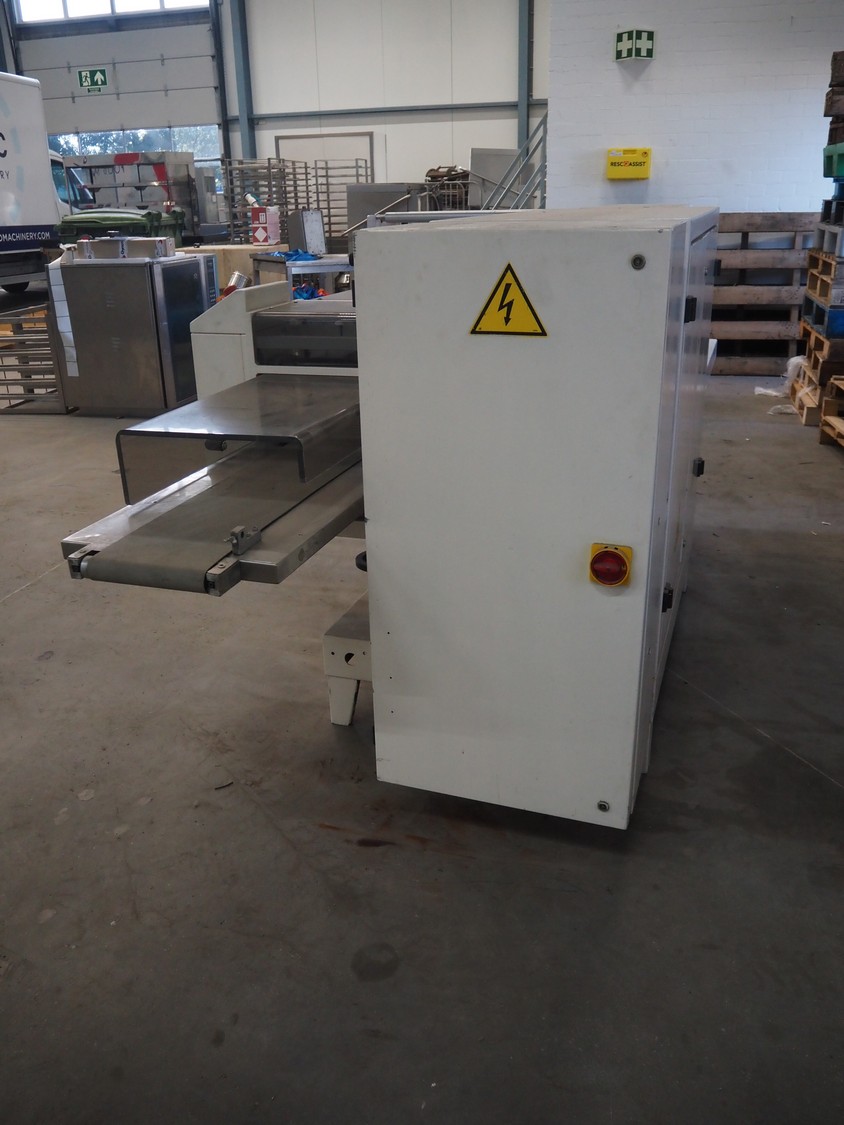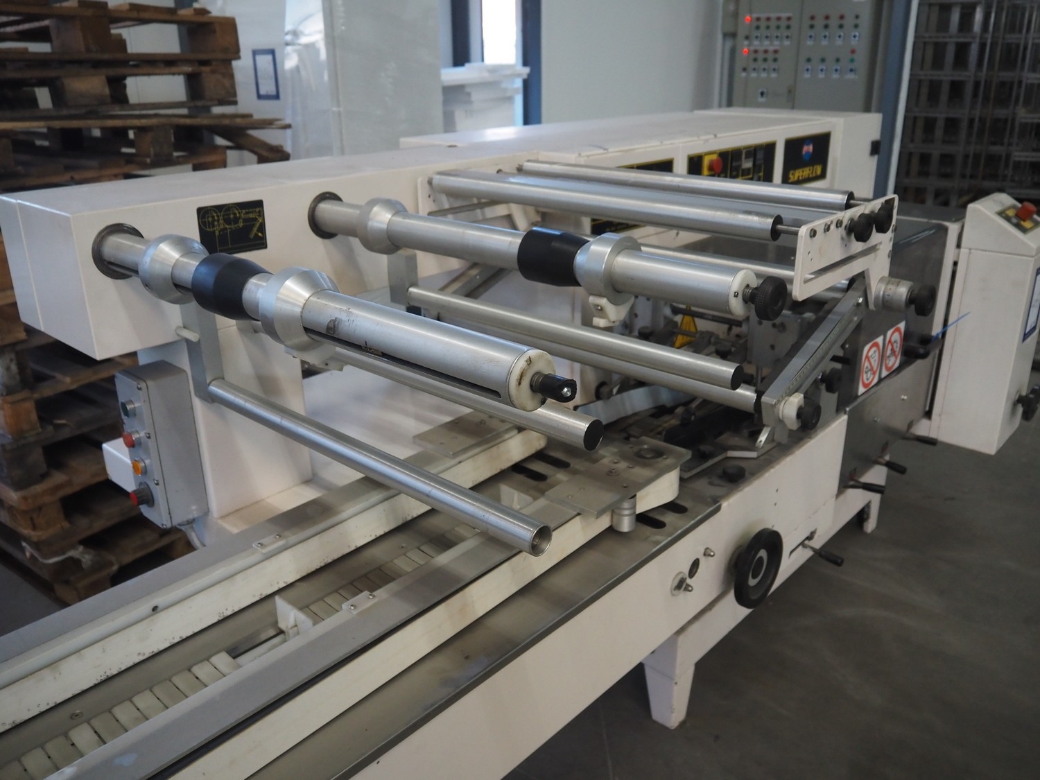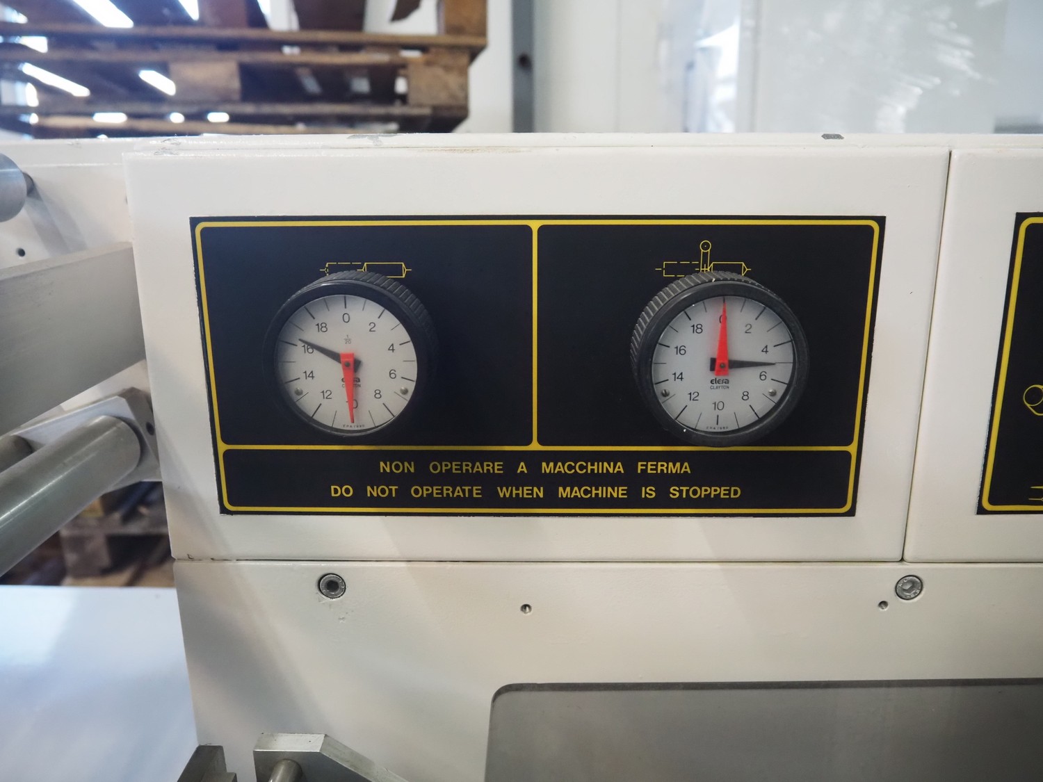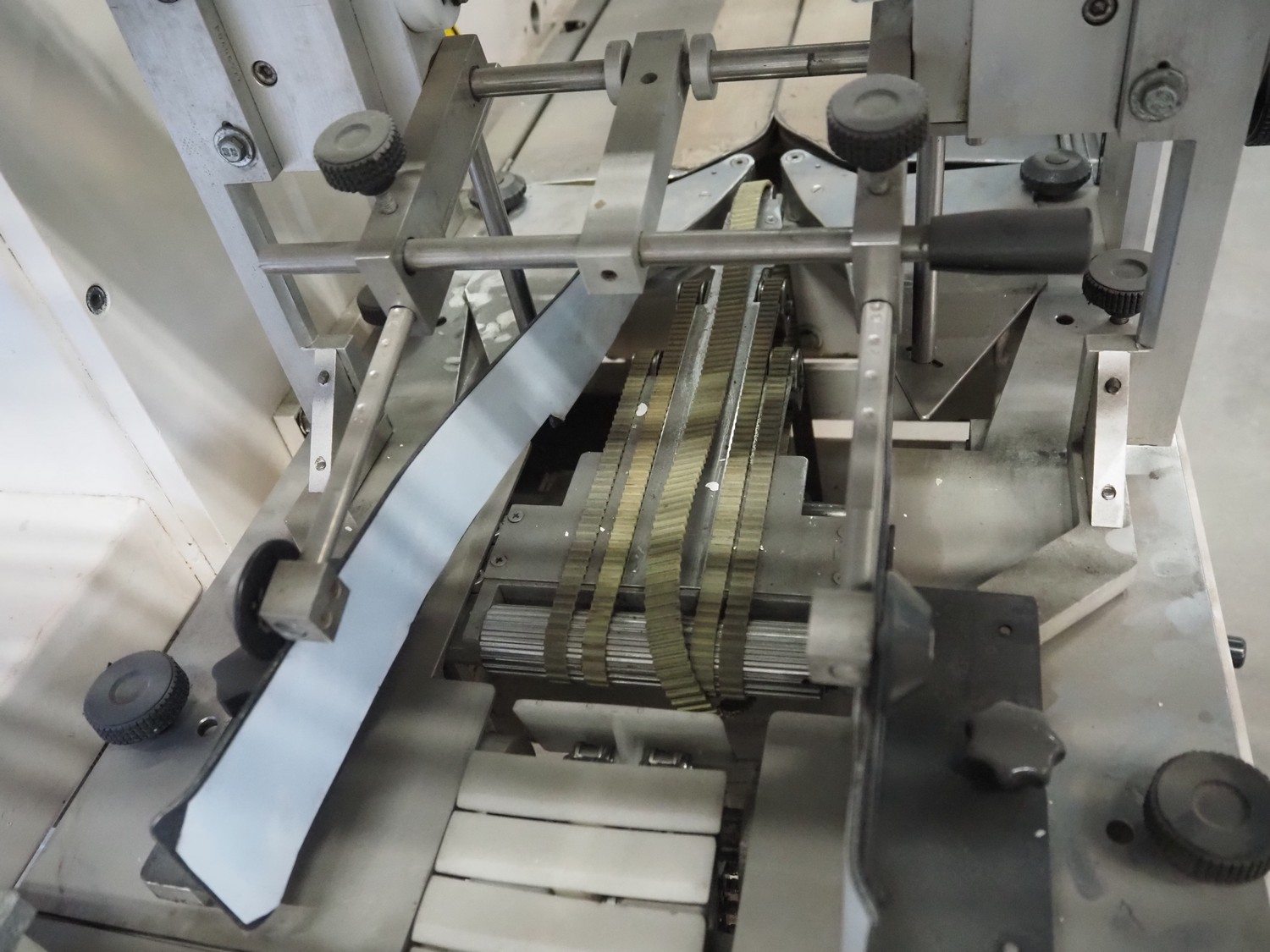 Ilapak Italia S.p.a. flowpacker, type: UNO, serial number: 061 96, year of construction: 4/1996, 380 V, 50 Hz, 5000 W, plastic infeed belt with dividers, belt width: 100 mm, divider height: 55 mm, distance between dividers: 430 mm, seal width: 250 mm, plastic outfeed belt, belt width: 240 mmm, total dimensions: 5900 mm x 1300 mm x 1310 mm.