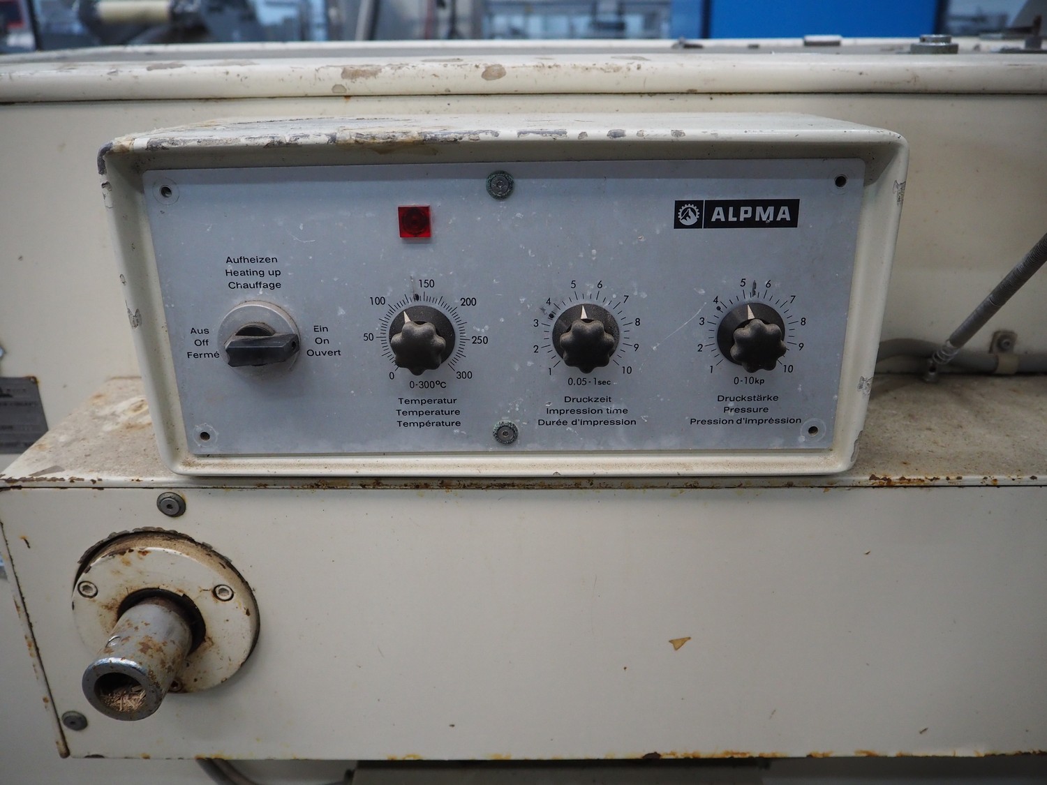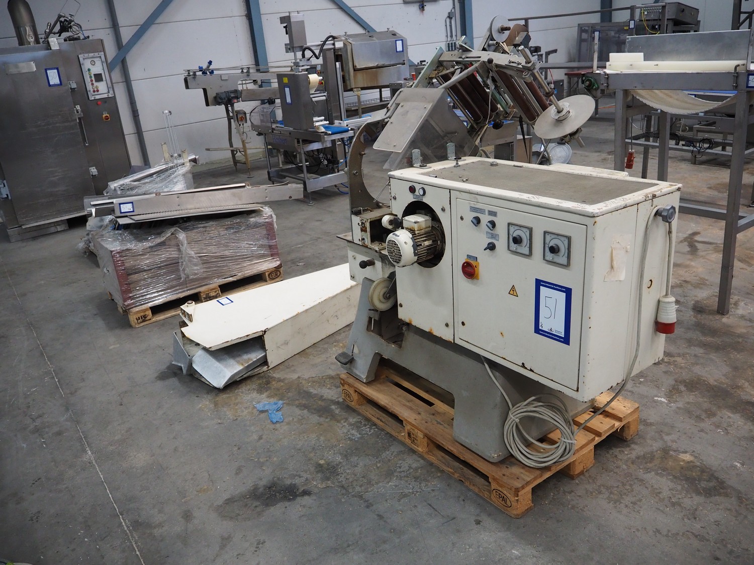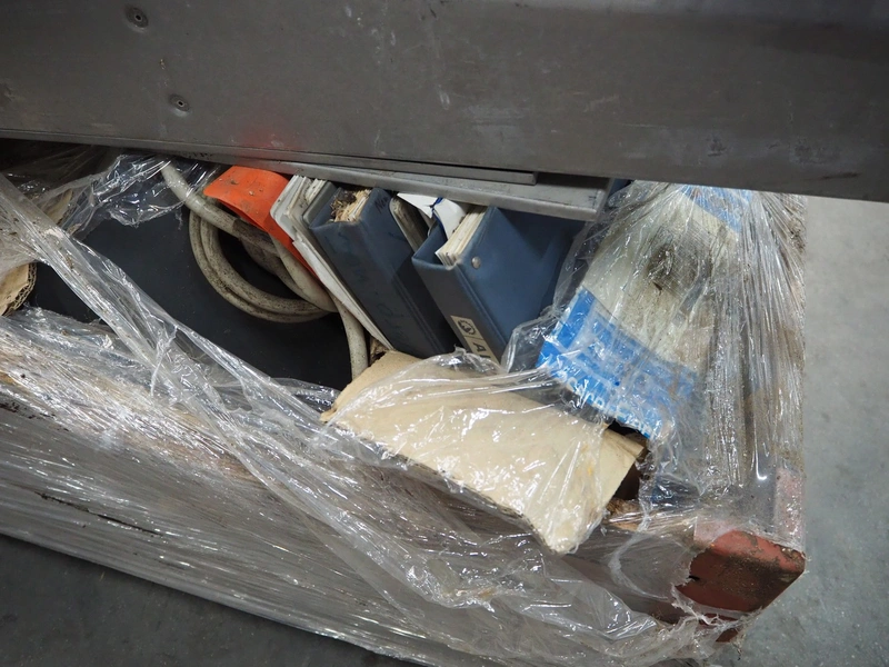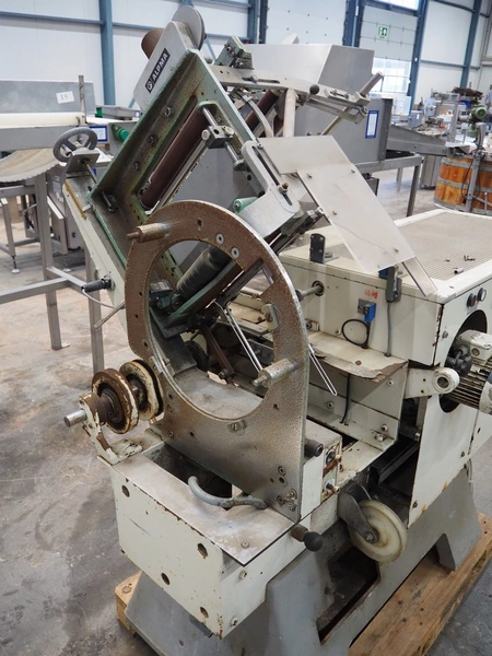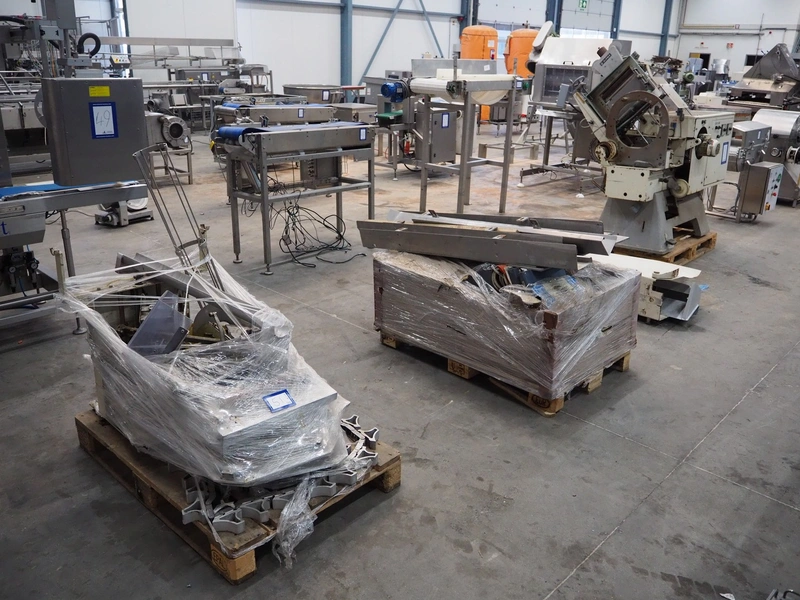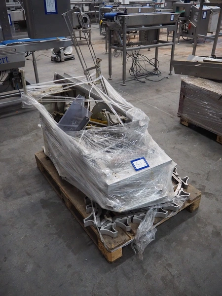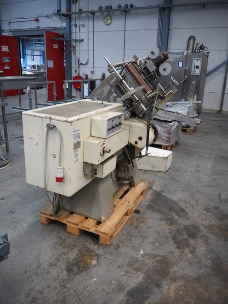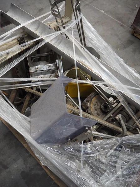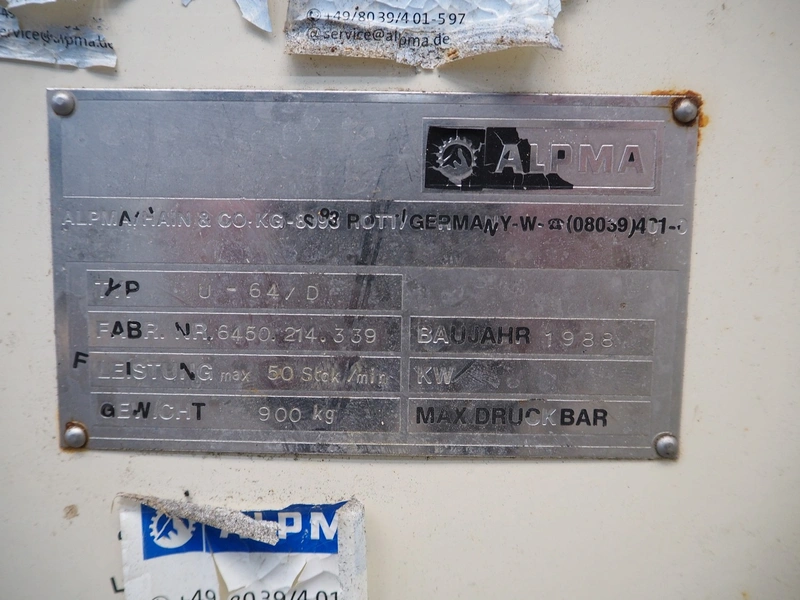 Alpma cheese packaging machine, type: U-64/D, fabrication number: 6450.214.339, year of construction: 1988, capacity: 50 per minute, weight: 900 kg, dimensions: 1800 mm x 900 mm x 1600 mm. Including 2 pallets with parts.
