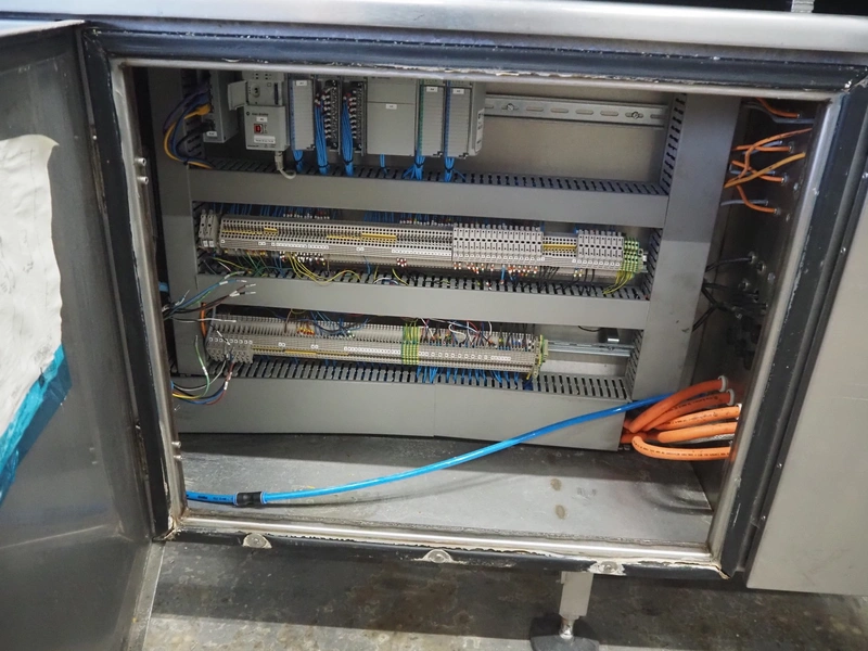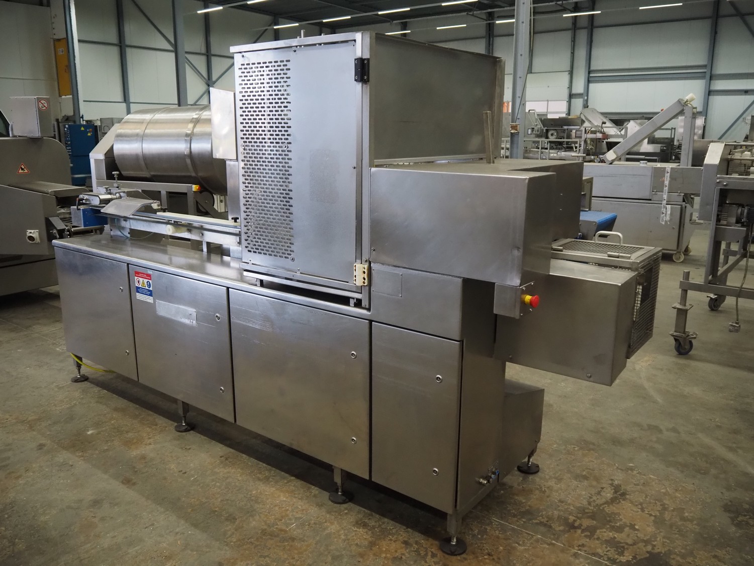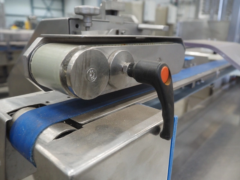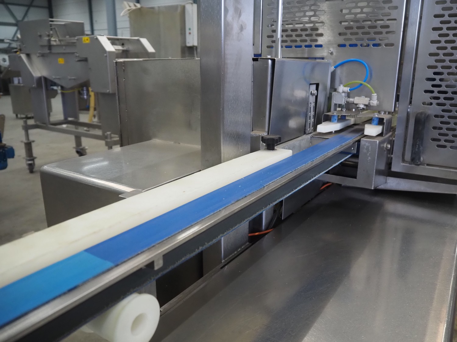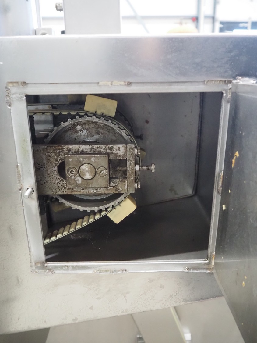 Gainsborough Craftsmen packaging machine for sausages with tray denester, machine number: 1495, year of construction: oct 2005, 415 V, weight: 1500 kg, plastic belt, belt width: 50 mm, tray dimensions: 140 mm x 190 mm, total dimensions: 3350 mm x 1050 mm x 1950 mm. Incomplete.