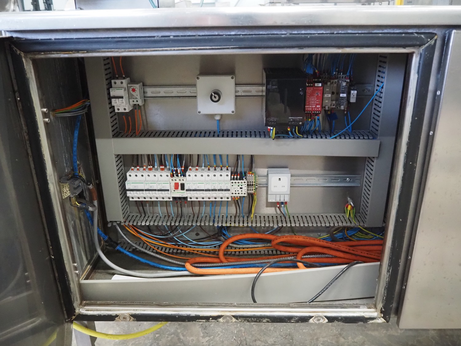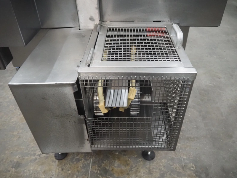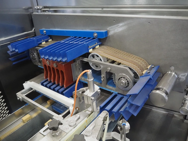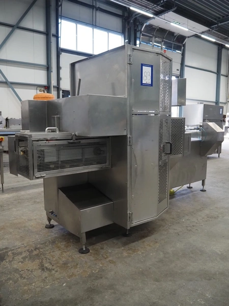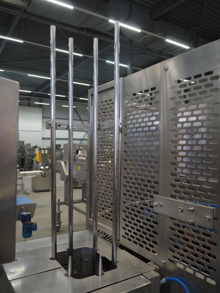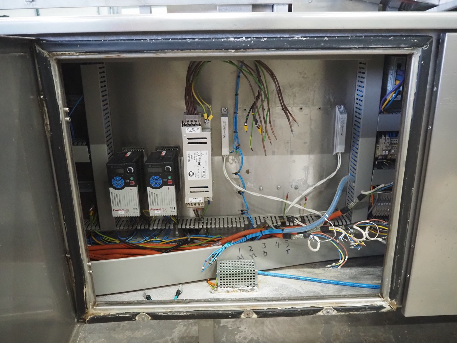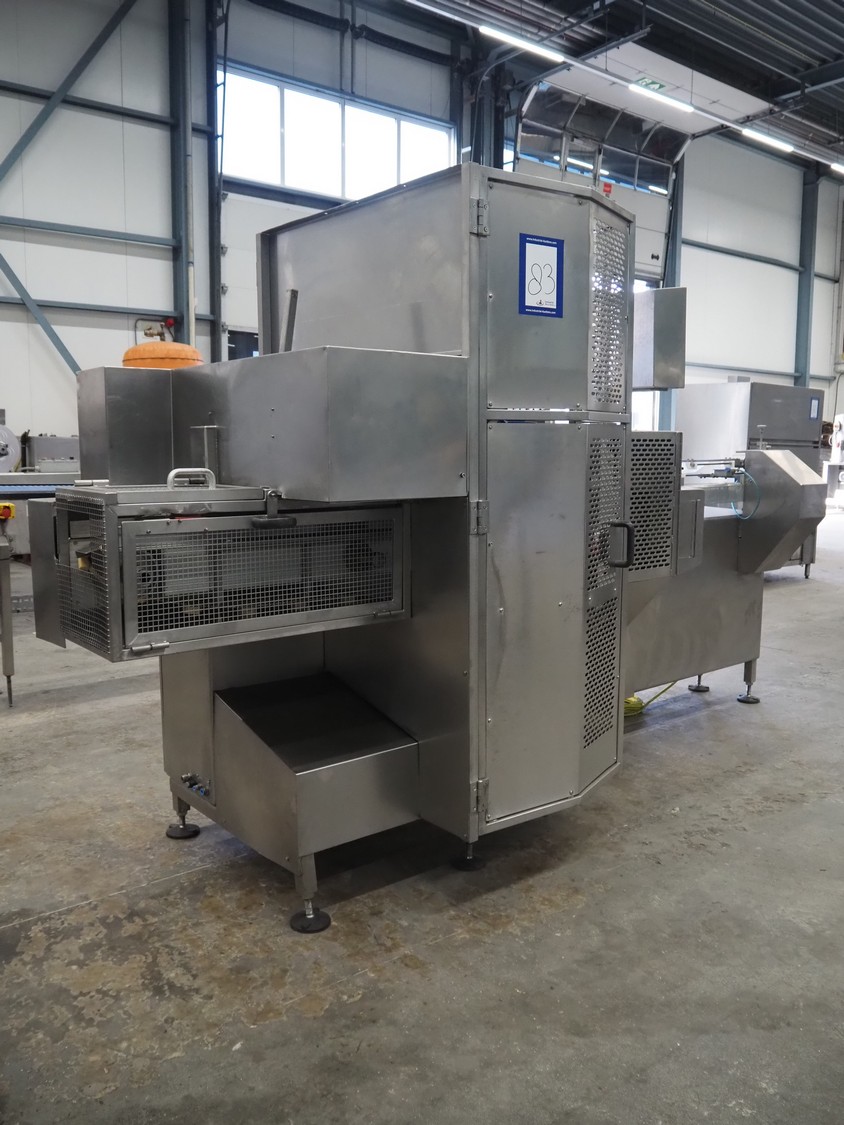 Gainsborough Craftsmen packaging machine for sausages with tray denester, machine number: 1495, year of construction: oct 2005, 415 V, weight: 1500 kg, plastic belt, belt width: 50 mm, tray dimensions: 140 mm x 190 mm, total dimensions: 3350 mm x 1050 mm x 1950 mm. Incomplete.
