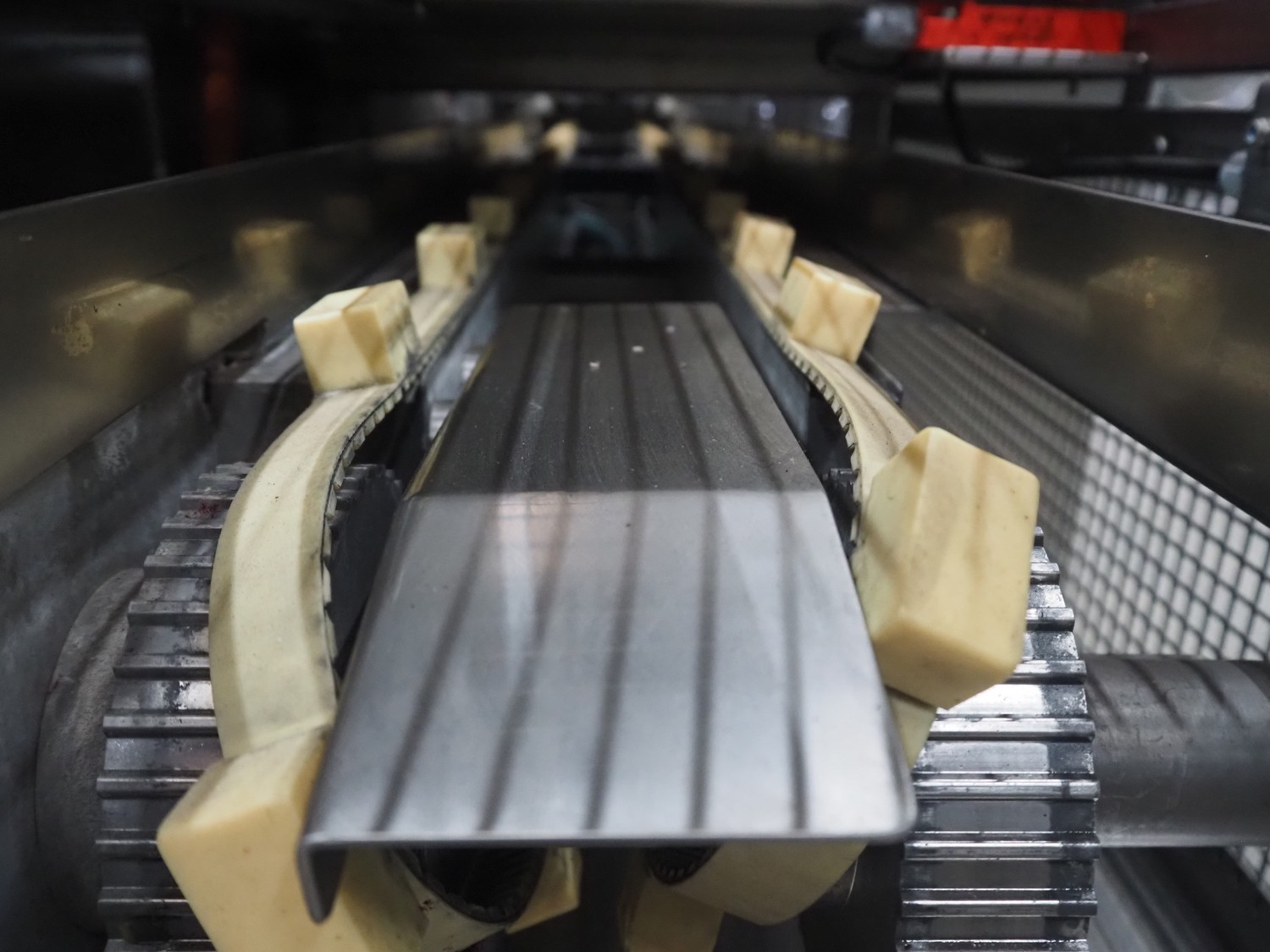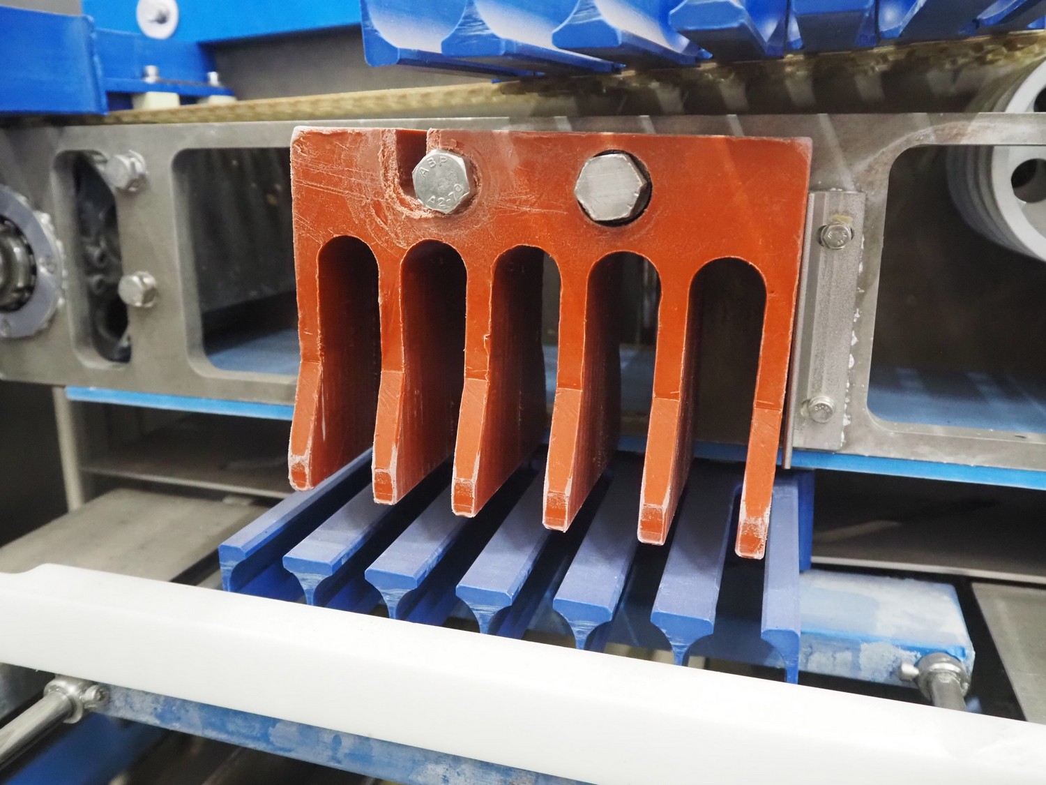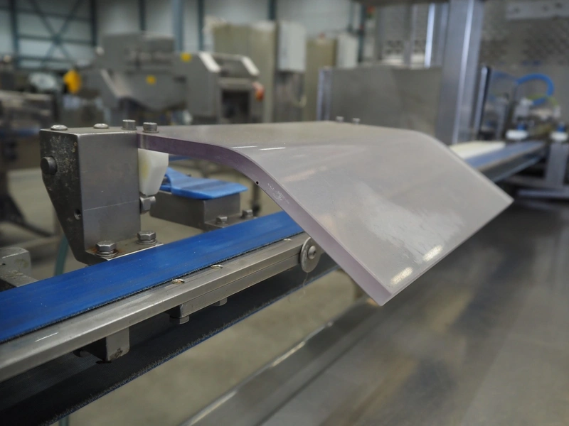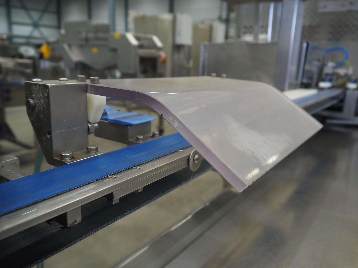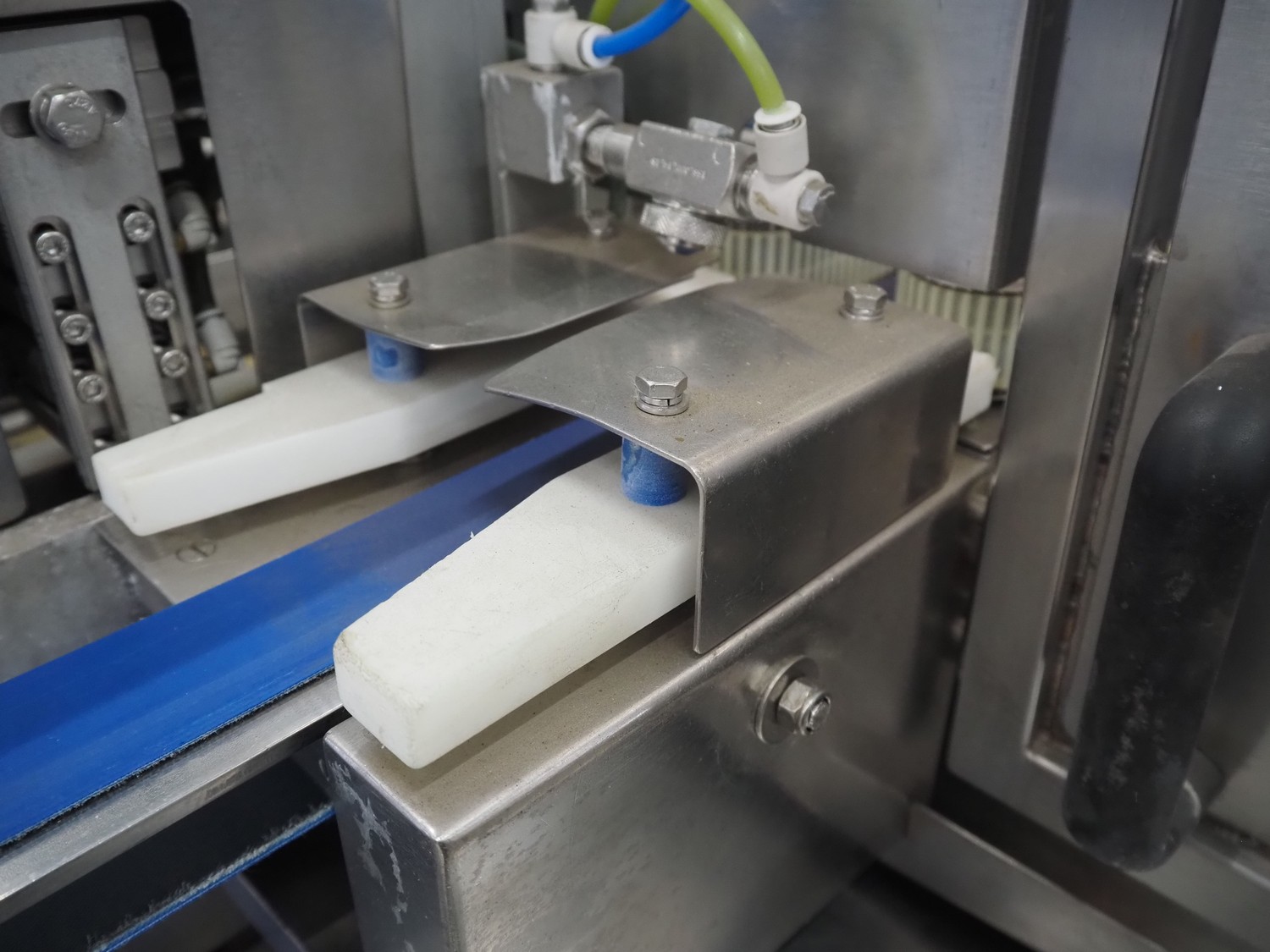 Gainsborough Craftsmen packaging machine for sausages with tray denester, machine number: 1495, year of construction: oct 2005, 415 V, weight: 1500 kg, plastic belt, belt width: 50 mm, tray dimensions: 140 mm x 190 mm, total dimensions: 3350 mm x 1050 mm x 1950 mm. Incomplete.
