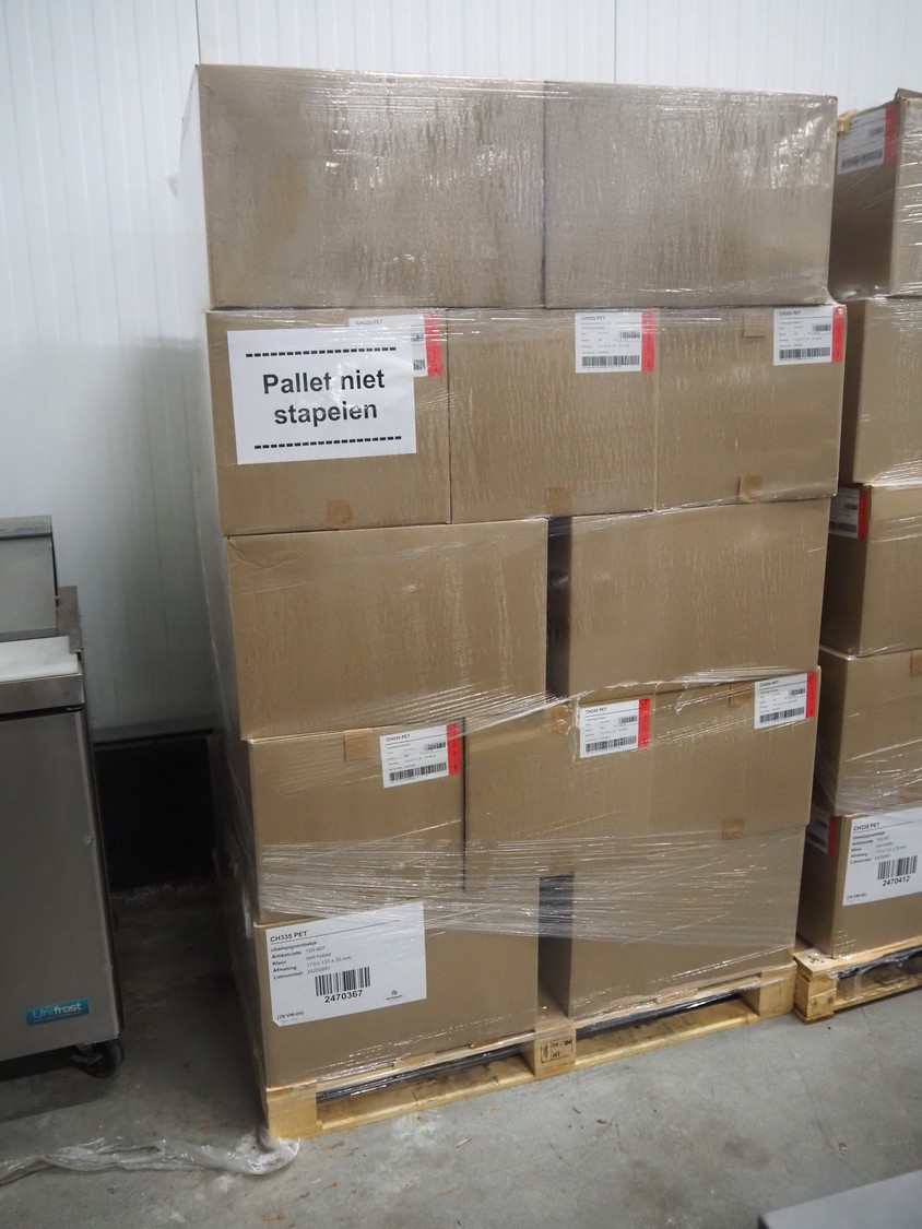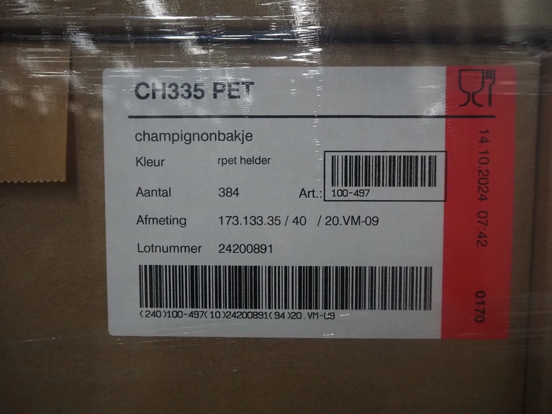 3 pallets with approximately 9600 plastic CH335 PET trays, tray dimensions: 173 mm x 133 mm x 35 mm.