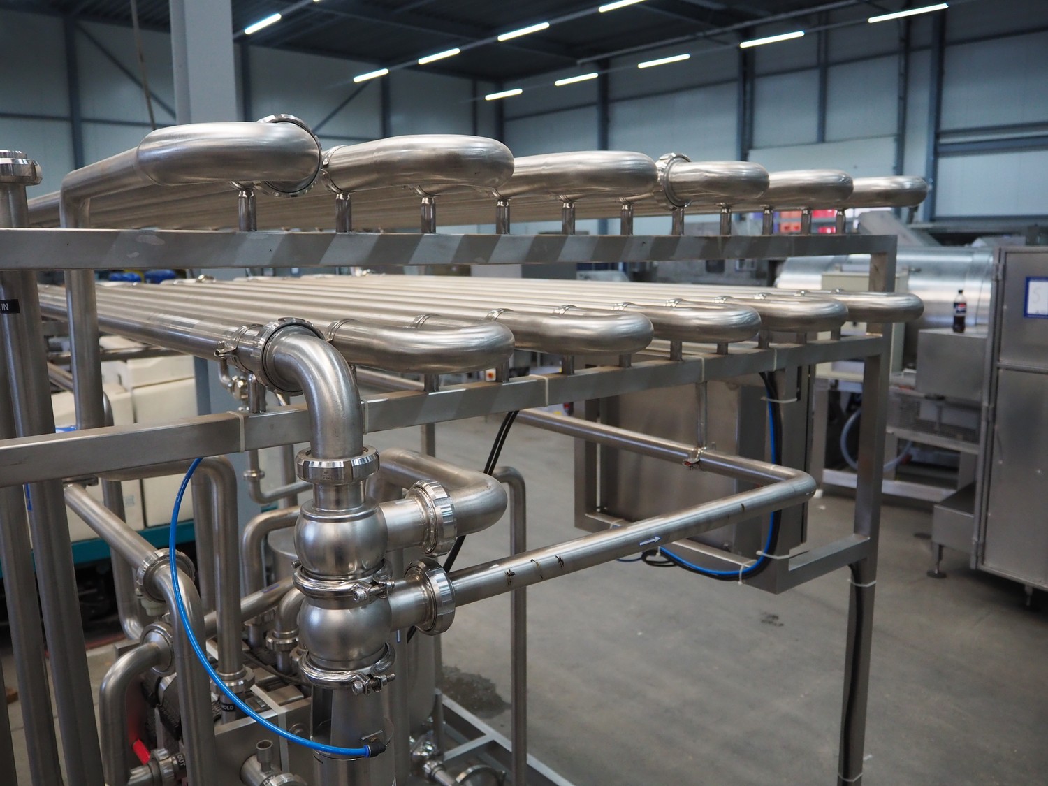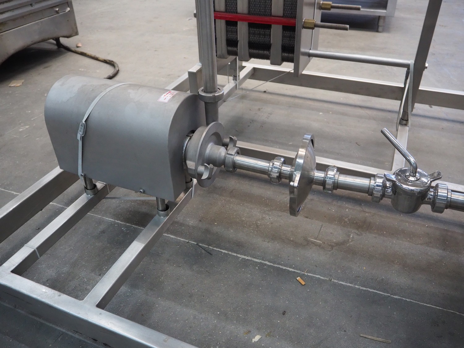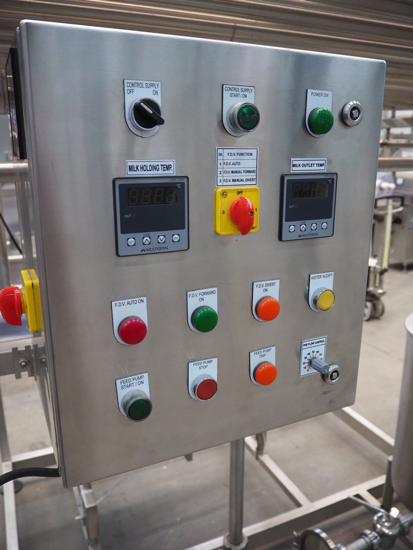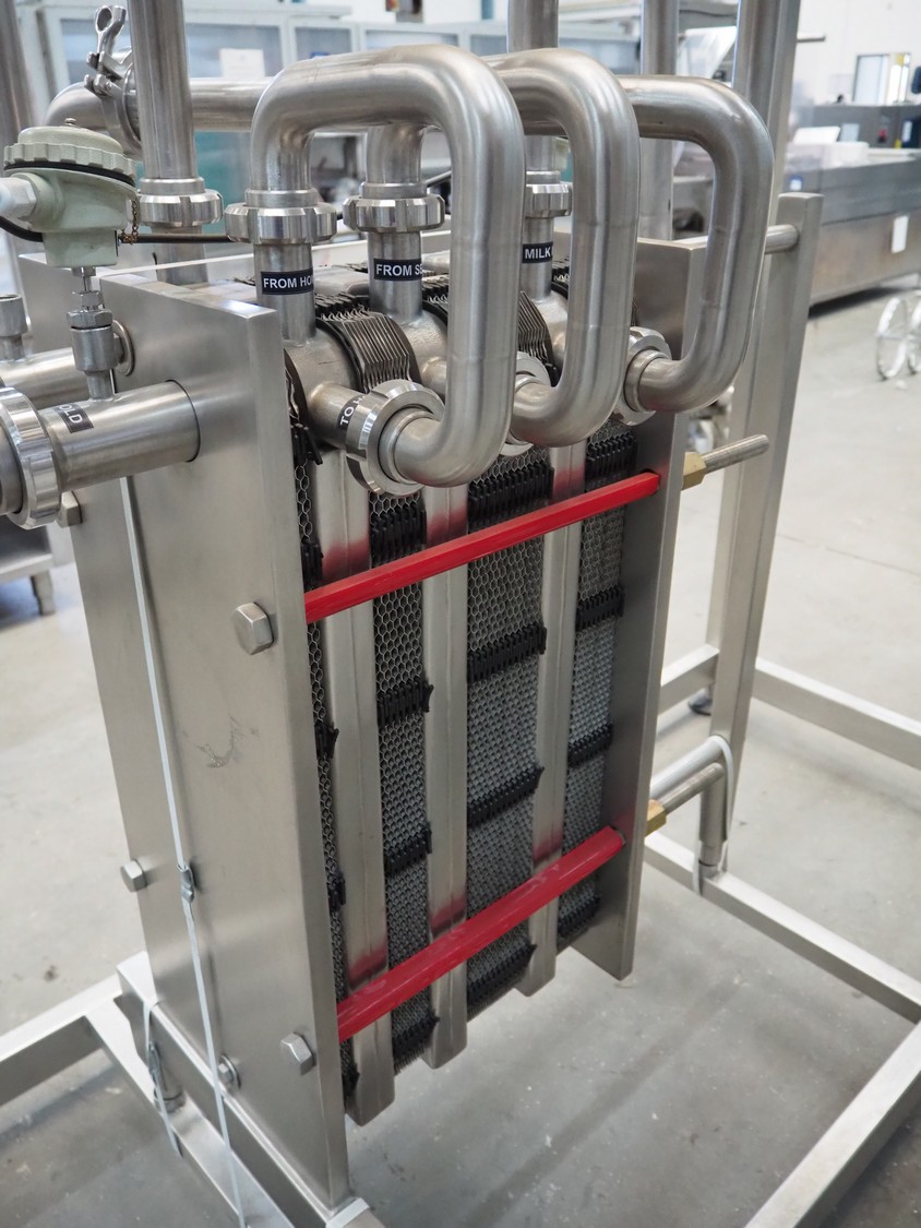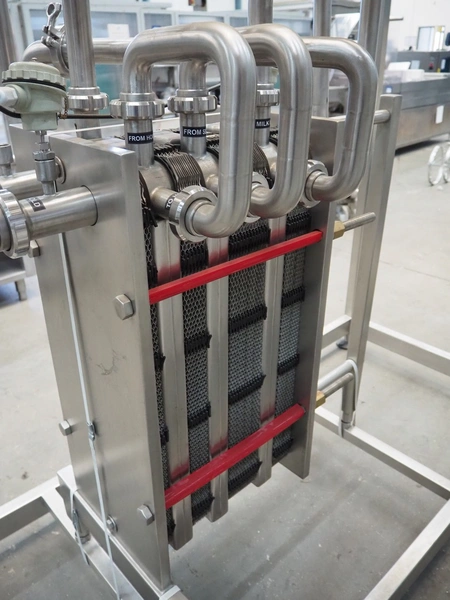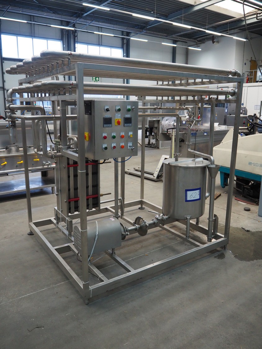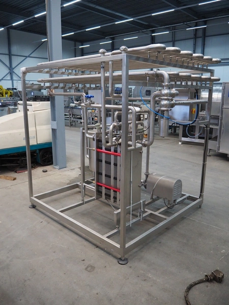 S/s HTST pasteurization installation, capacity: 1000 liters per hour, dimensions: 2100 mm x 1700 mm x 2000 mm. Never used.
