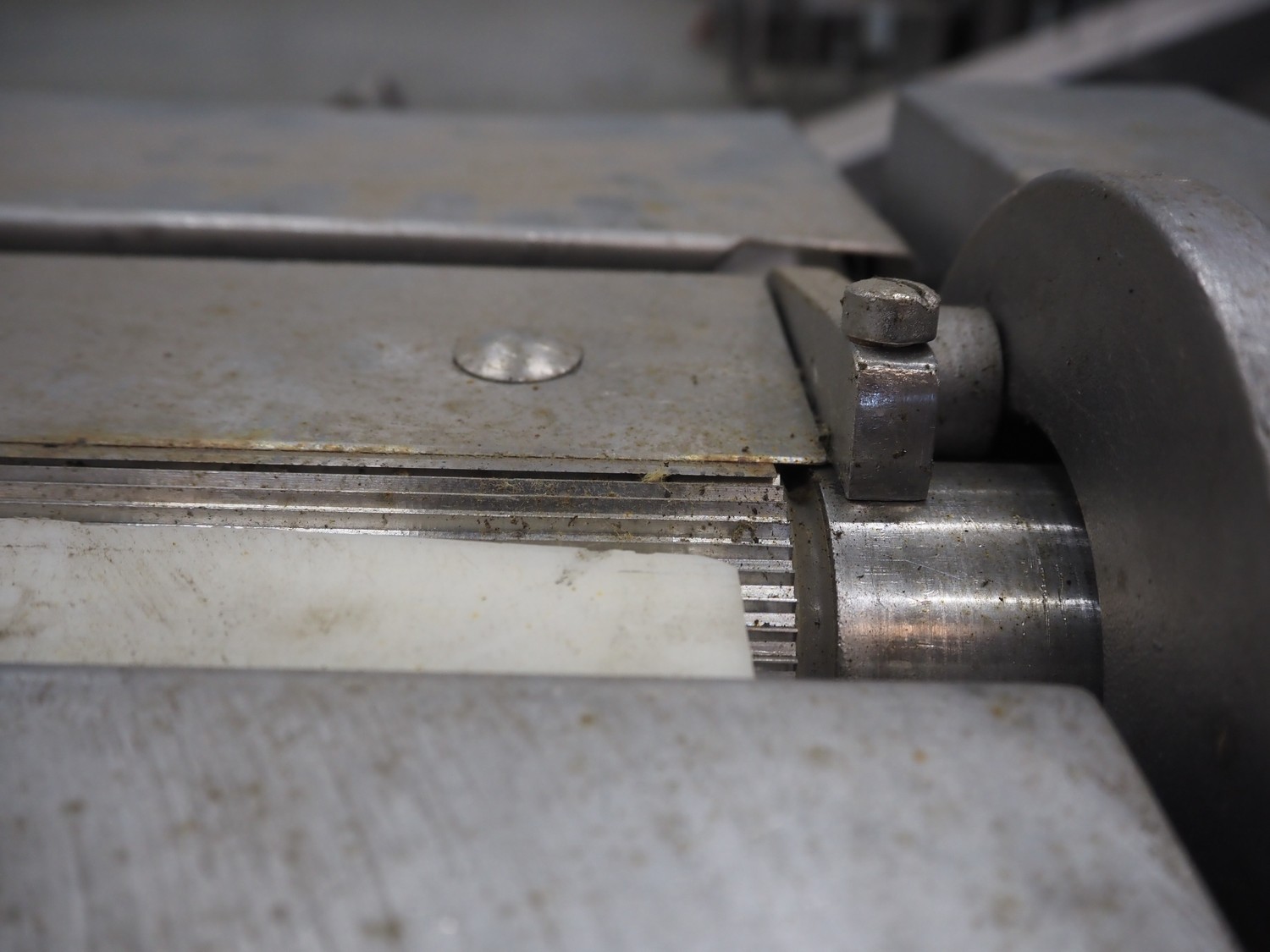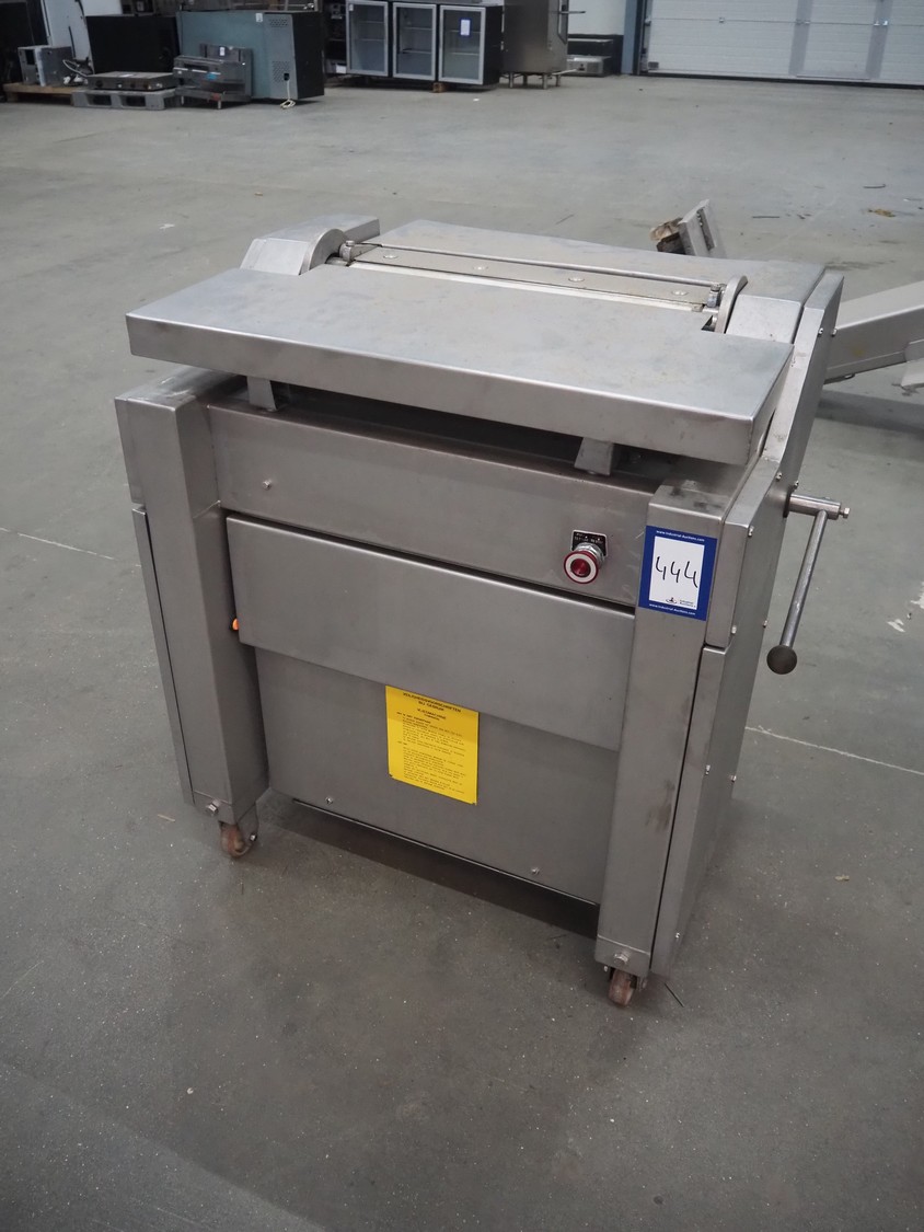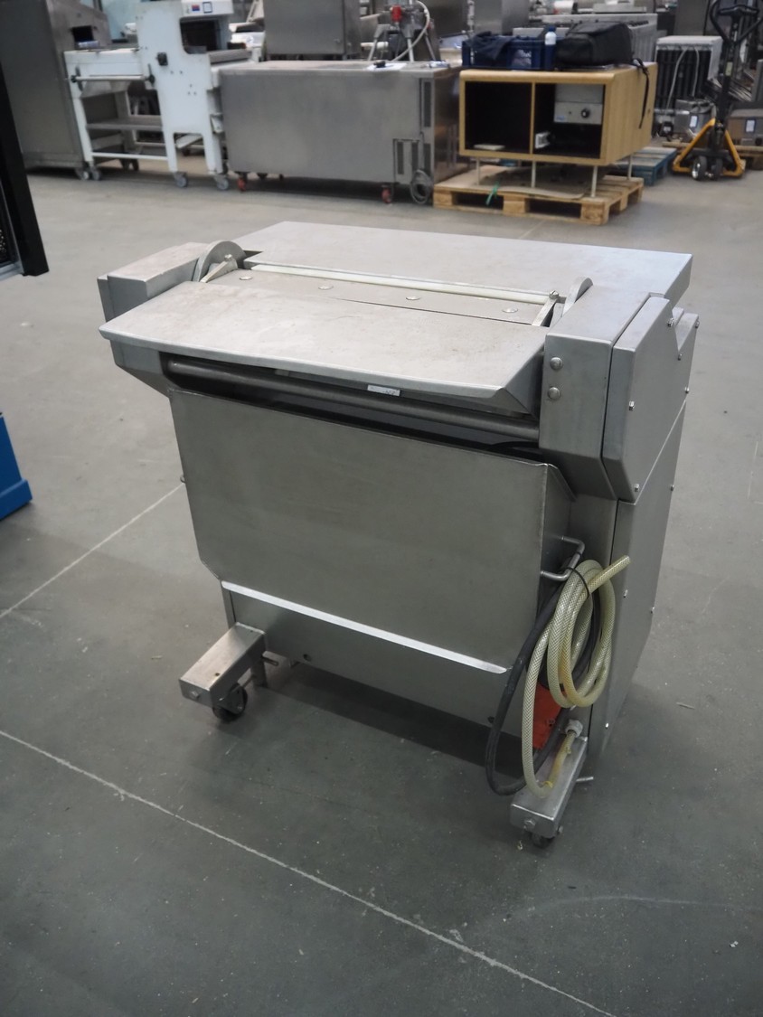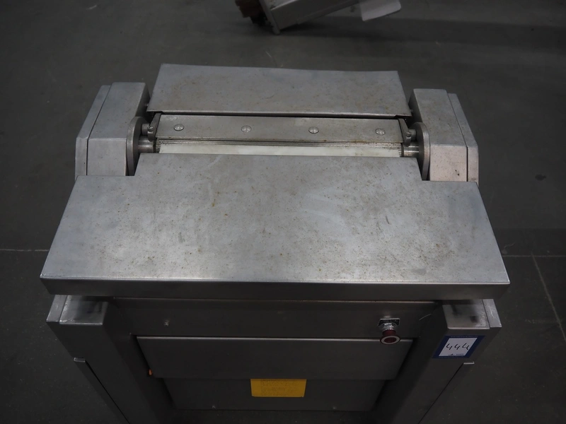 Mobile skinning machine, working width: 500 mm, total dimensions: 900 mm x 660 mm x 980 mm.