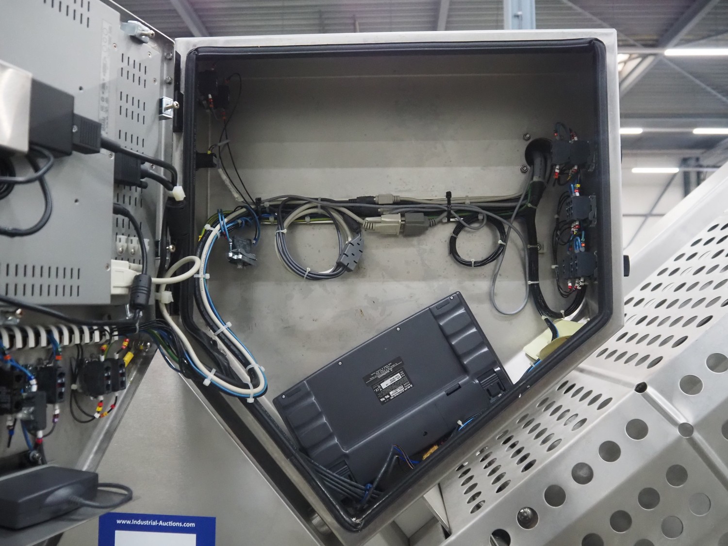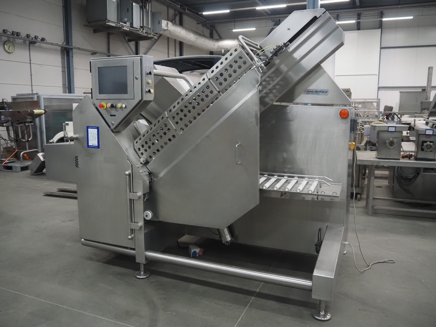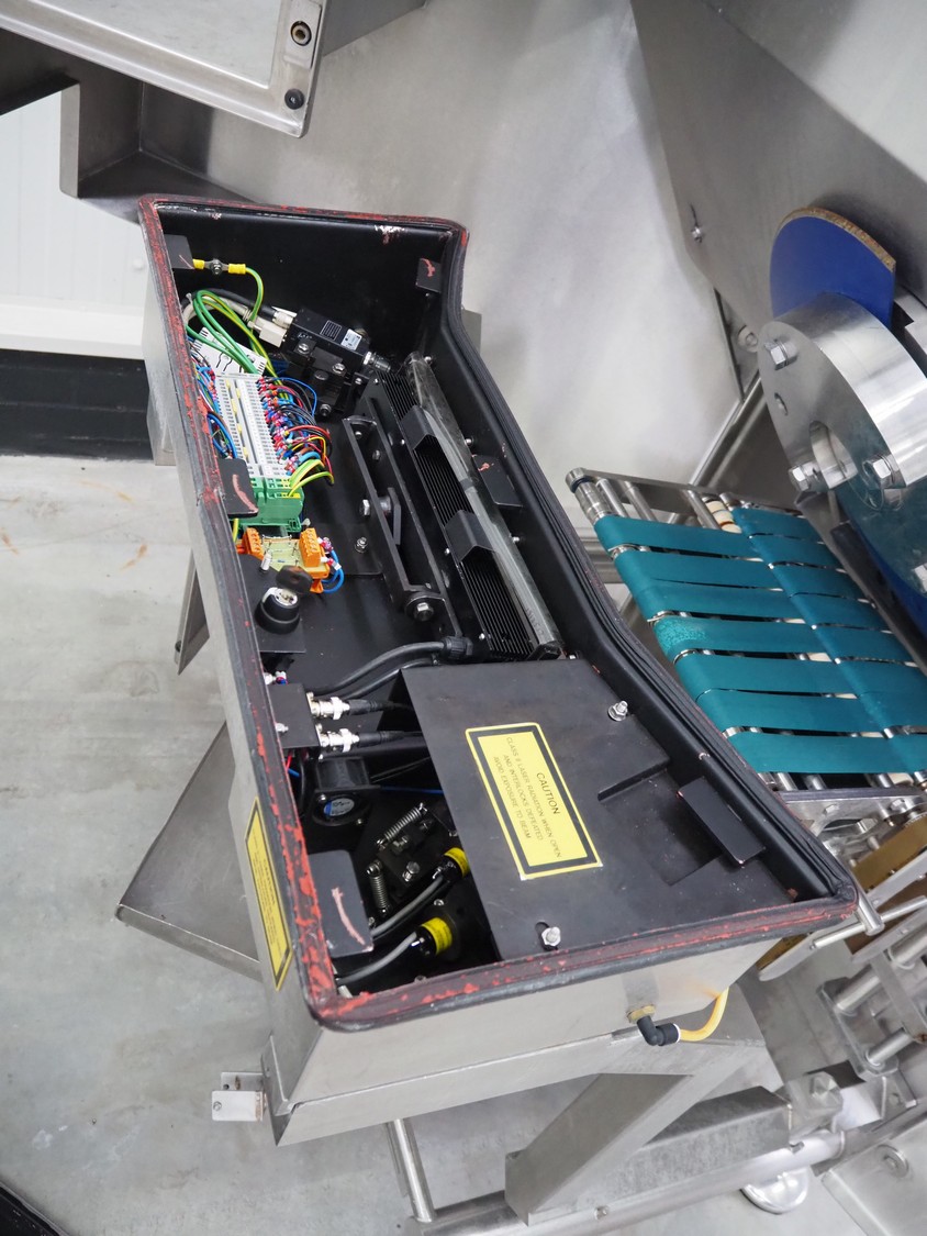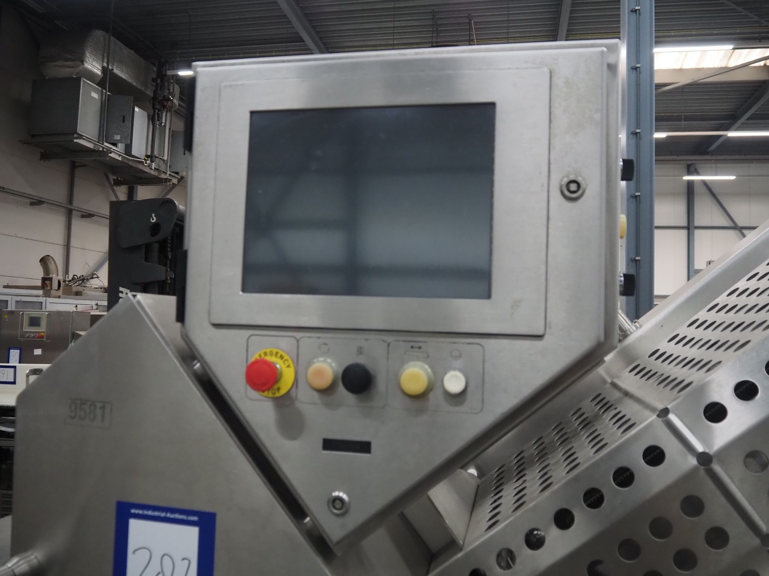 AEW Delford slicer, model: PolySlicer 3000V, serial number: 1890055, 400 V, 3 Ph, 50 Hz, 40 A, weight: 1100 kg, dimensions: 2800 mm x 1400 mm x 2350 mm. Without outfeed belt.