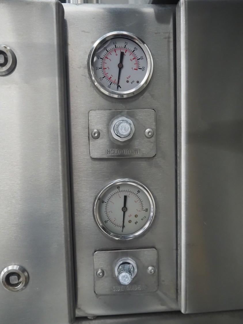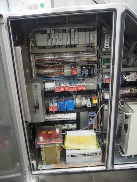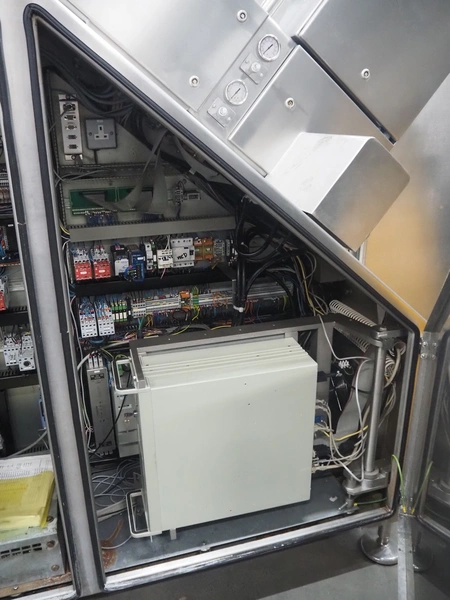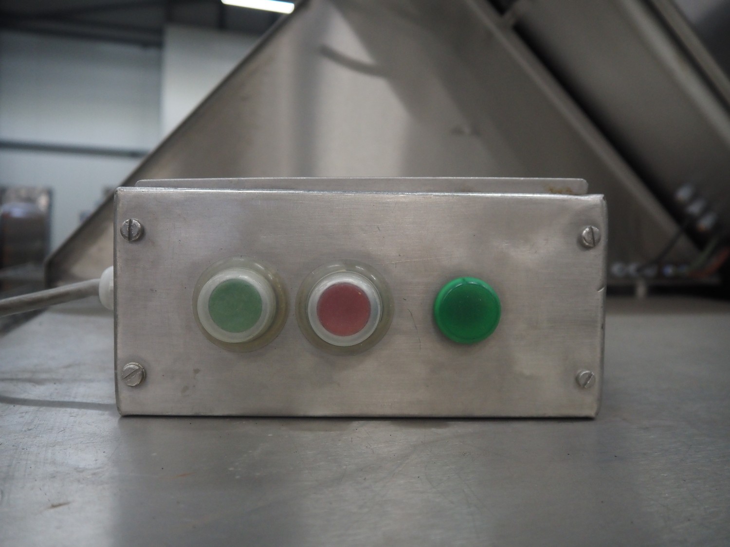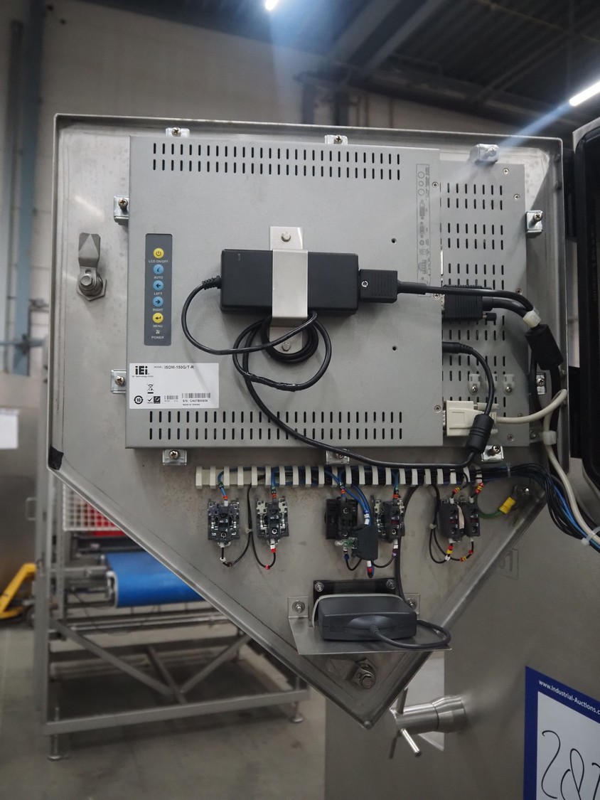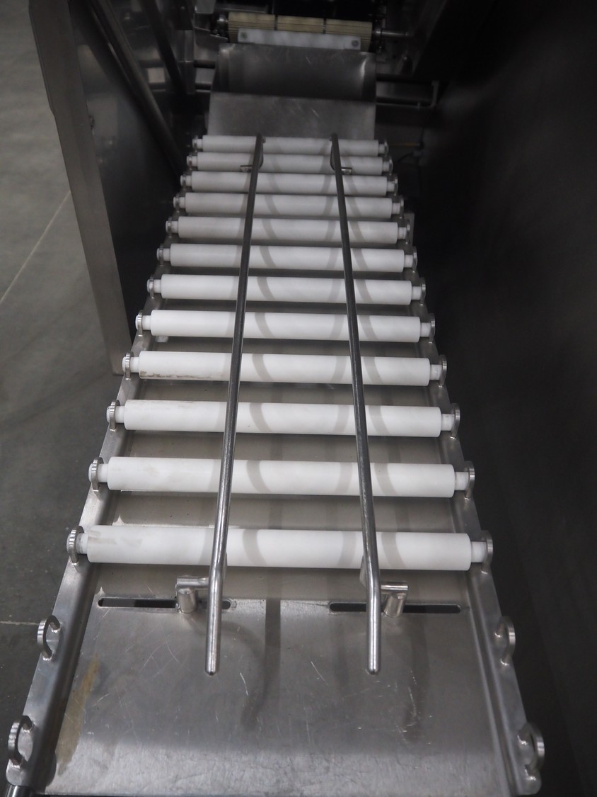 AEW Delford slicer, model: PolySlicer 3000V, serial number: 1890055, 400 V, 3 Ph, 50 Hz, 40 A, weight: 1100 kg, dimensions: 2800 mm x 1400 mm x 2350 mm. Without outfeed belt.