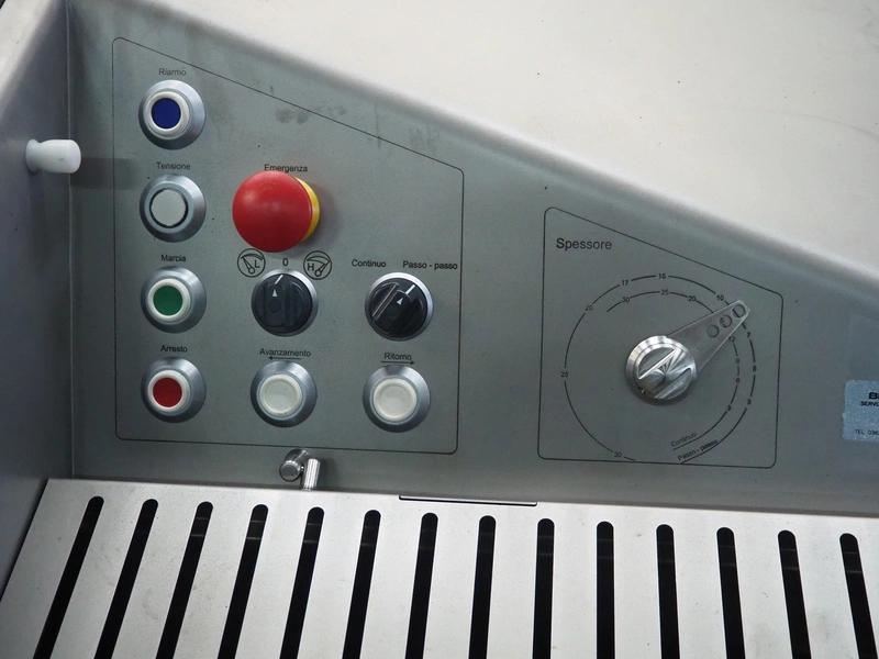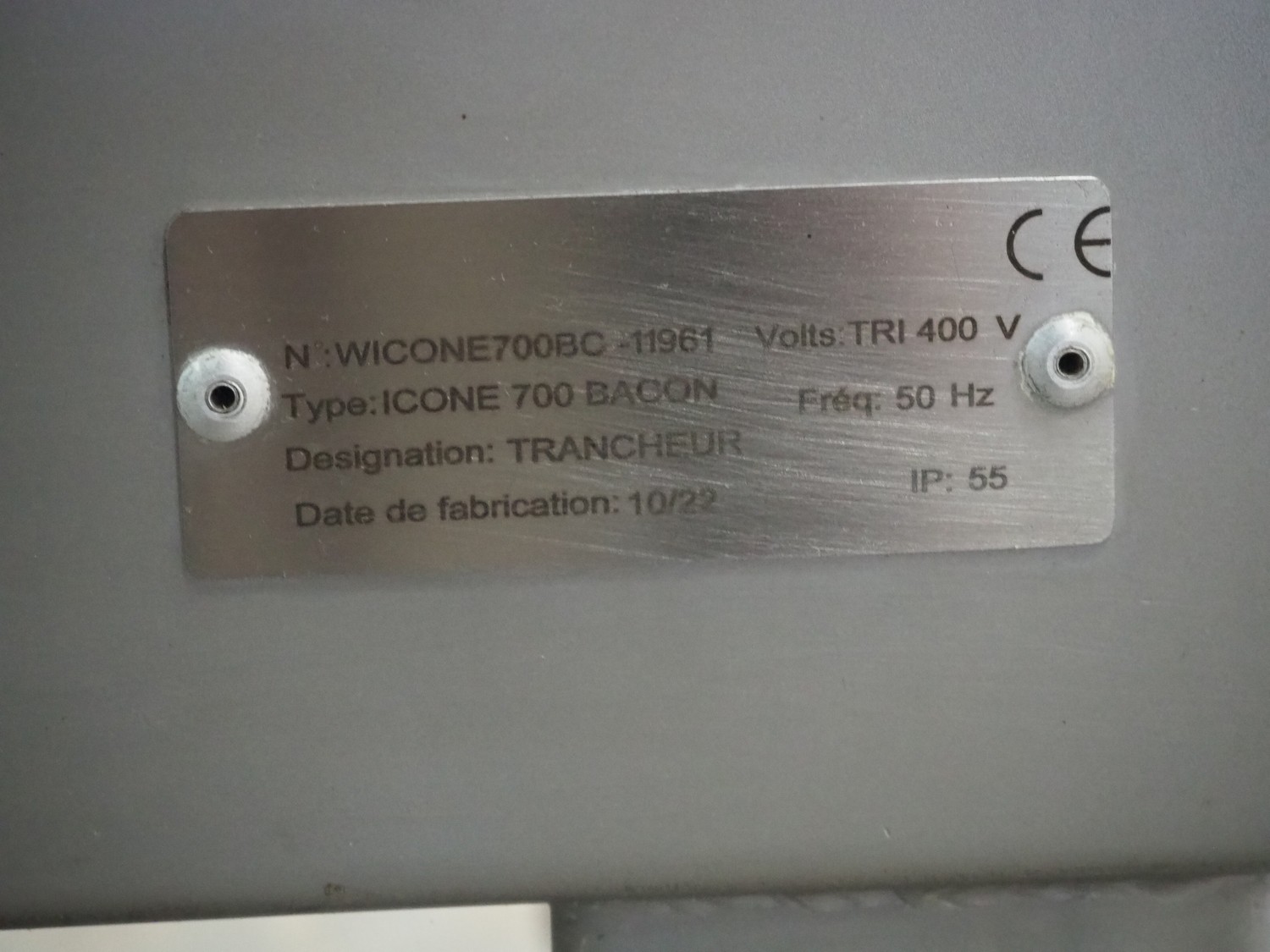 Dadaux mobile slicer, type: Icone 700 Bacon, number: WICNE700BC-11961, year of construction: 10/2022, 400 V, 50 Hz, chamber dimensions: 250 mm x 250 mm x 650 mm, total dimensions: 1800 mm x 1000 mm x 1400 mm.