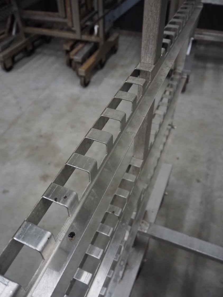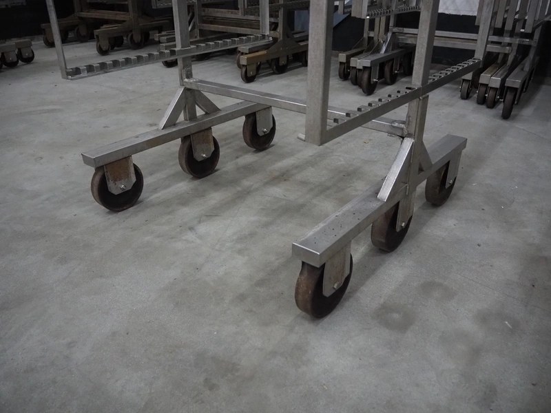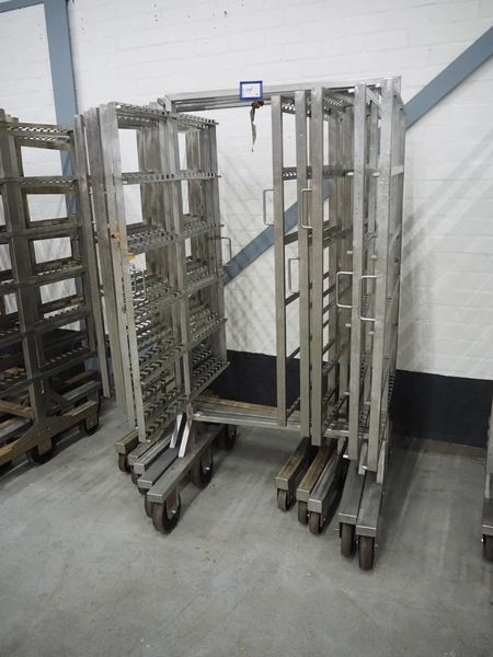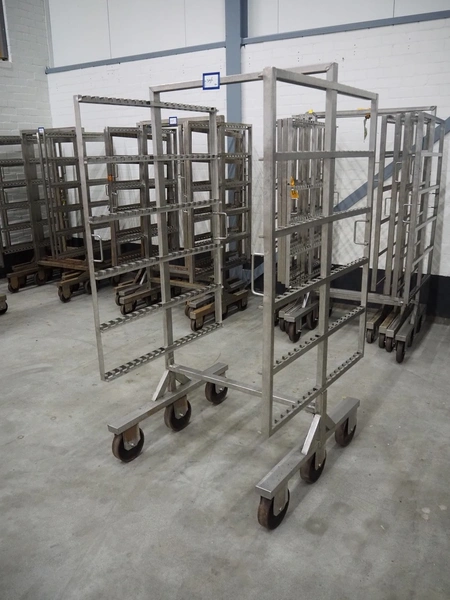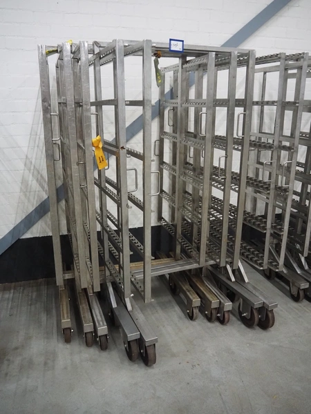 5 s/s smoke trolleys, 6 floors, dimensions each floor: 1010 mm x 1000 mm, total dimensions: (5x) 1020 mm x 1000 mm x 1980 mm.