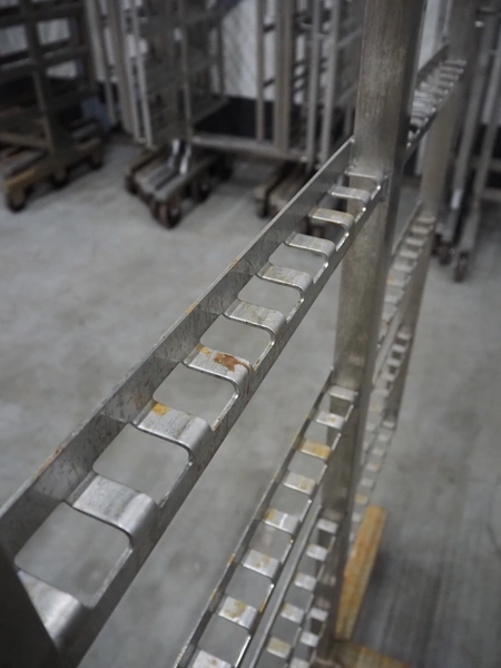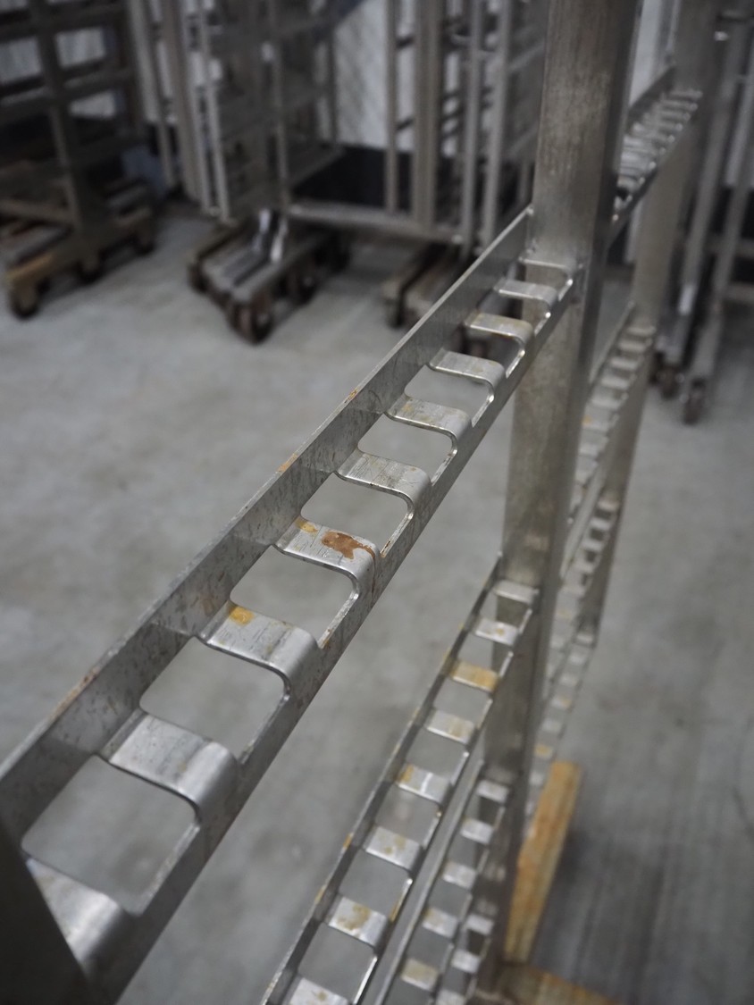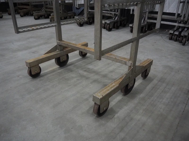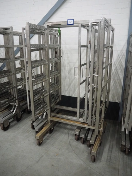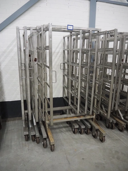 5 s/s smoke trolleys, 6 floors, dimensions each floor: 1010 mm x 1000 mm, total dimensions: (5x) 1020 mm x 1000 mm x 1980 mm.