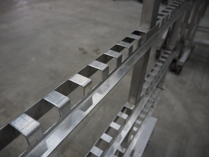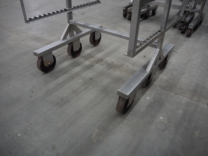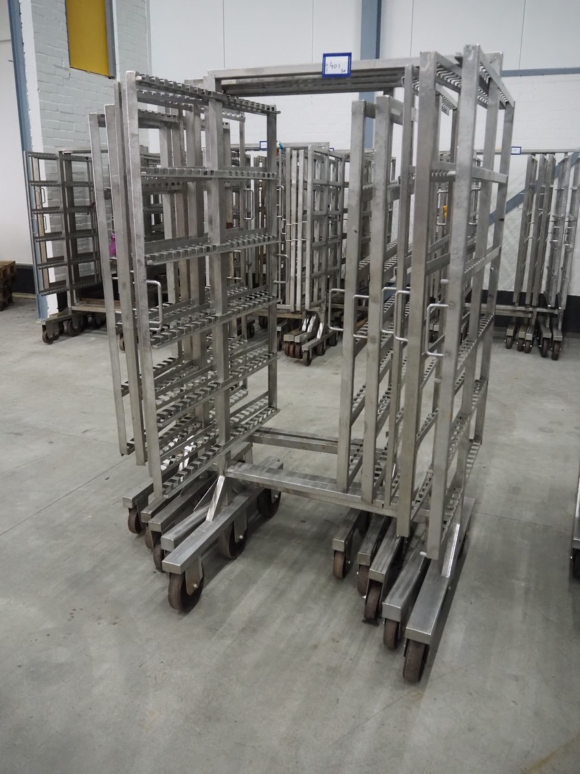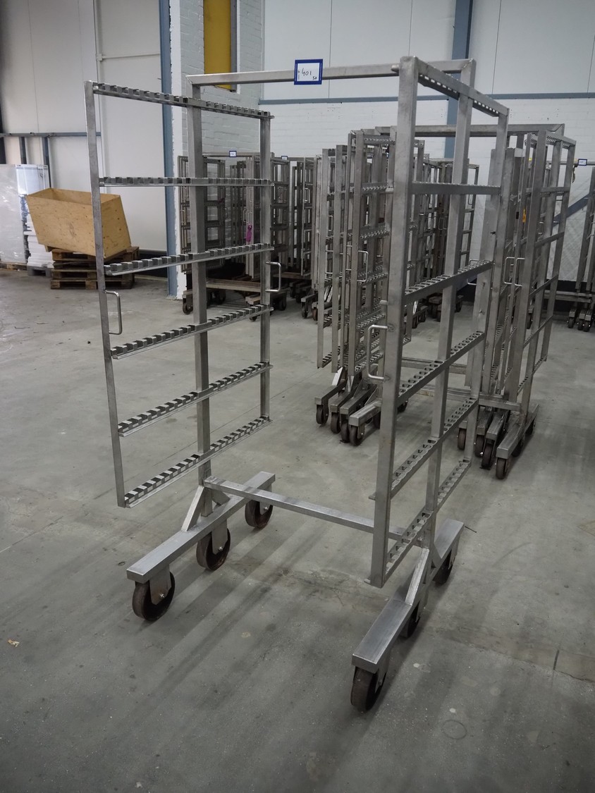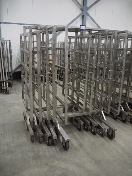 5 s/s smoke trolleys, 6 floors, dimensions each floor: 1010 mm x 1000 mm, total dimensions: (5x) 1020 mm x 1000 mm x 1980 mm.