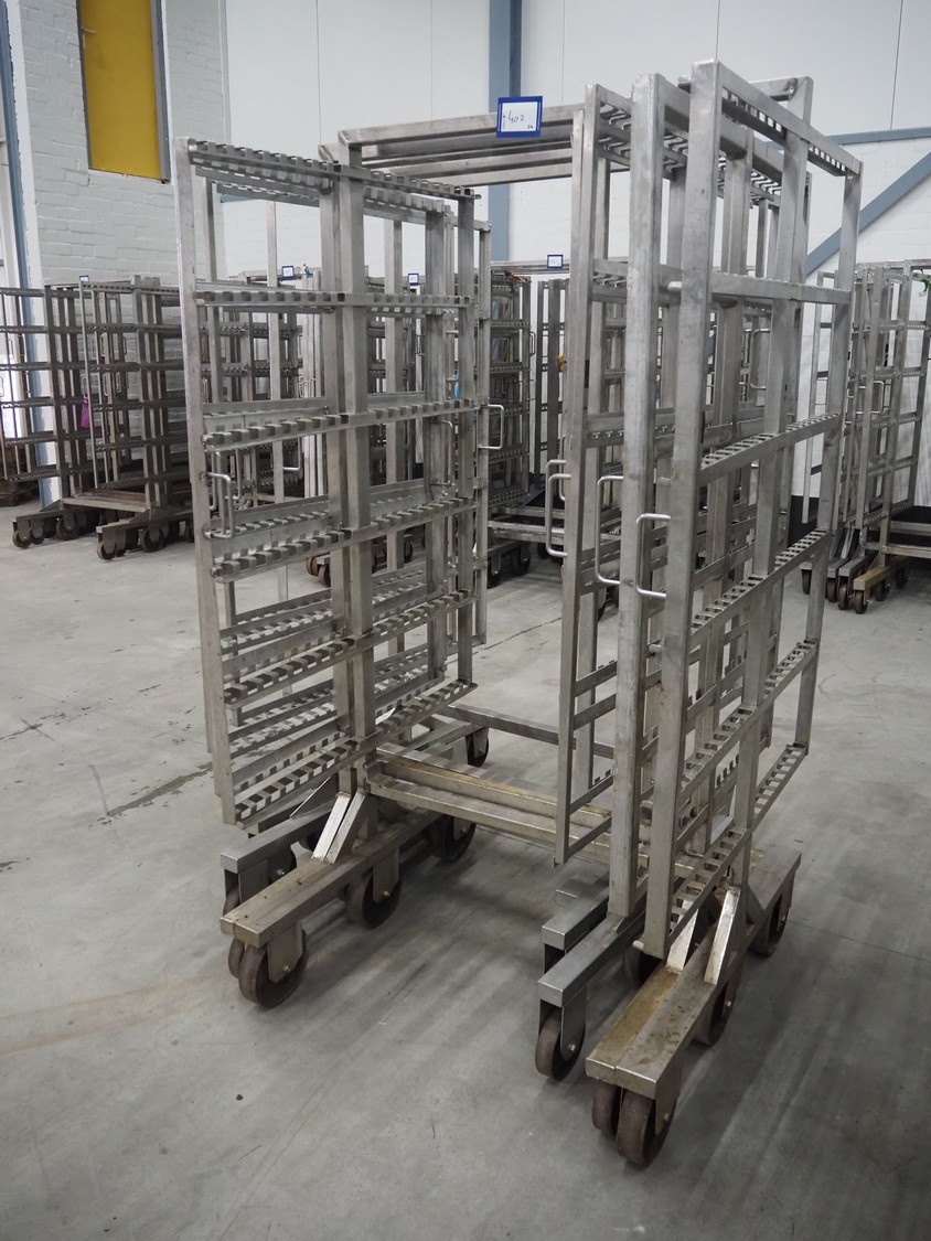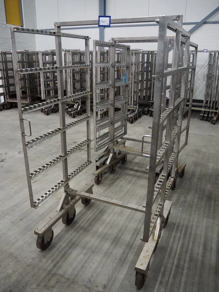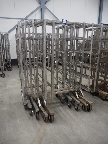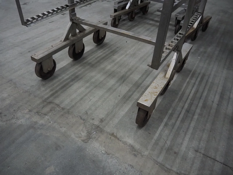 5 s/s smoke trolleys, 6 floors, dimensions each floor: 1010 mm x 1000 mm, total dimensions: (5x) 1020 mm x 1000 mm x 1980 mm.