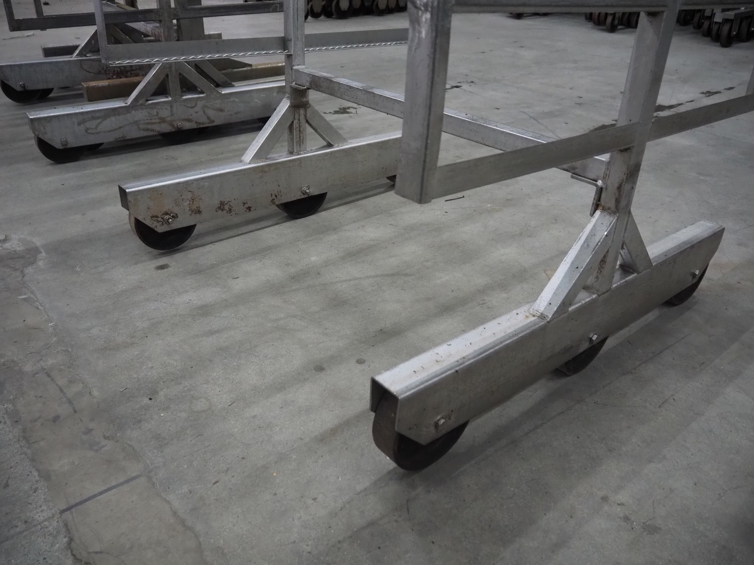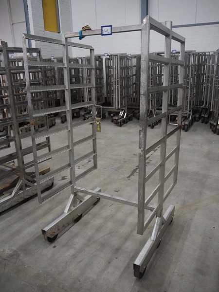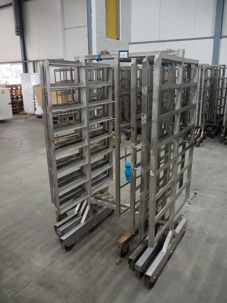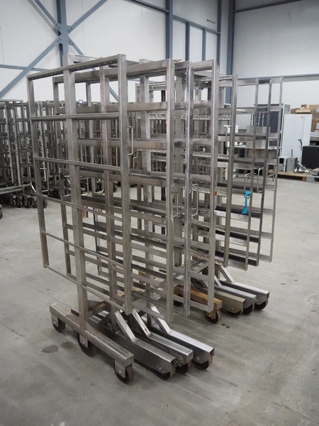 4 s/s smoke trolleys, 8 floors, dimensions each floor: 1010 mm x 1000 mm, total dimensions: (4x) 1020 mm x 1000 mm x 1960 mm.