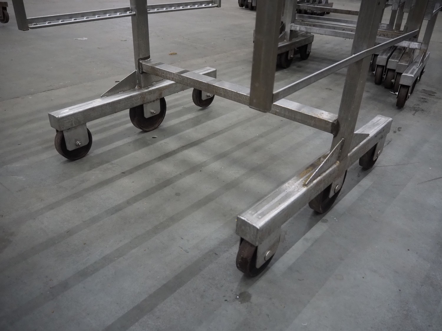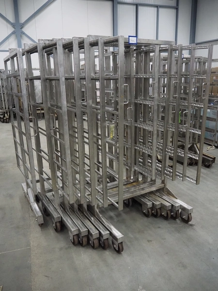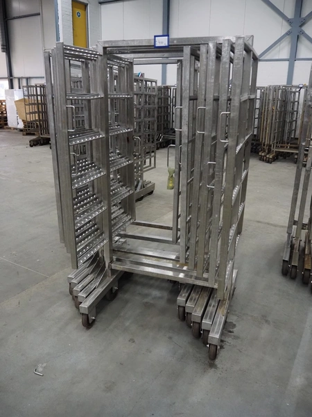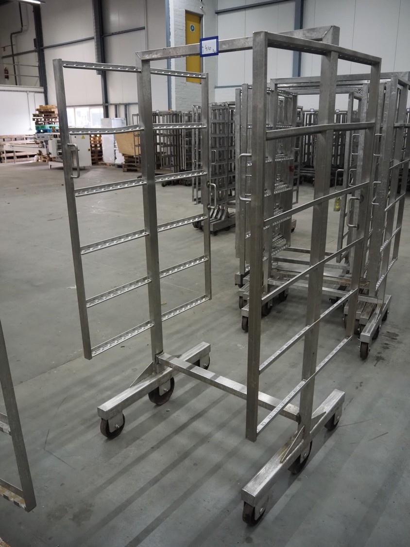 7 s/s smoke trolleys, 6 floors, dimensions each floor: 1010 mm x 1000 mm, total dimensions: (7x) 1020 mm x 1000 mm x 1980 mm.