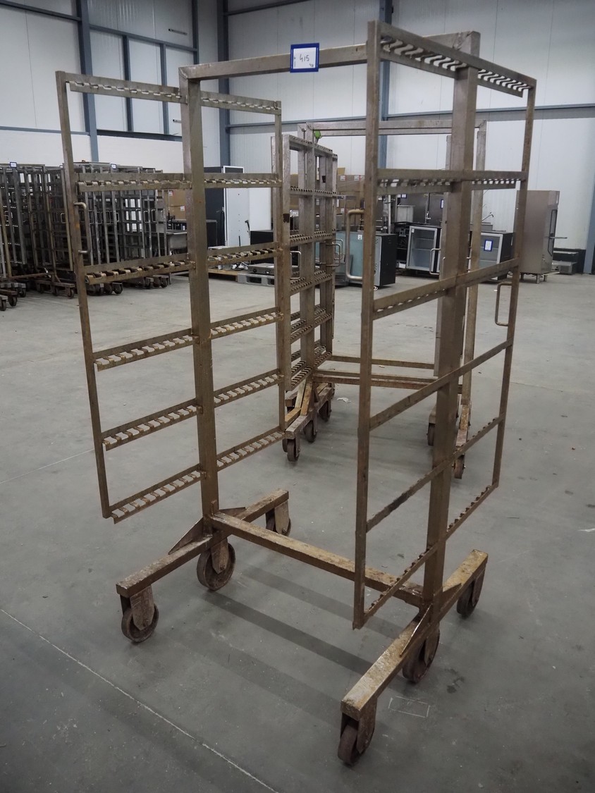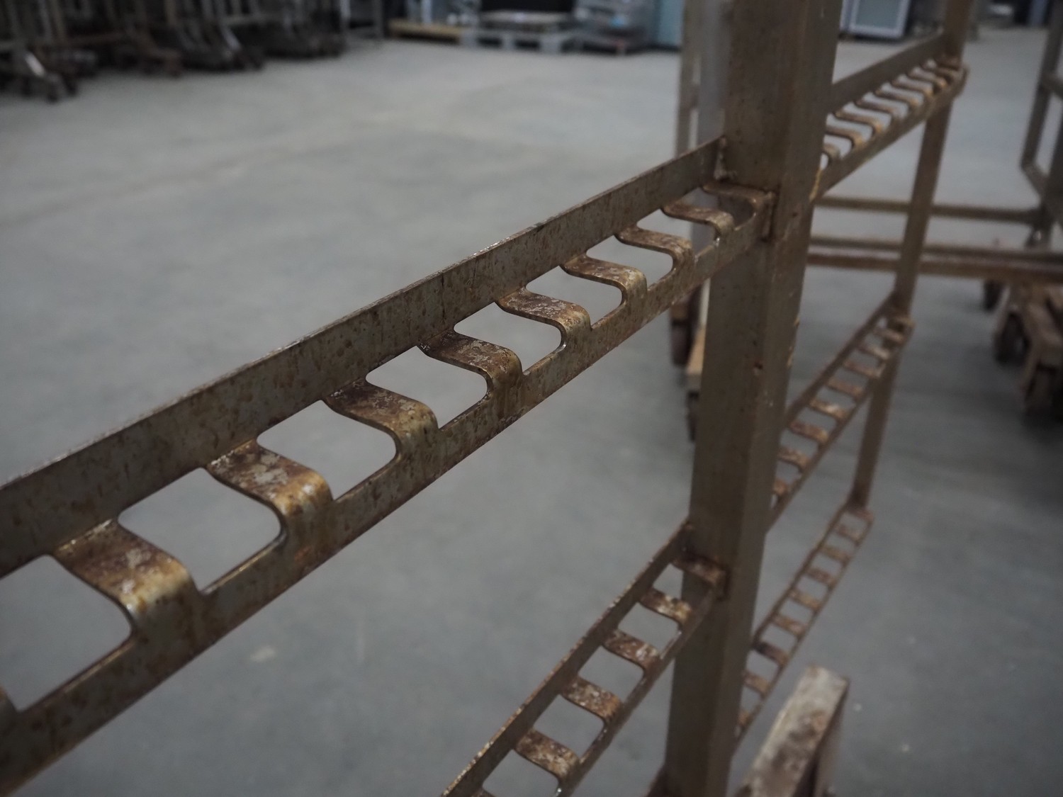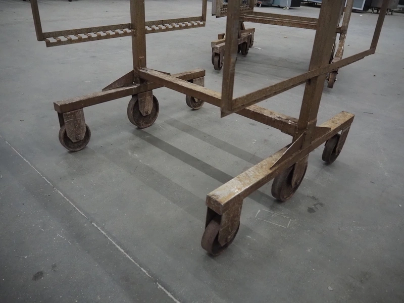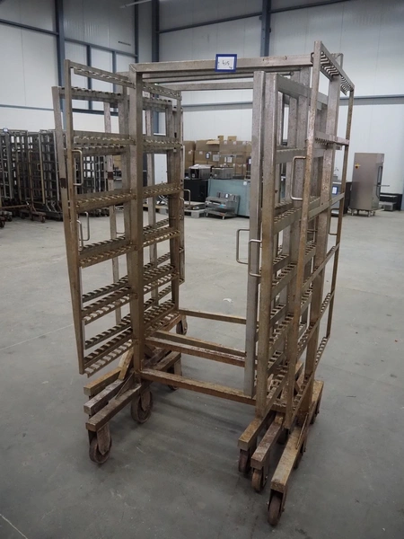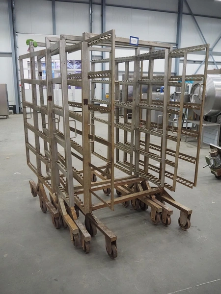 4 s/s smoke trolleys, 6 floors, dimensions each floor: 1010 mm x 1000 mm, total dimensions: (4x) 1020 mm x 1000 mm x 1980 mm.