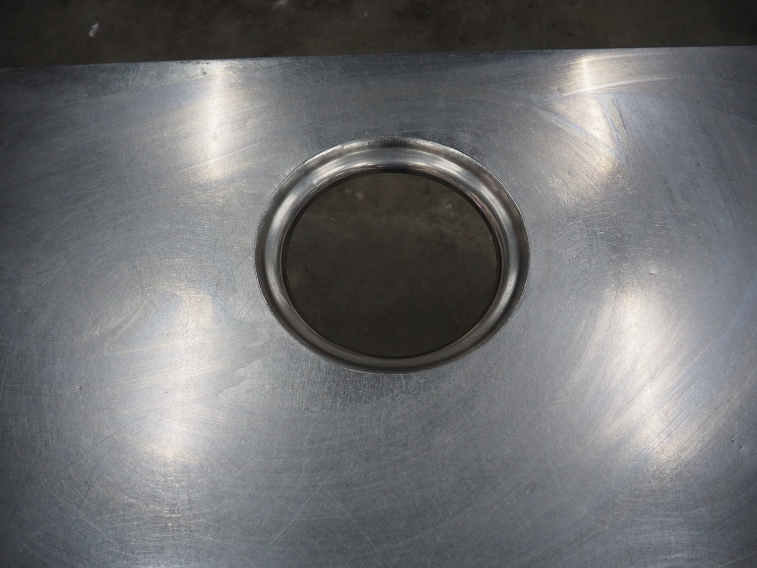 Kitchen Concept s/s table, hole diameter: 205 mm, total dimensions: 1200 mm x 700 mm x 870 mm.
