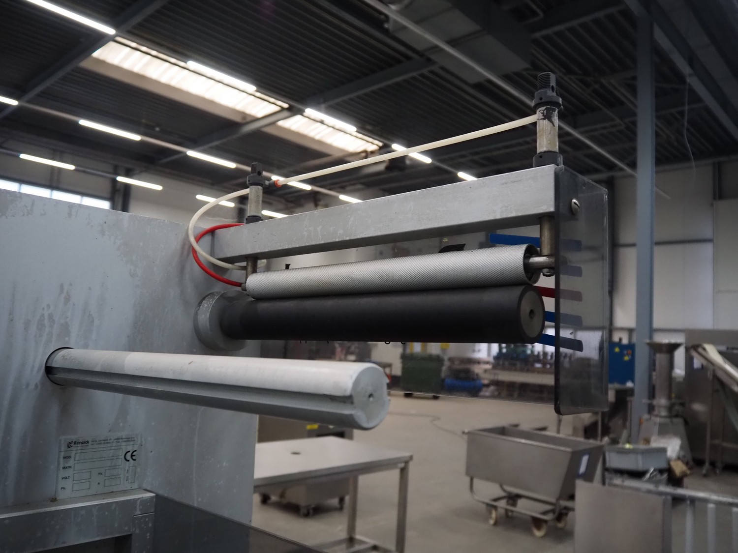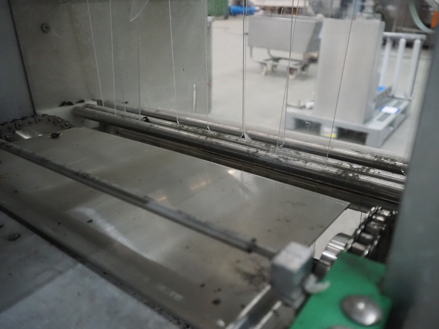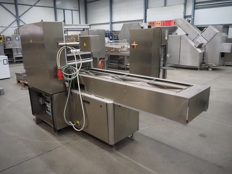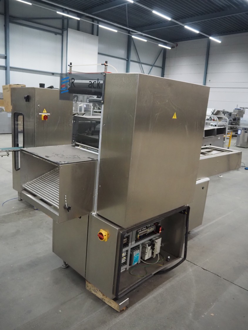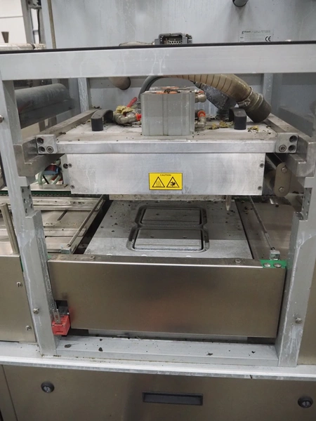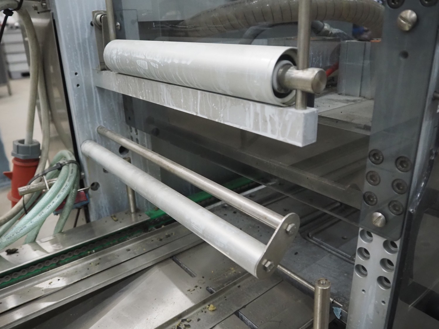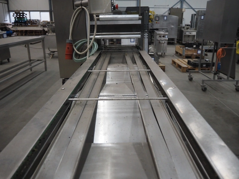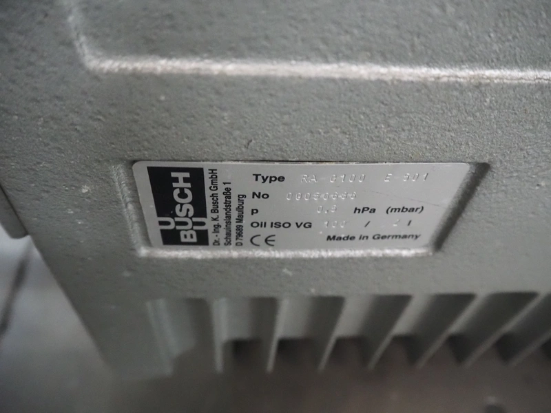 Reepack traysealer, model: REEFLEX, serial number: 0401005, year of construction: 2001, 400 V, 3 Ph, 50 Hz, max 21 A, dye: (2x) 200 mm x 135 mm, Busch vacuum pump, type: RA 0100 E 501, capacity: 100 m³ per hour, total dimensions: 2950 mm x 900 mm x 1750 mm. 1 leg broken.
