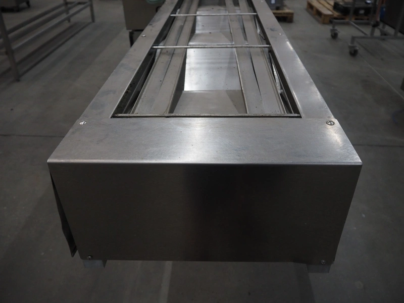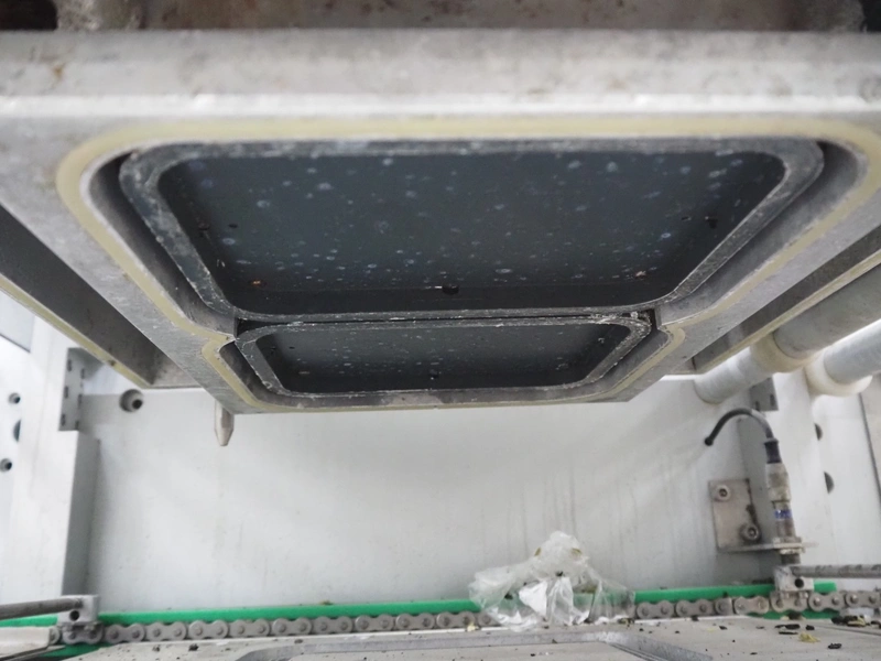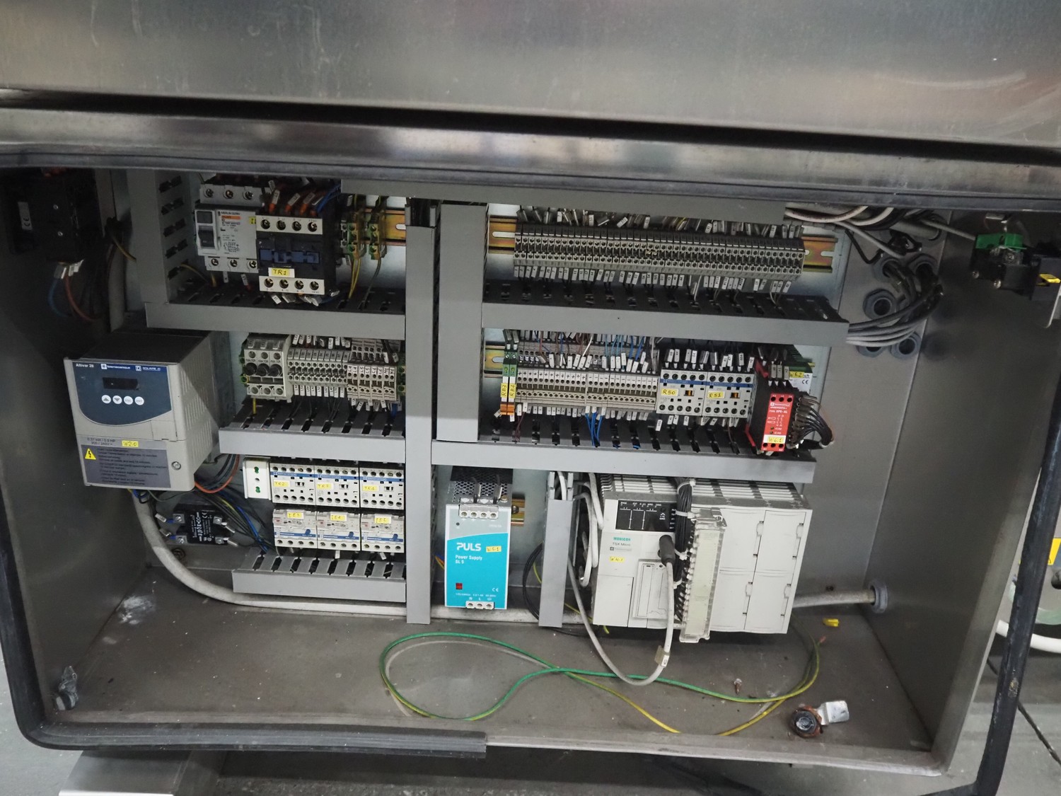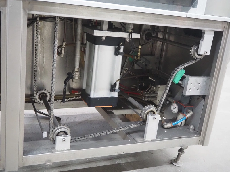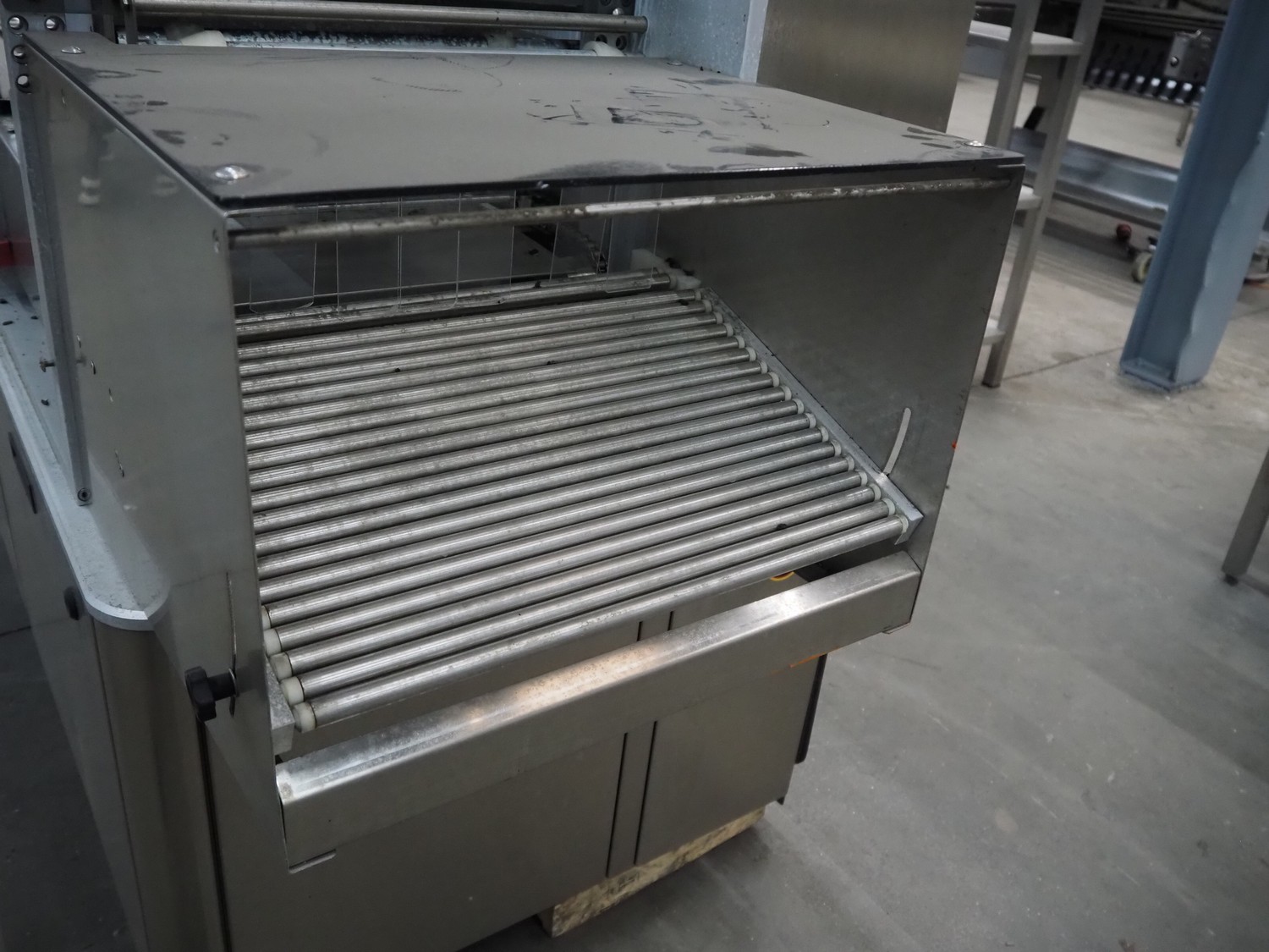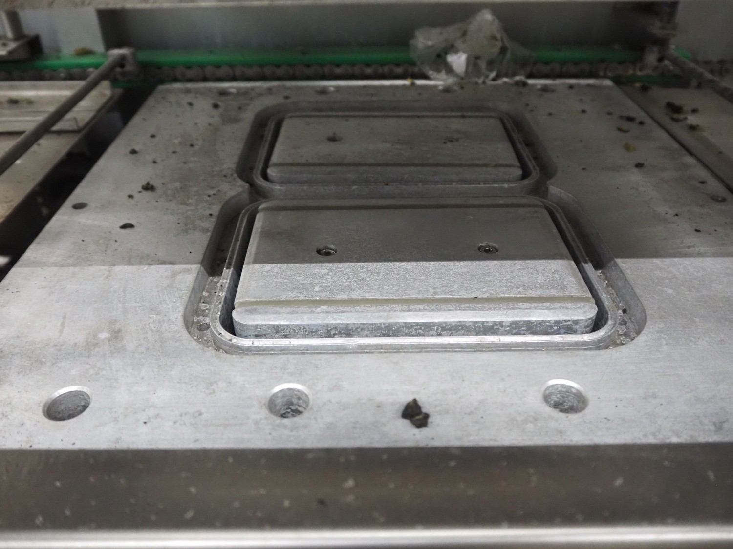 Reepack traysealer, model: REEFLEX, serial number: 0401005, year of construction: 2001, 400 V, 3 Ph, 50 Hz, max 21 A, dye: (2x) 200 mm x 135 mm, Busch vacuum pump, type: RA 0100 E 501, capacity: 100 m³ per hour, total dimensions: 2950 mm x 900 mm x 1750 mm. 1 leg broken.