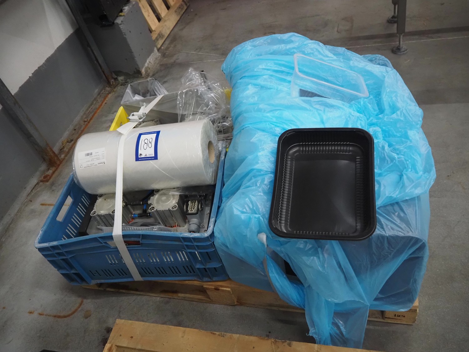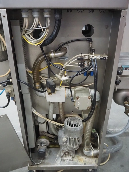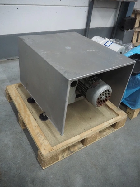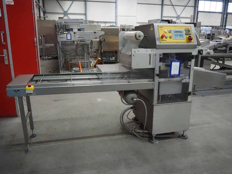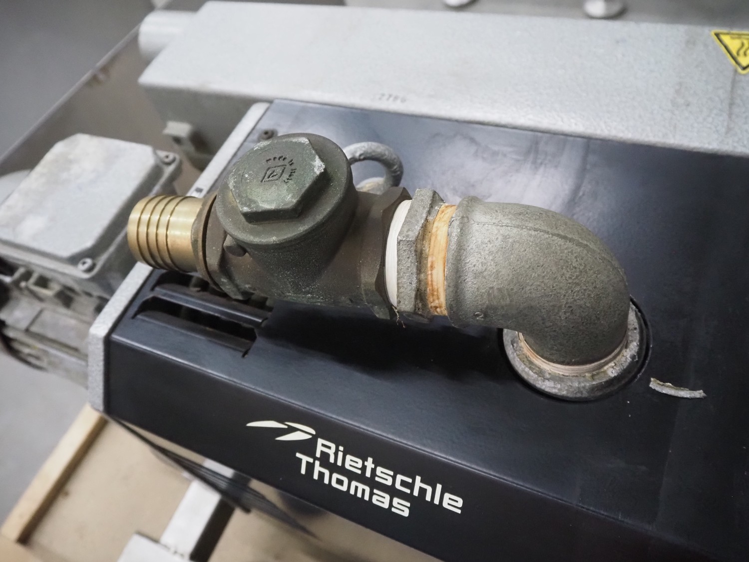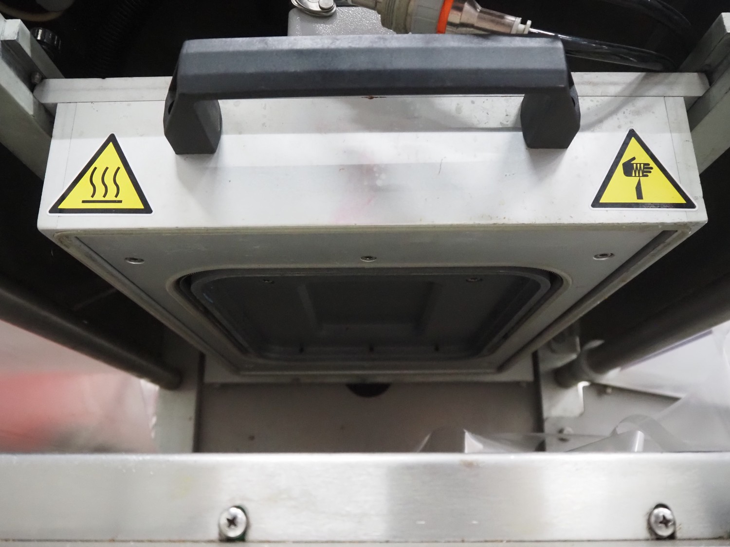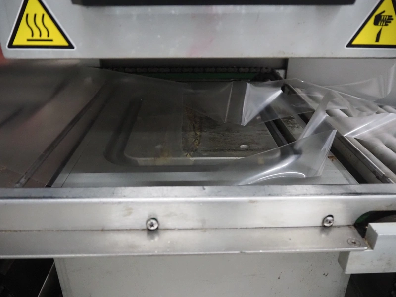 Yang traysealer, model: PERSEUS VAC, year of construction: 2005, 400 V, 3 Ph, dye: 290 mm x 225 mm, film width: 430 mm, total dimensions: 2850 mm x 900 mm x 1550 mm. Including Rietschle vacuum pump, type: VC 150 (20), year of construction: 2005, capacity: 150 m³ per hour, dimensions: 850 mm x 900 mm x 600 mm and pallet with dye sets and film roll.