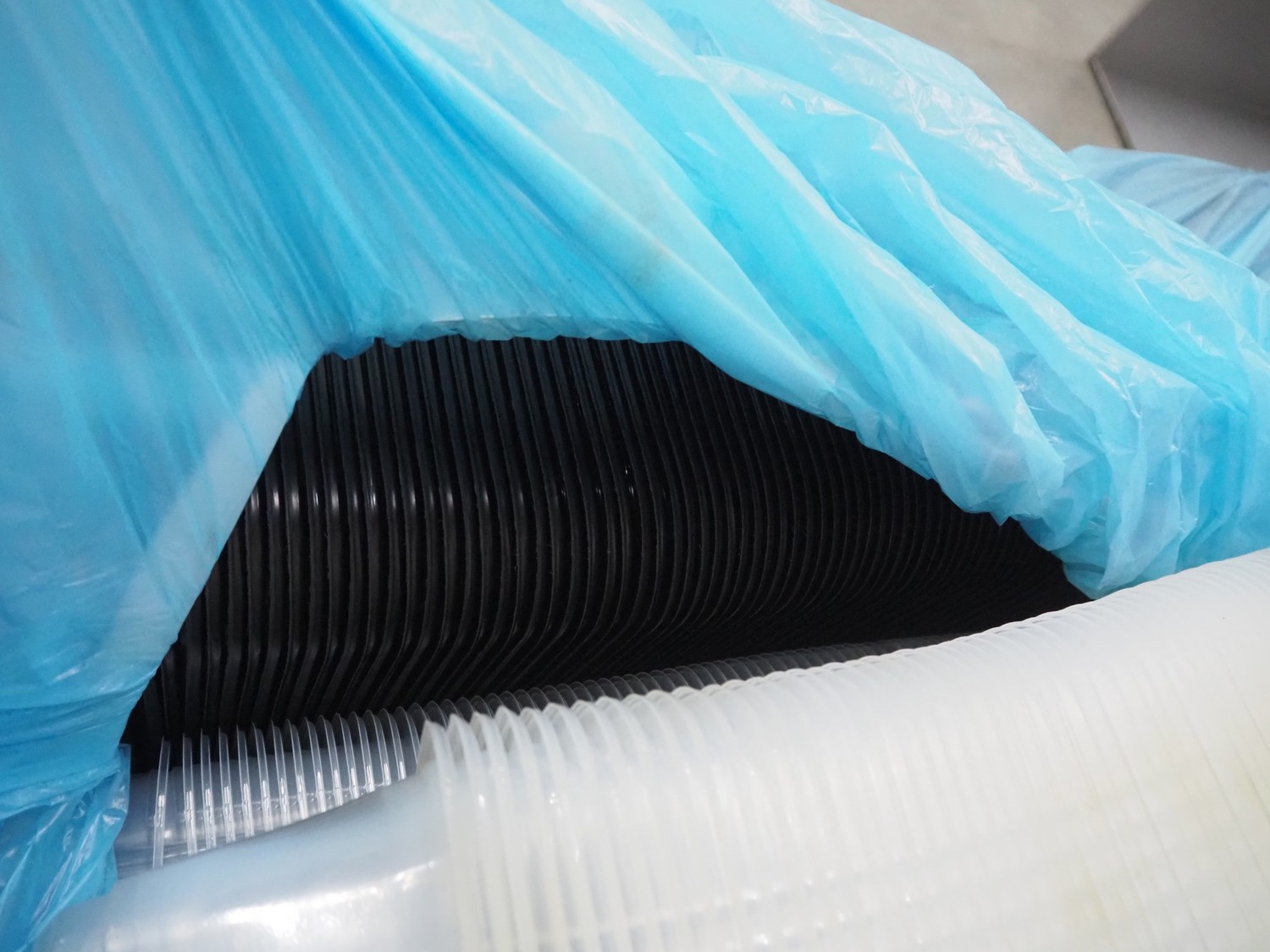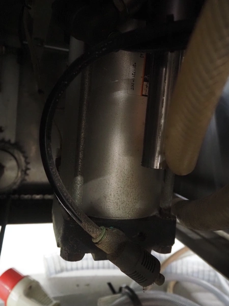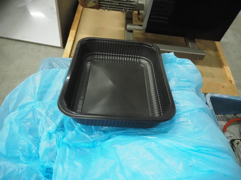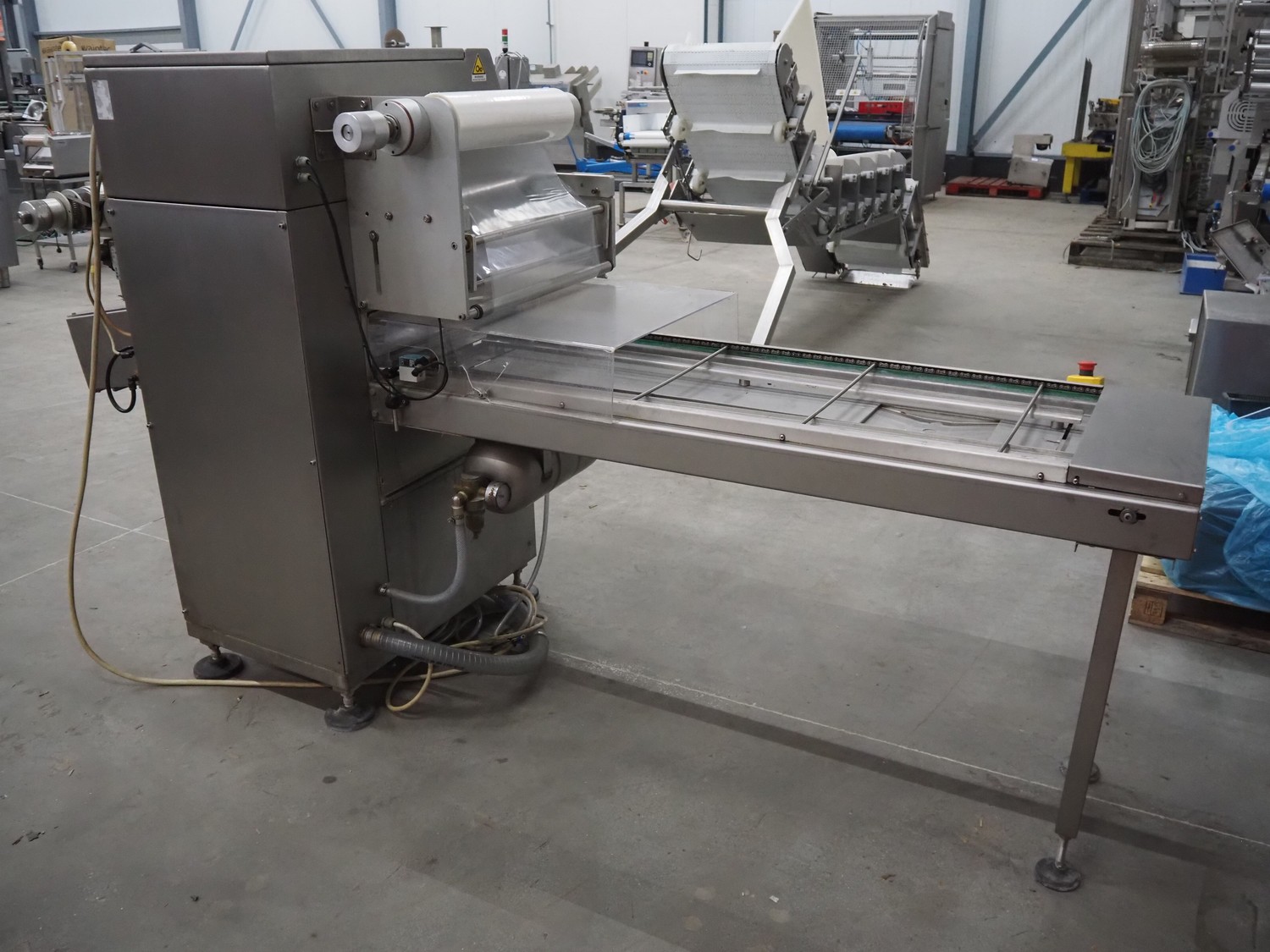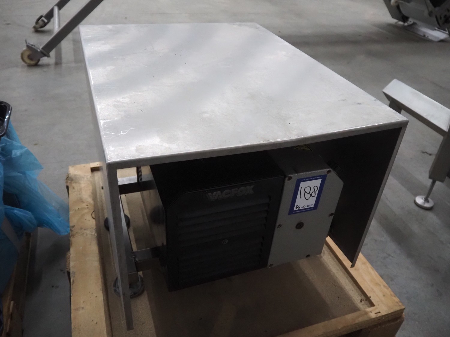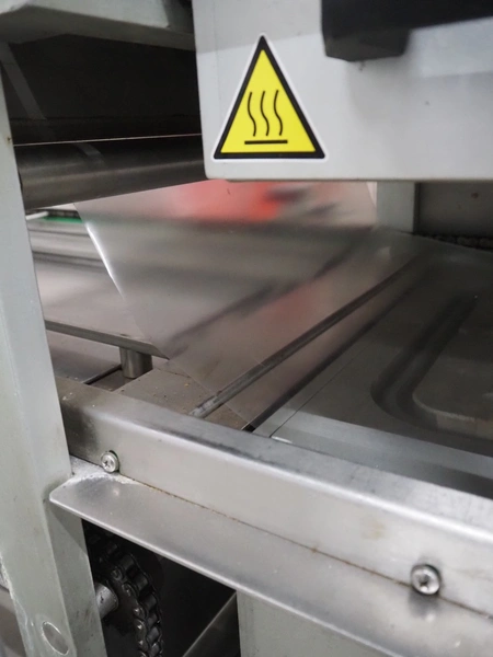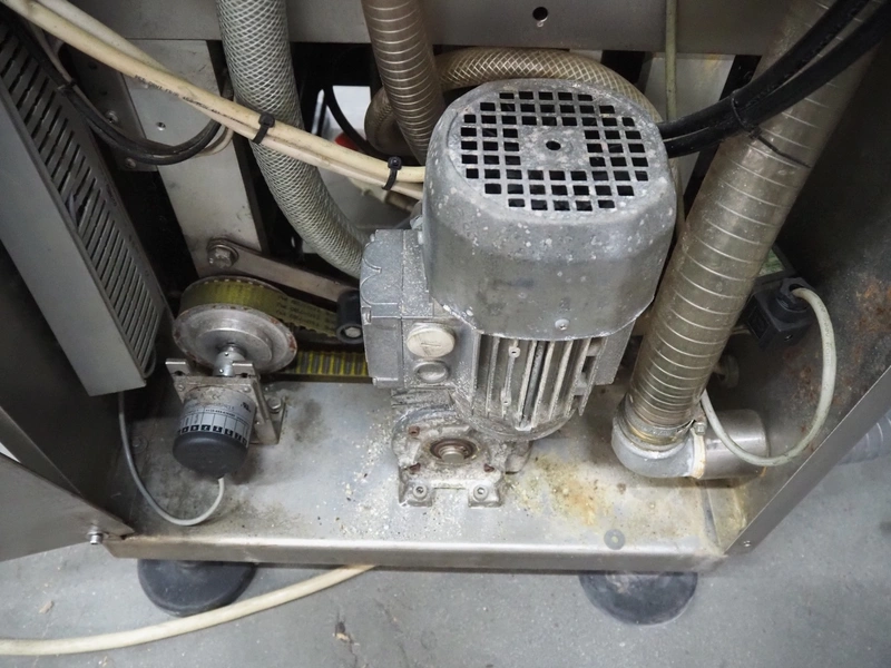 Yang traysealer, model: PERSEUS VAC, year of construction: 2005, 400 V, 3 Ph, dye: 290 mm x 225 mm, film width: 430 mm, total dimensions: 2850 mm x 900 mm x 1550 mm. Including Rietschle vacuum pump, type: VC 150 (20), year of construction: 2005, capacity: 150 m³ per hour, dimensions: 850 mm x 900 mm x 600 mm and pallet with dye sets and film roll.