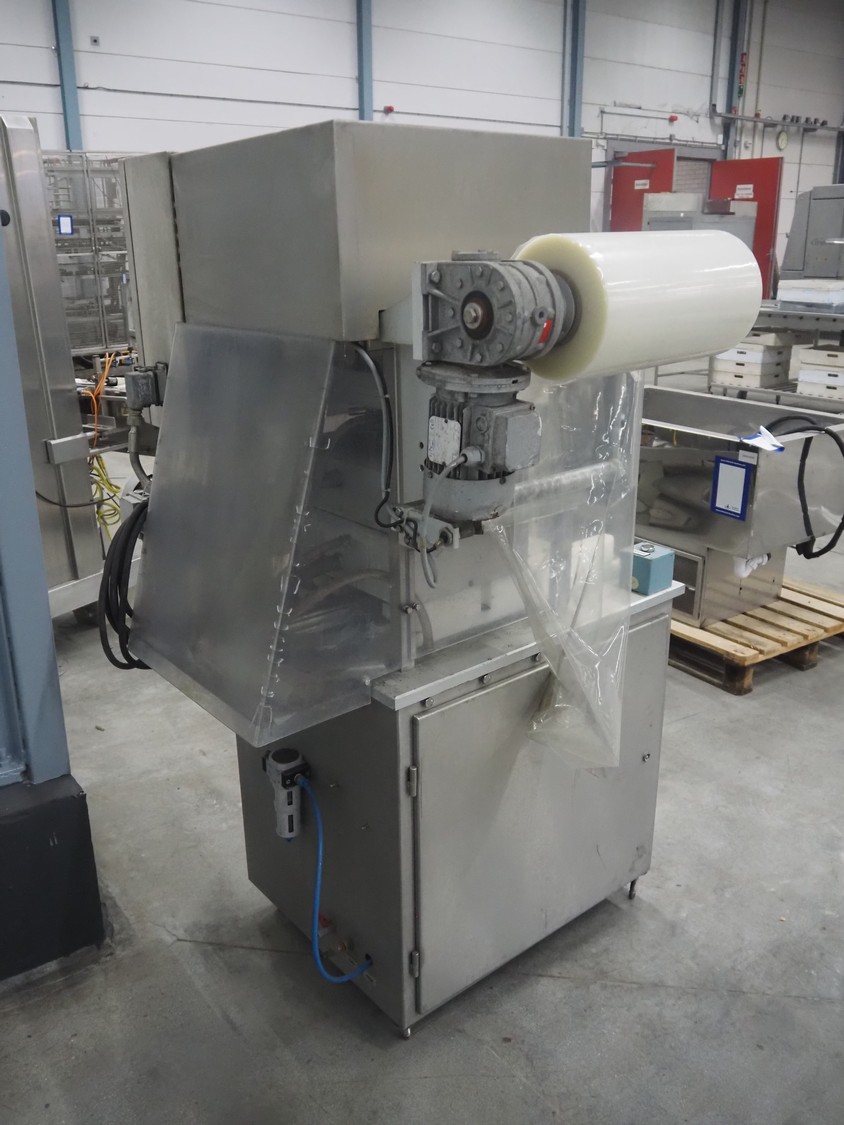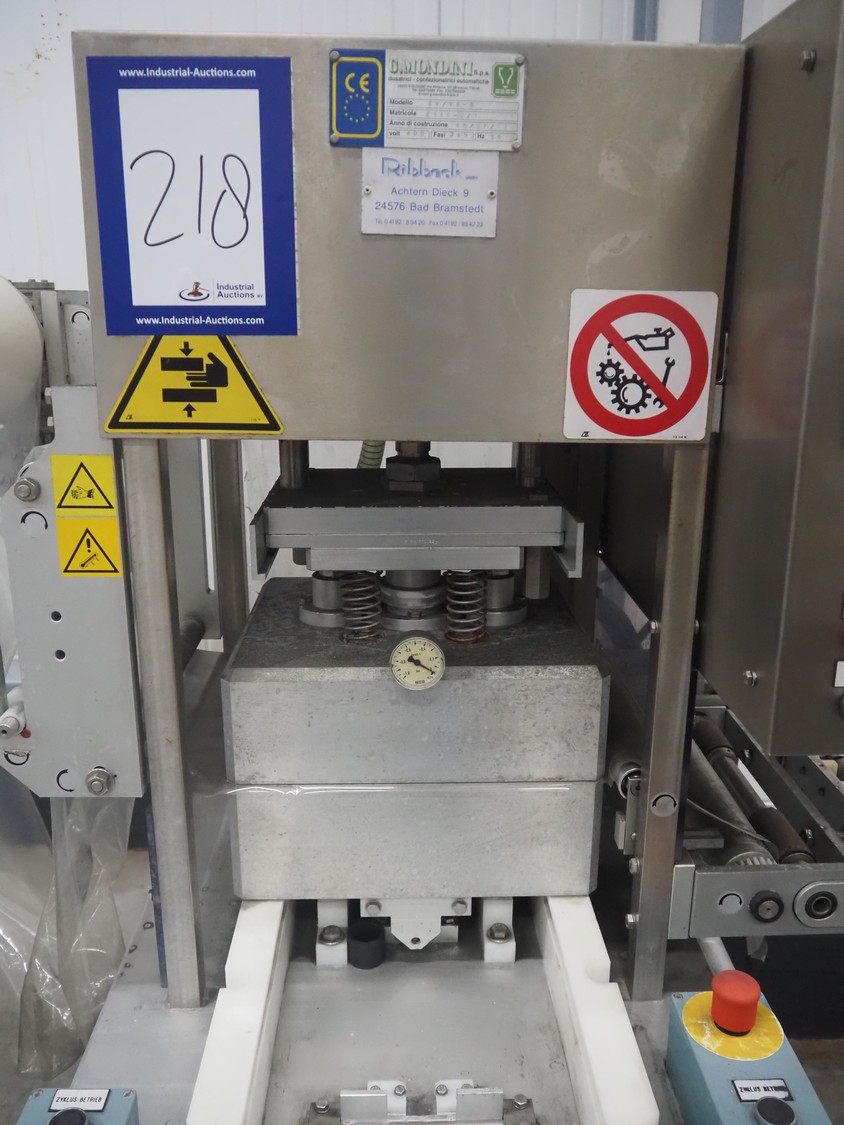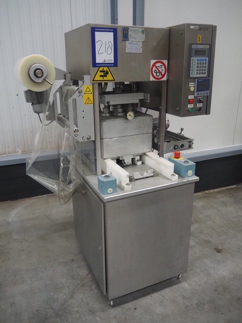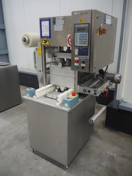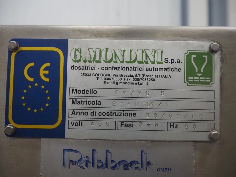G. Mondini S.p.a. traysealer, model: CV/VG-S, serial number: 2140-02/1, year of construction: 08/08/02, 400 V, 3 Ph, 50 Hz, dye: 270 mm x 270 mm, film width: 335 mm, total dimensions: 1100 mm x 1000 mm x 1630 mm.