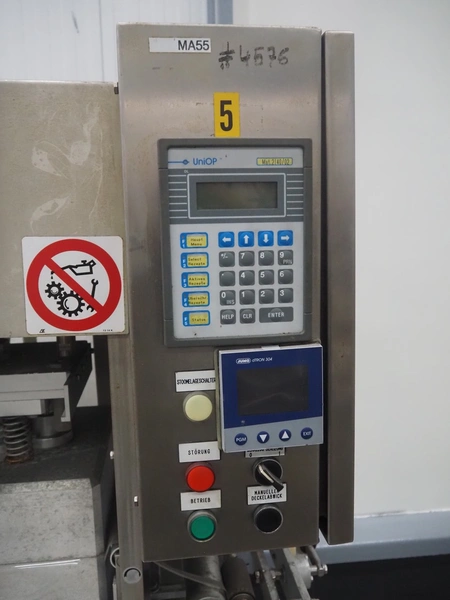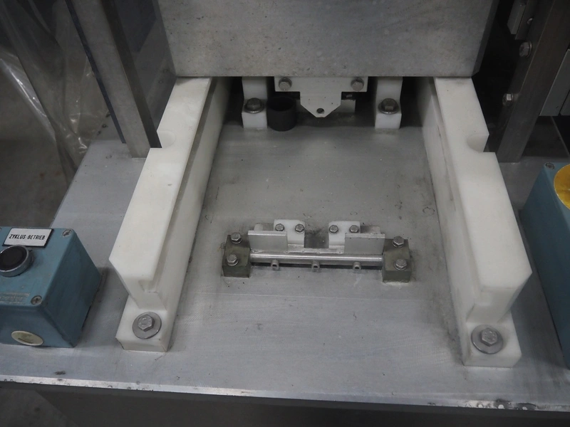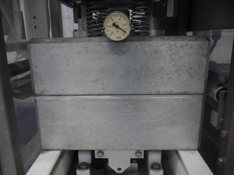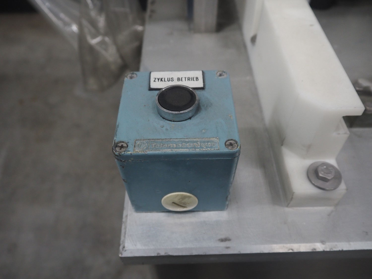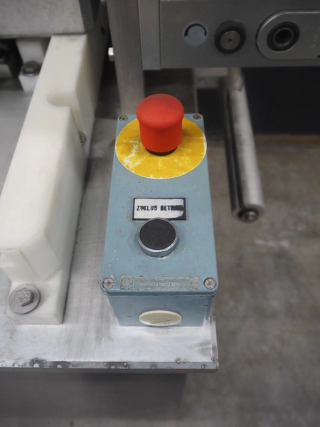 G. Mondini S.p.a. traysealer, model: CV/VG-S, serial number: 2140-02/1, year of construction: 08/08/02, 400 V, 3 Ph, 50 Hz, dye: 270 mm x 270 mm, film width: 335 mm, total dimensions: 1100 mm x 1000 mm x 1630 mm.