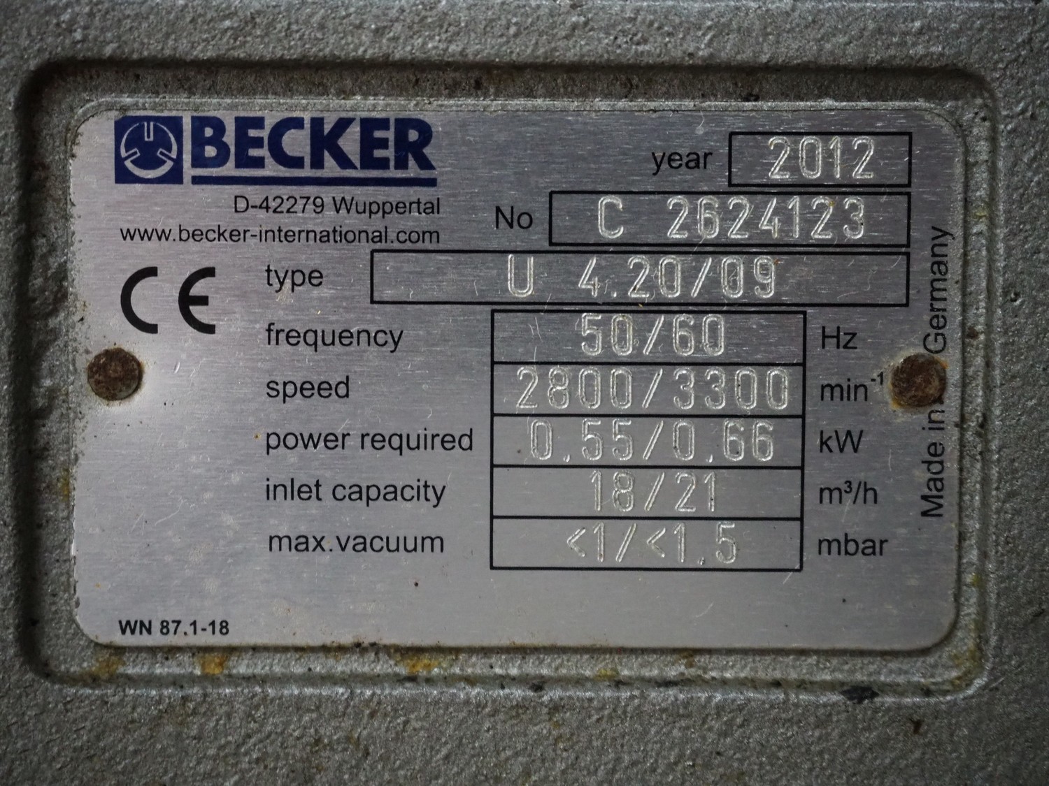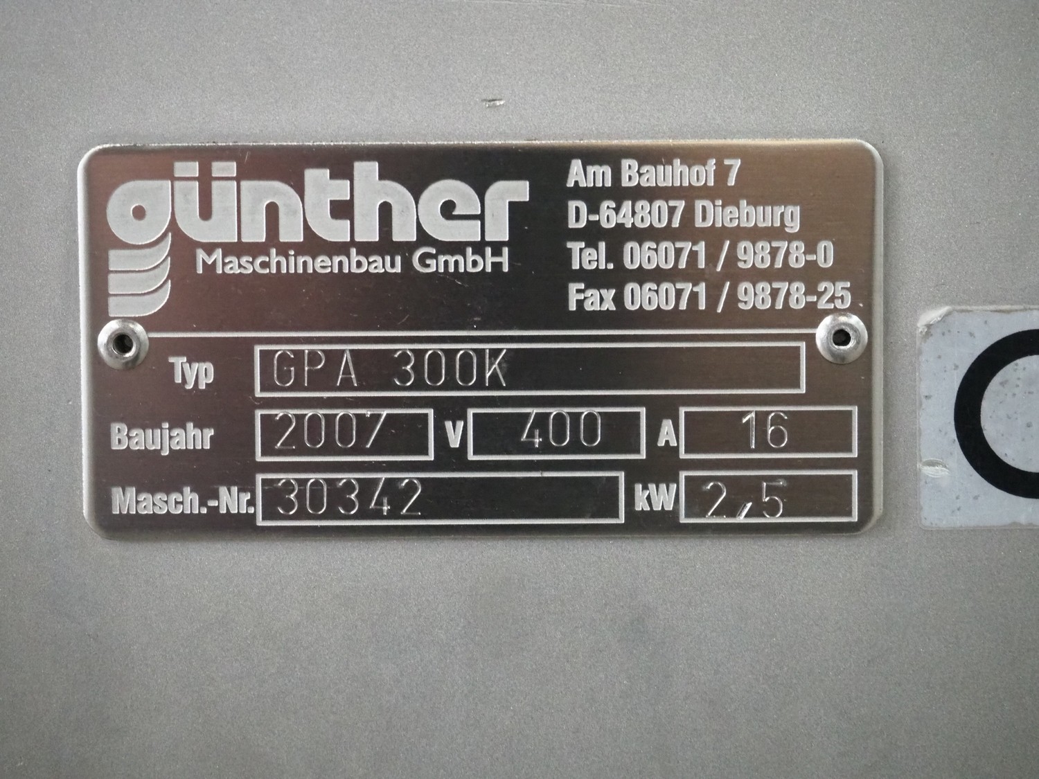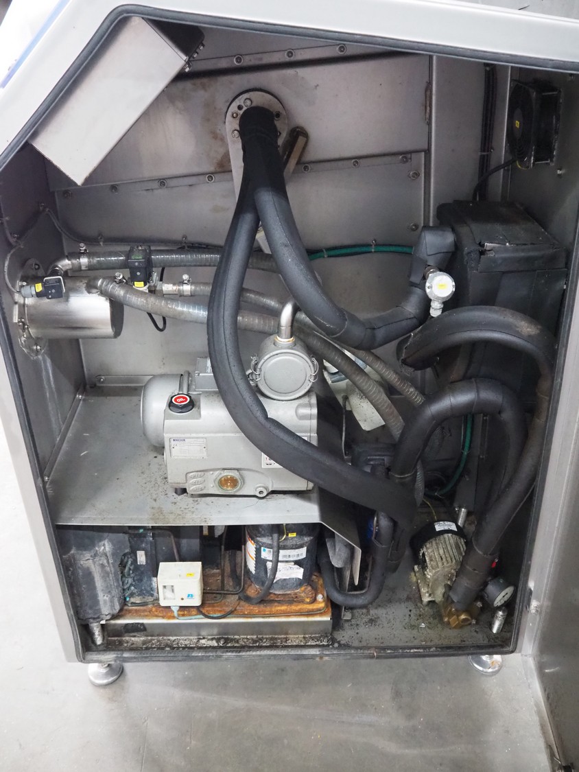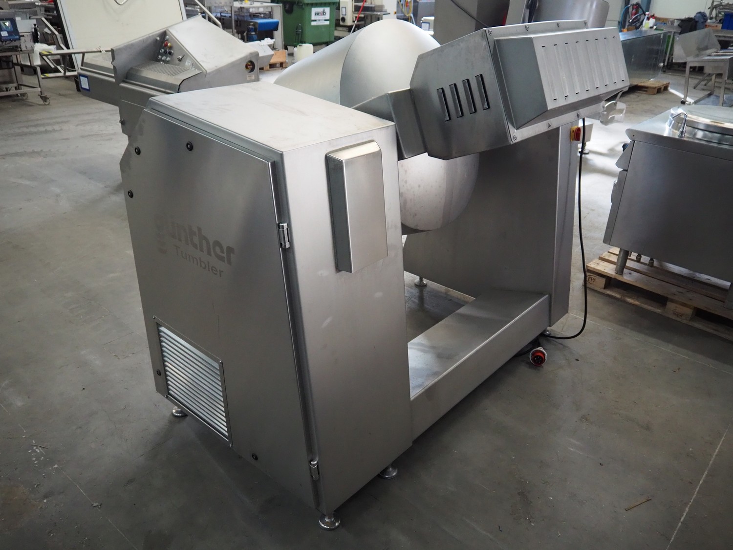 Günther cooled vacuum tumbler, type: GPA 300K, machine number: 30342, year of construction: 2007, 400 V, 16 A, 2.5 kW, Becker vacuum pump, type: U 4.20/09, capacity: 18-21 m³ per hour, dimensions: 2100 mm x 1750 mm x 1630 mm.