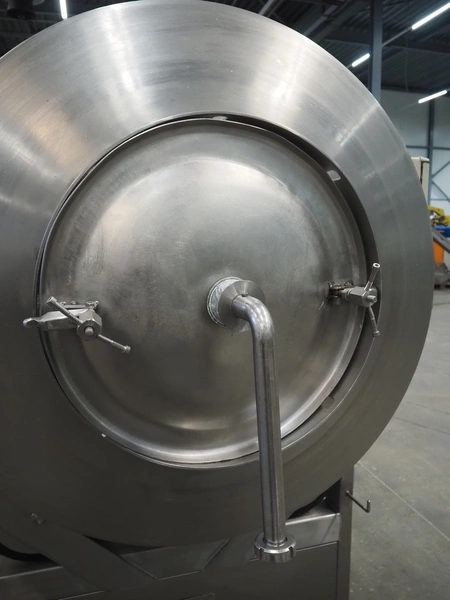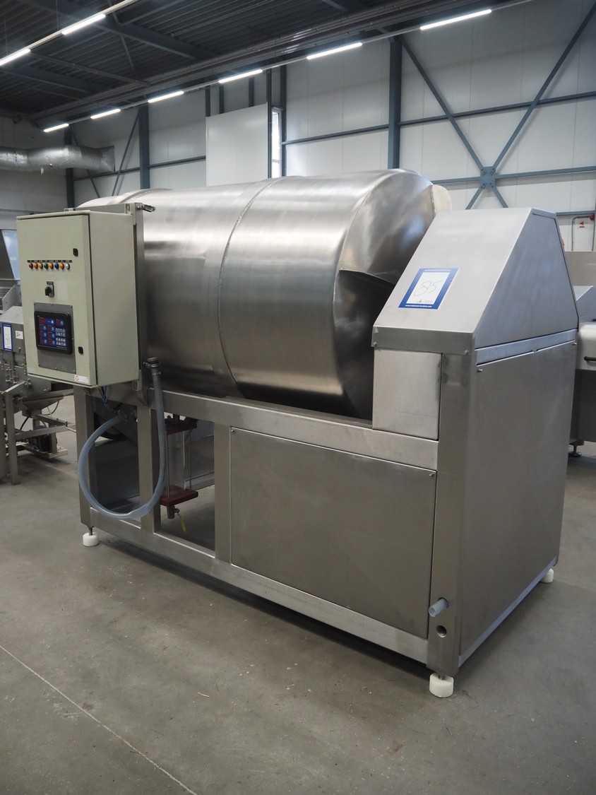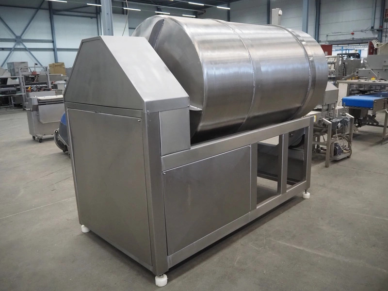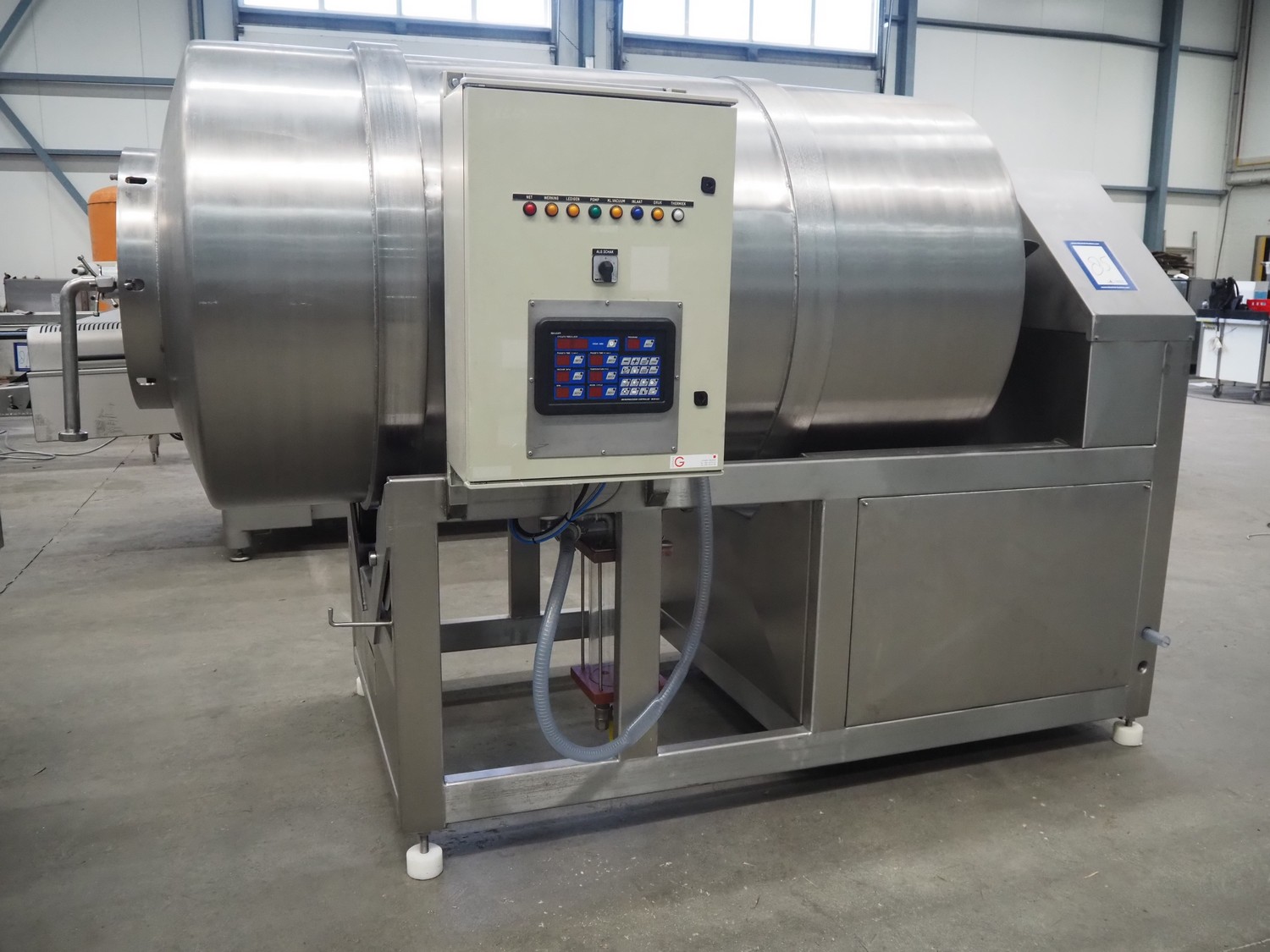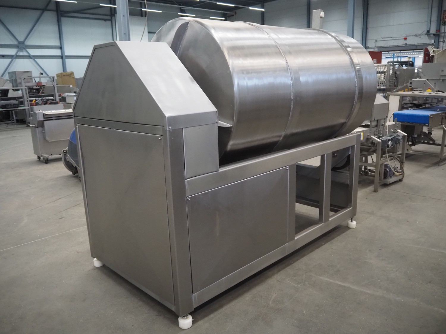 Gernal vacuum tumbler, type: HBC120, 380 V, 3 PH, 50 Hz, 3 kW, volume: 2000 liter, capacity: 1000 kg, Busch vacuum pump, type: RA 0040 F 503, capacity: 40 m³ per hour, dimensions: 2750 mm x 1500 mm x 1900 mm.