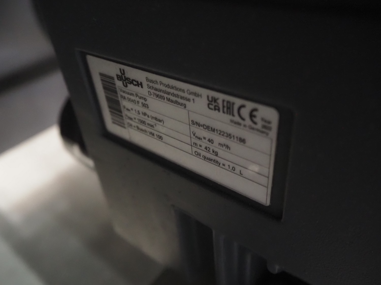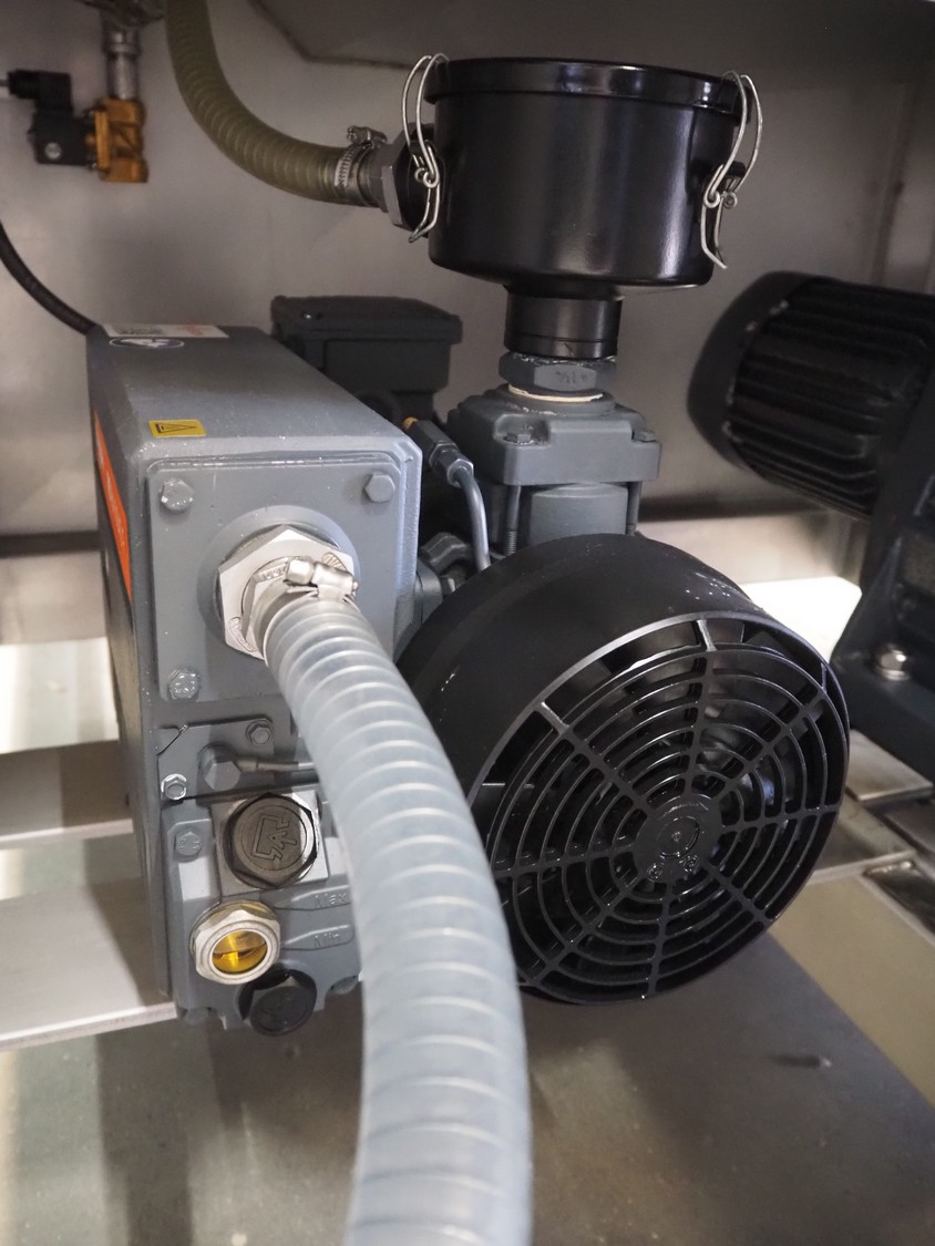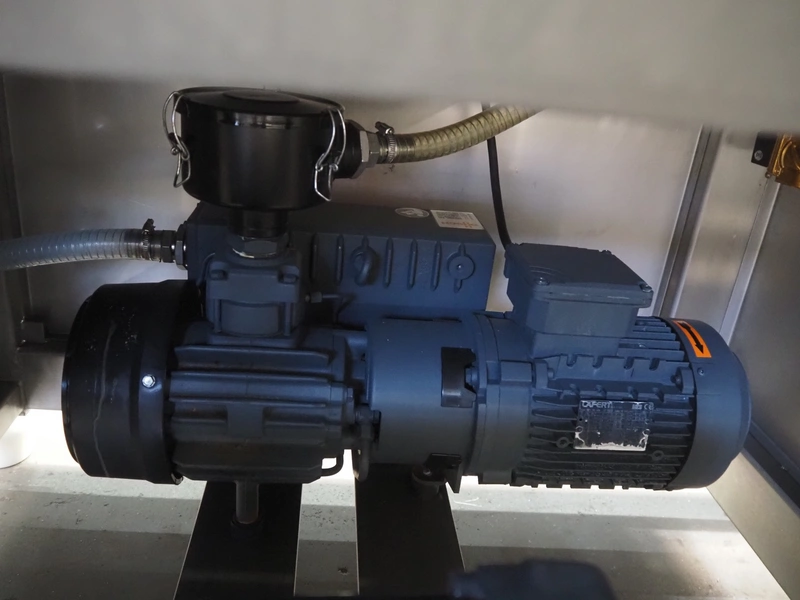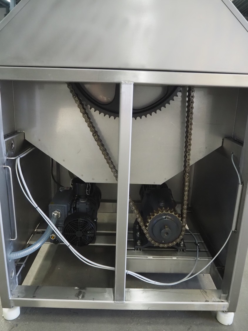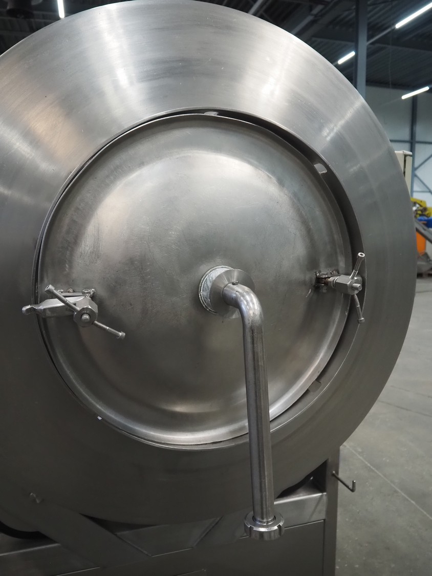 Gernal vacuum tumbler, type: HBC120, 380 V, 3 PH, 50 Hz, 3 kW, volume: 2000 liter, capacity: 1000 kg, Busch vacuum pump, type: RA 0040 F 503, capacity: 40 m³ per hour, dimensions: 2750 mm x 1500 mm x 1900 mm.