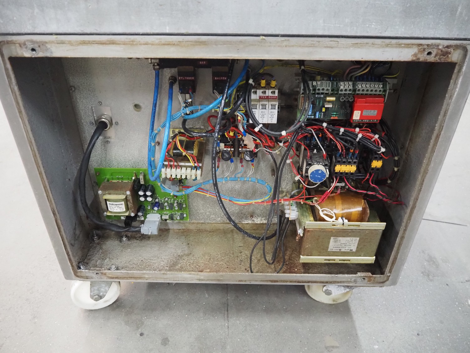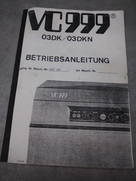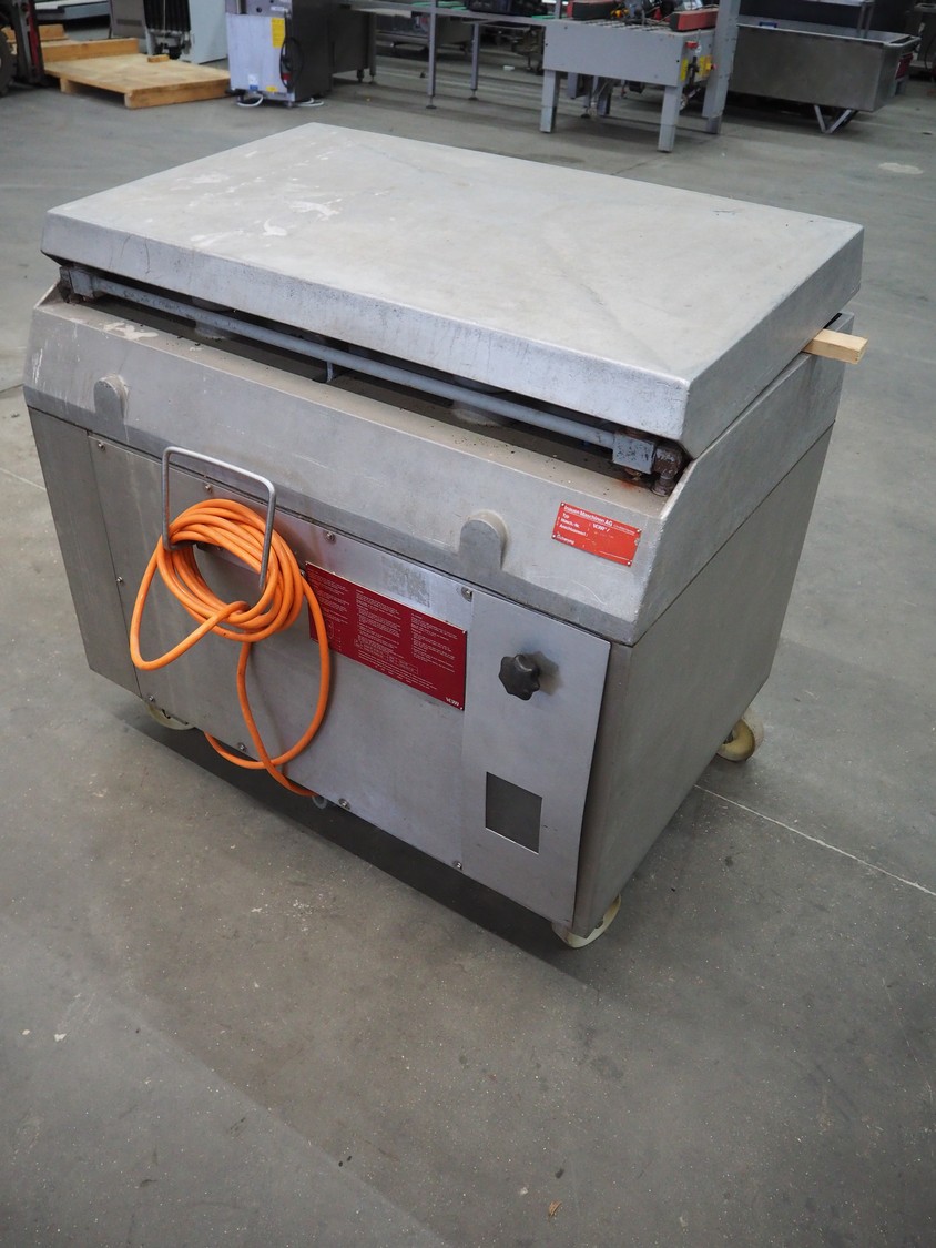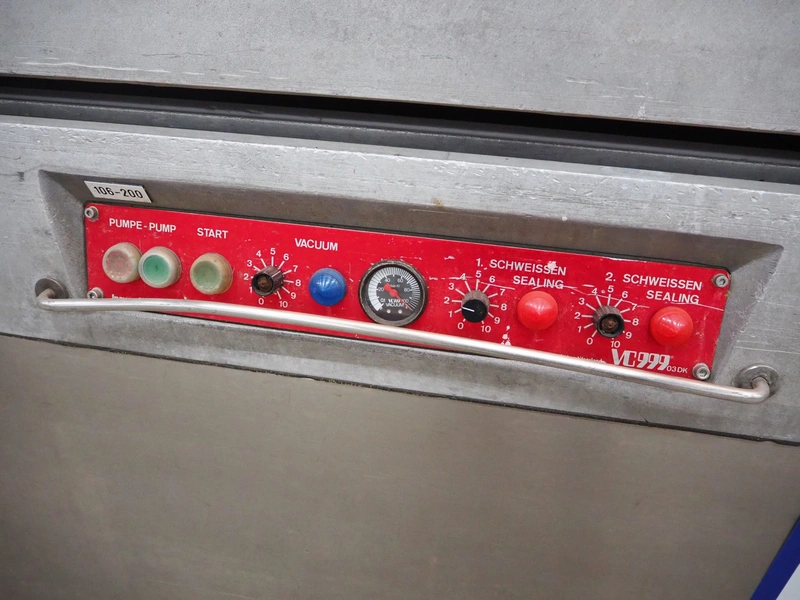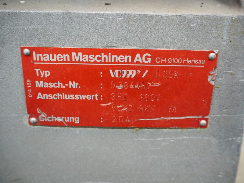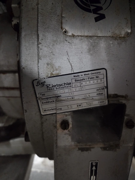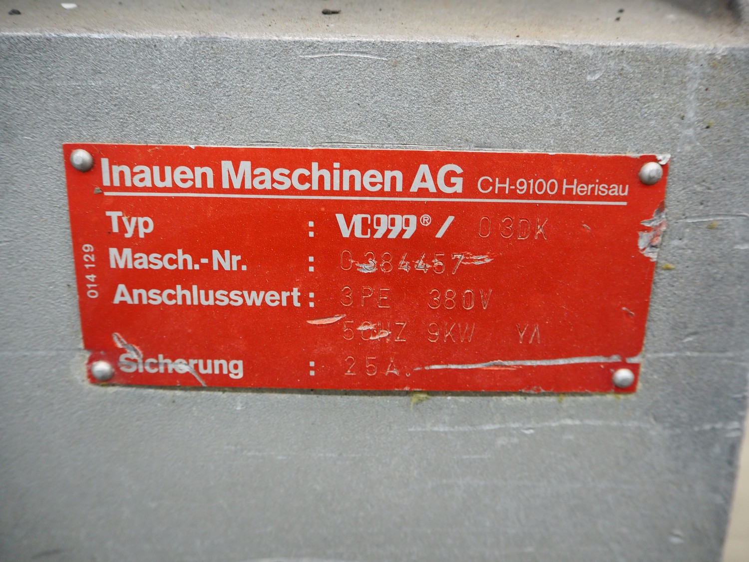 Inauen Maschinen AG mobile vacuum machine, type: VC999/03DK, machine number: 0384457, 380 V, 3 Ph, 50 Hz, 9 kW, dimensions chamber: 950 mm x 430 mm x 150 mm, seal length: 950 mm x (2x) 450 mm, Rietschle vacuum pump, type: CLFH 220 V 1011, capacity: 220 m³ per hour, total dimensions: 1150 mm x 800 mm x 1050 mm.