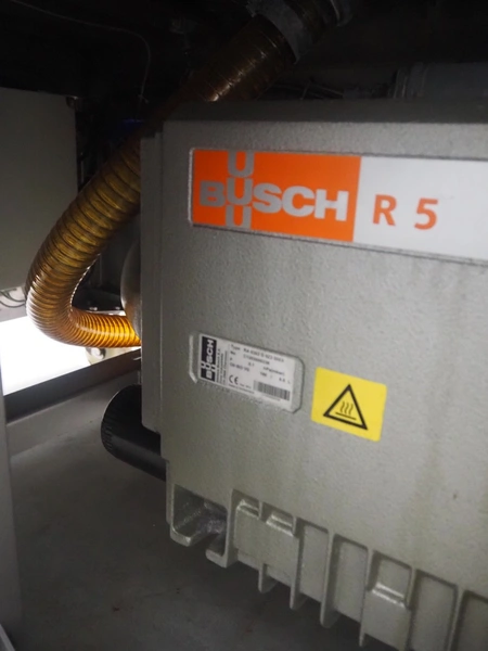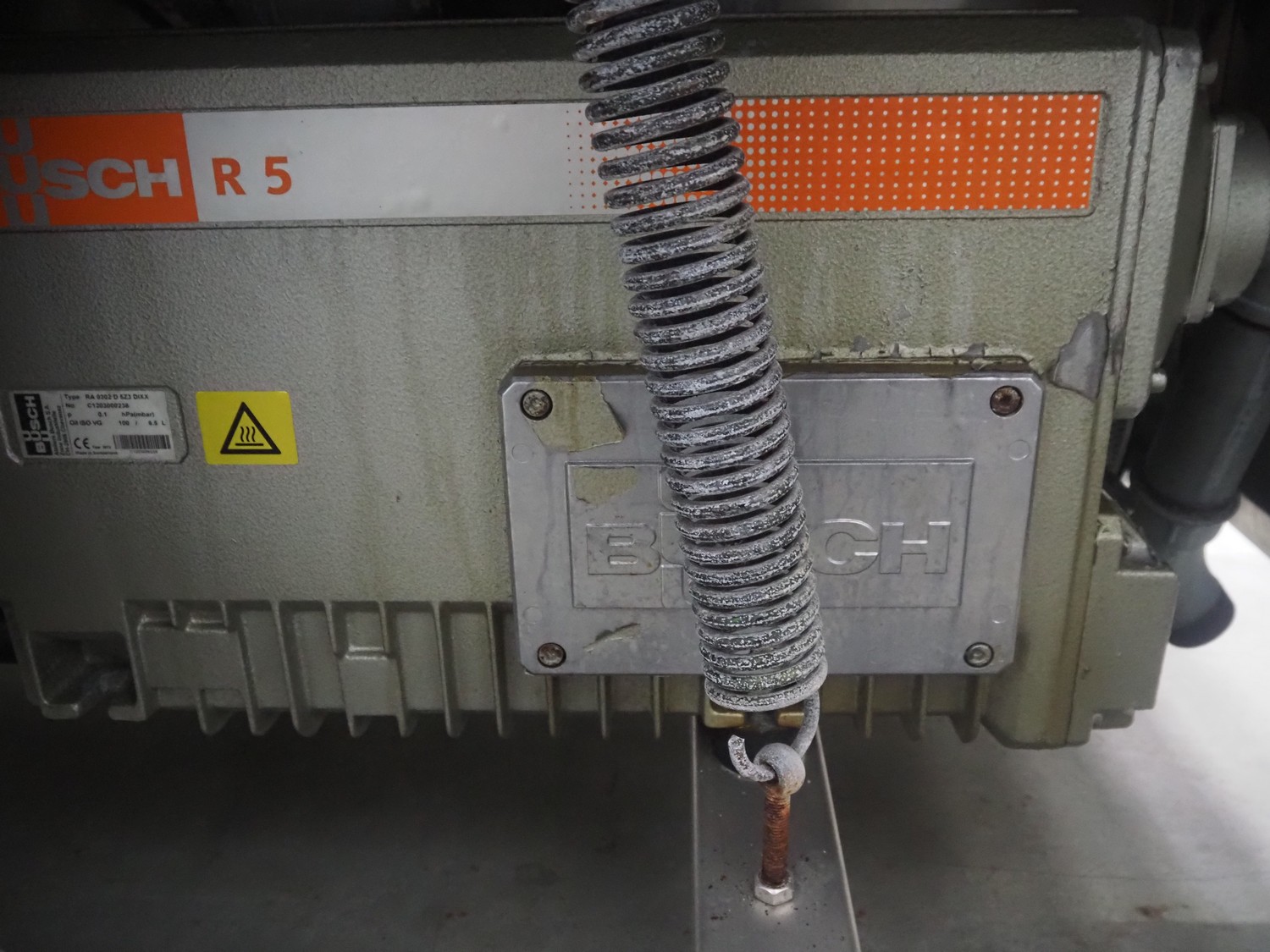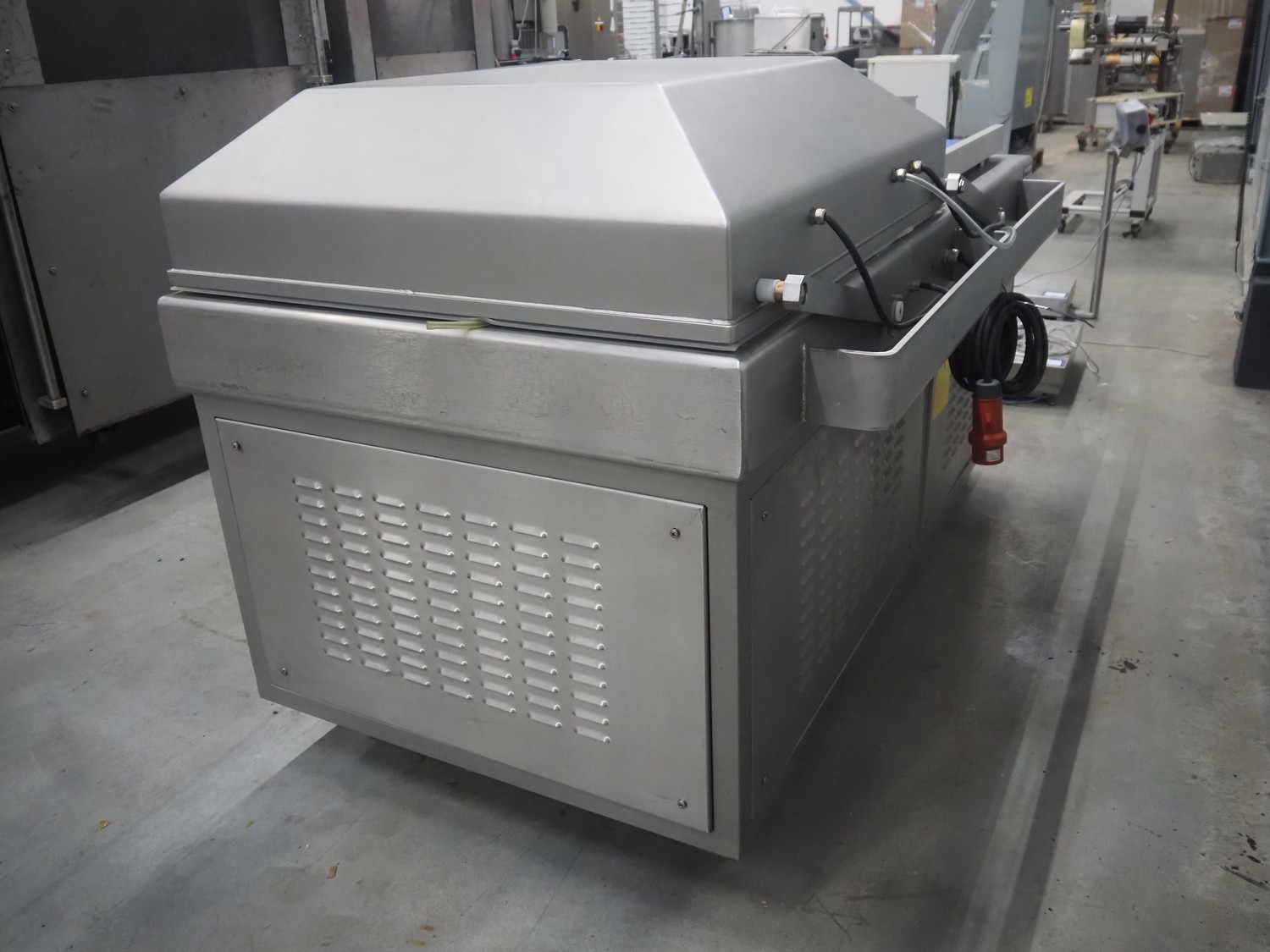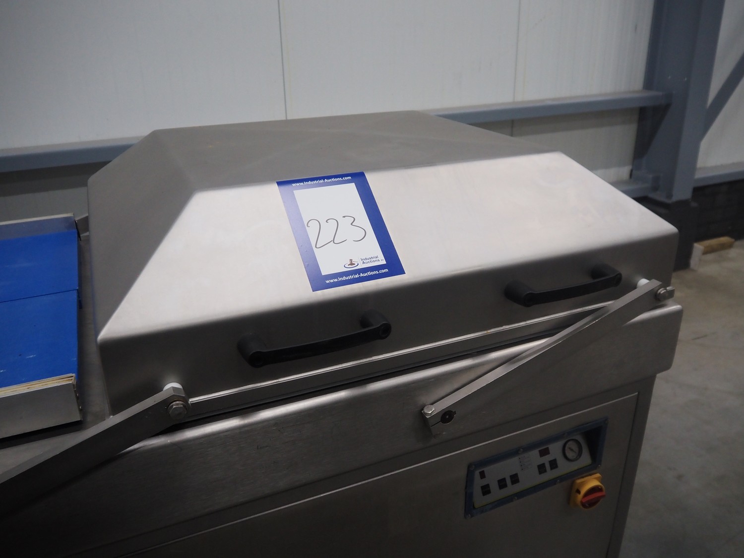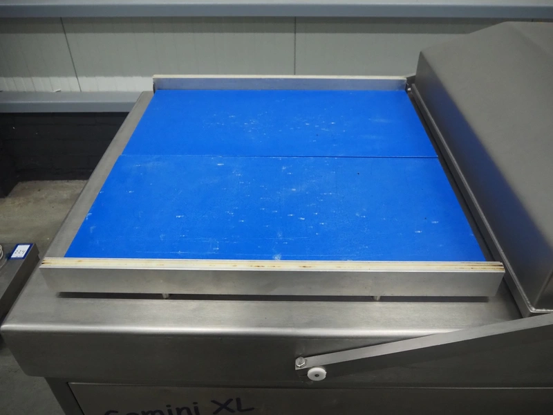 Stephanal alvac mobile double chamber vacuum machine, type: GeminiXL, machine number: 1042-5357, year of construction: 2012, 400 V, 3 Ph, 50 Hz, 19 A, 9 kW, seal length: (4x) 770 mm, chamber dimensions: (2x) 770 mm x 760 mm, Busch vacuum pump, type: RA 0302 D 5Z3 DIXX, capacity: 300 m³ per hour, total dimensions: 1910 mm x 1160 mm x 1200 mm.