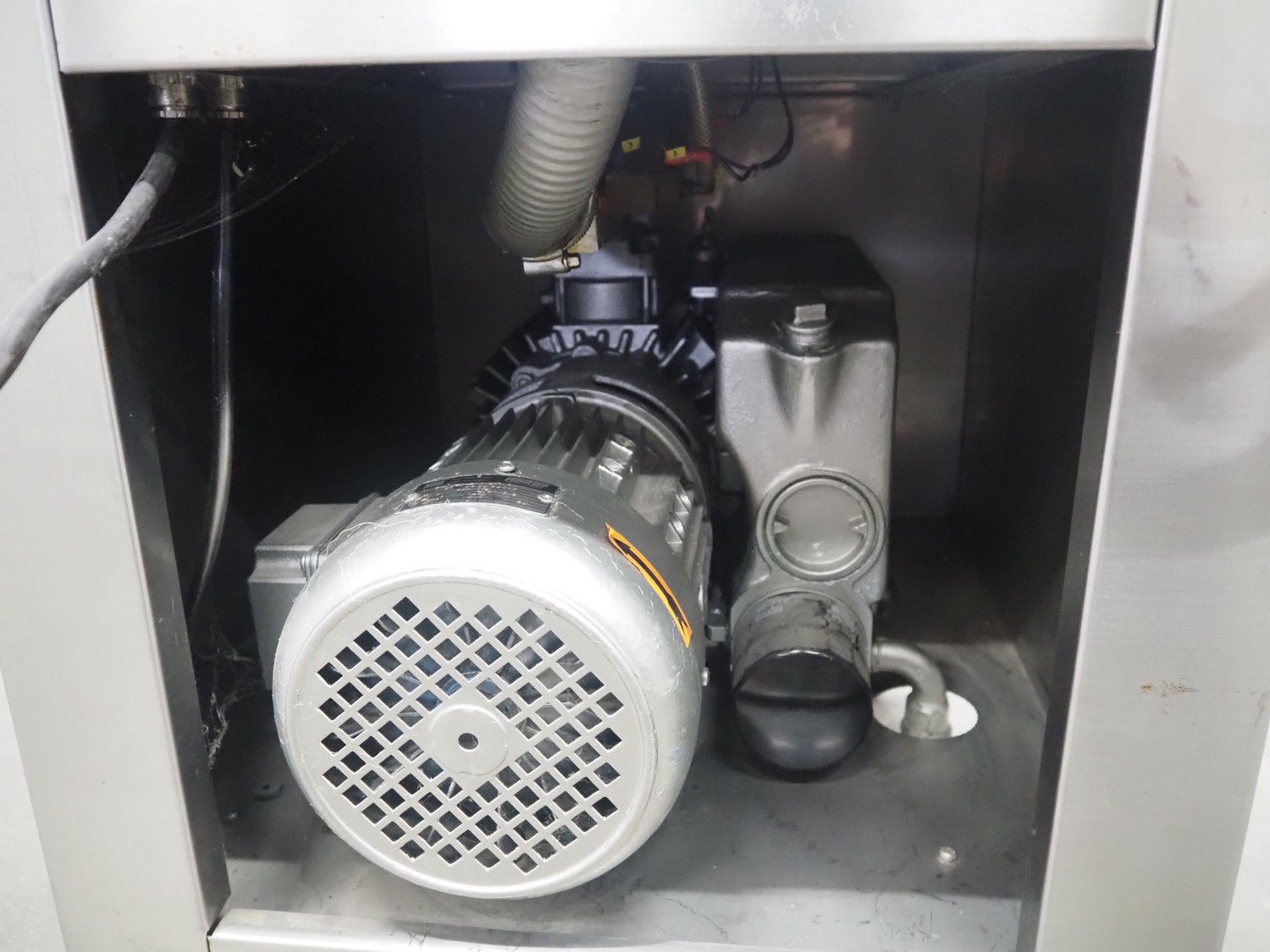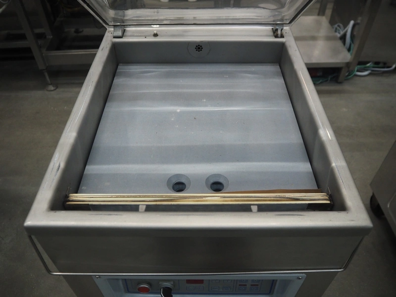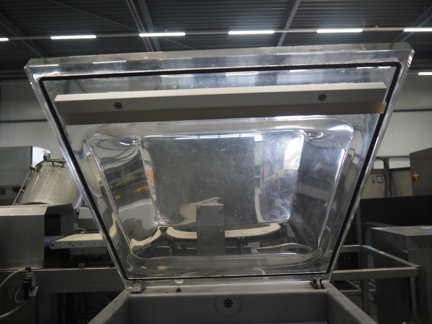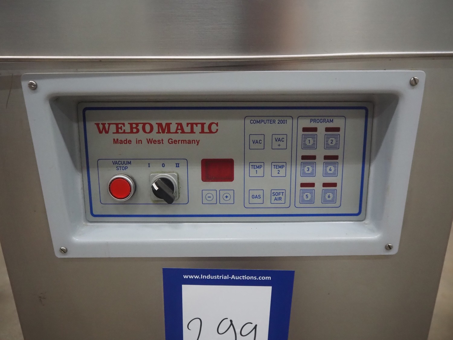 Webomatic mobile vacuum machine, seal length: 420 mm, chamber dimensions: 420 mm x 450 mm, total dimensions: 500 mm x 620 mm x 950 mm. Seal damaged.