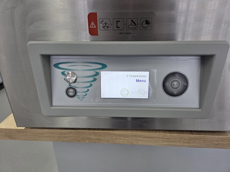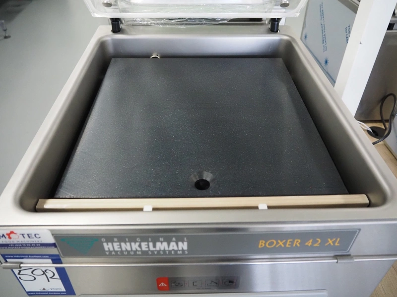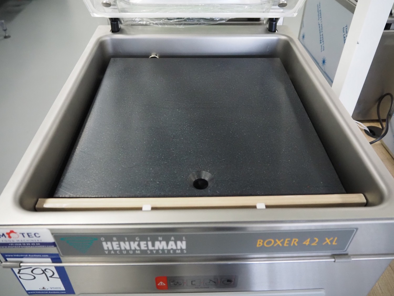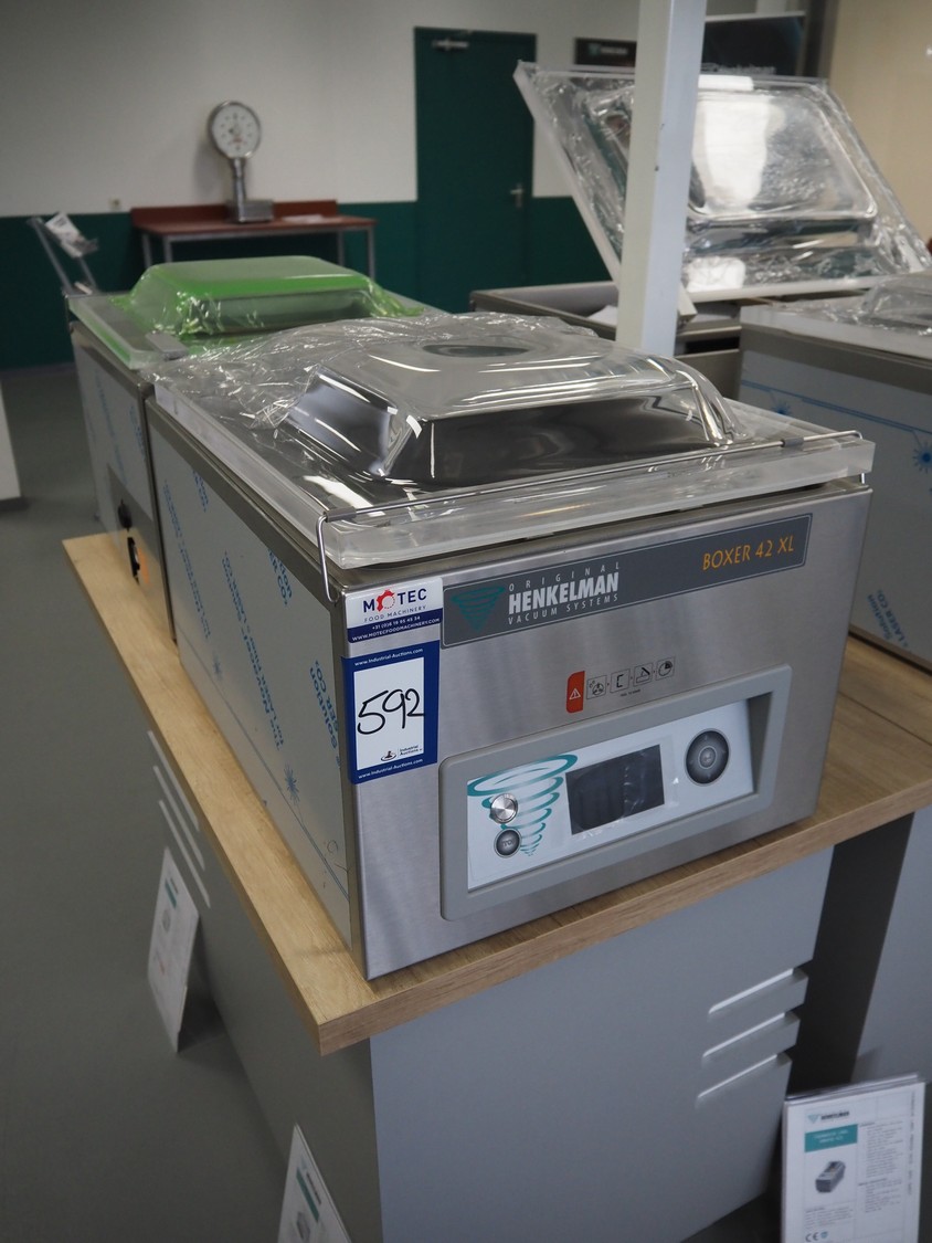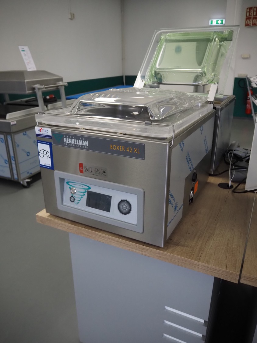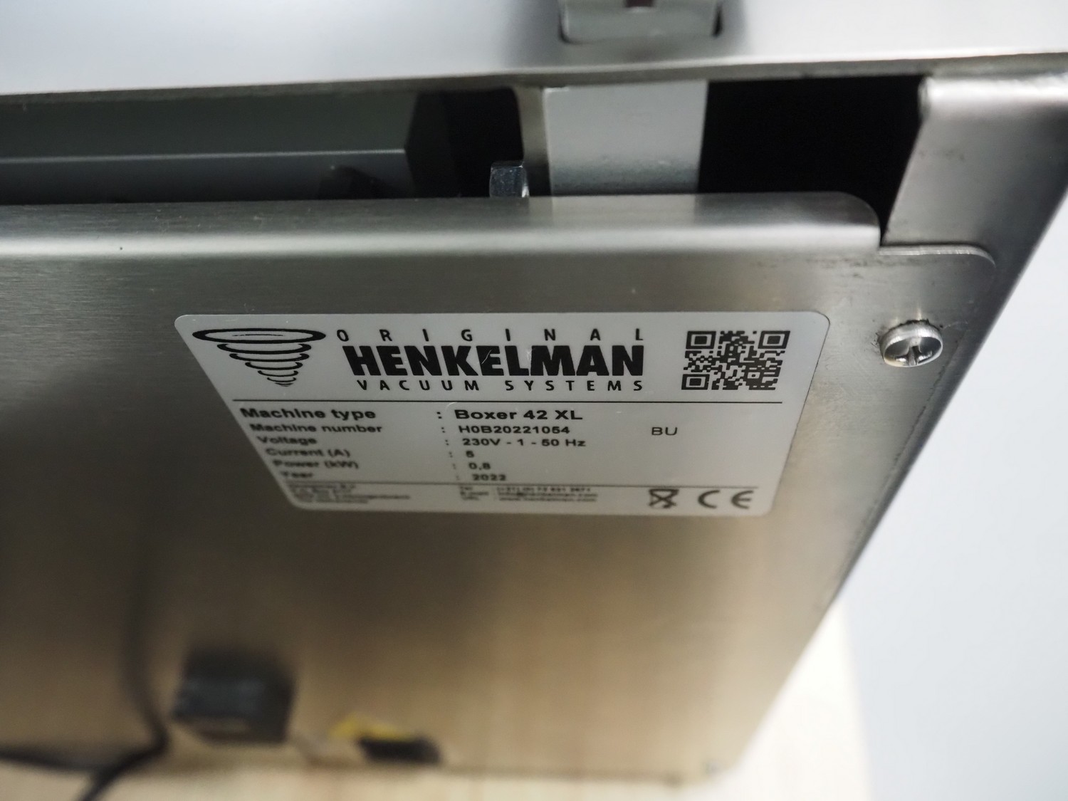 Henkelman vacuum machine, type: Boxer 42 XL, machine number: H0B20221054, year of construction: 2022, 230 V, 1 Ph, 50 Hz, 5 A, 0.8 kW, seal length: 430 mm, chamber dimensions: 460 mm x 420 mm, total dimensions: 610 mm x 500 mm x 450 mm. Never used.