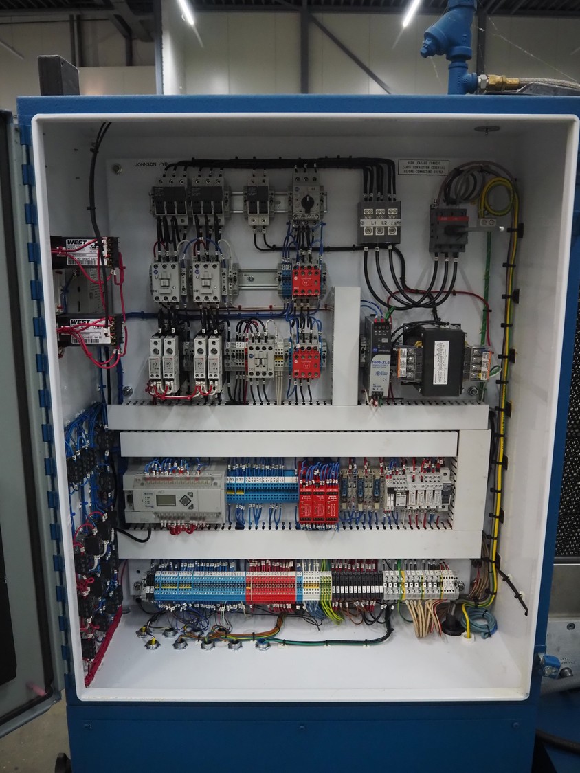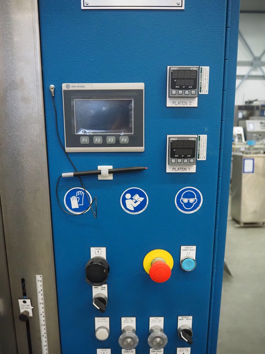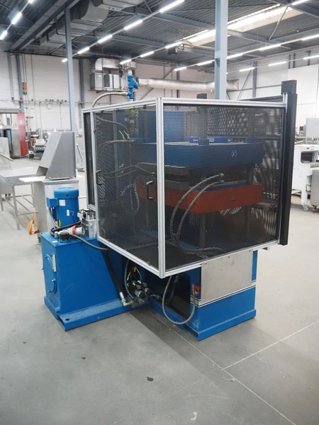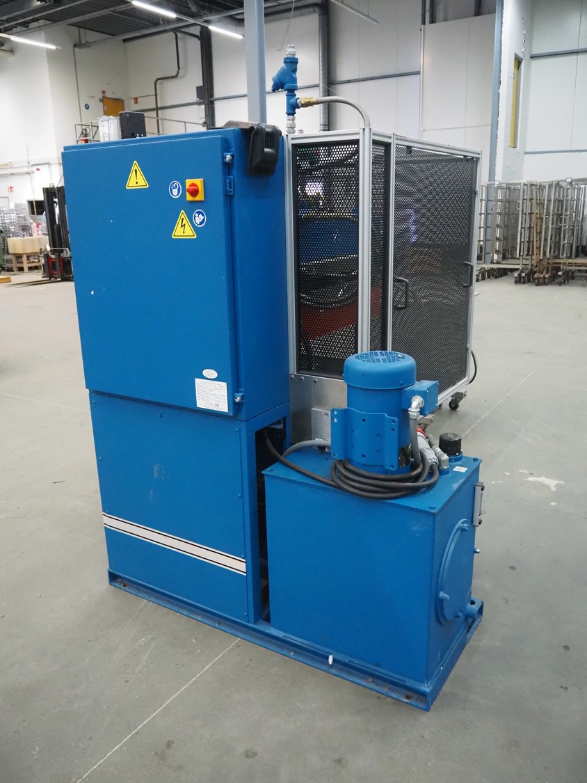 Carver compression molding press, model: CMG75H-24-CX-CE, serial number: 210499, year of construction: 02-2022, 415 V, 3 Ph, 50 Hz, 15000 Watt per plate, weight: 3036 kg, dimensions: 1550 mm x 1550 mm x 2000 mm.
