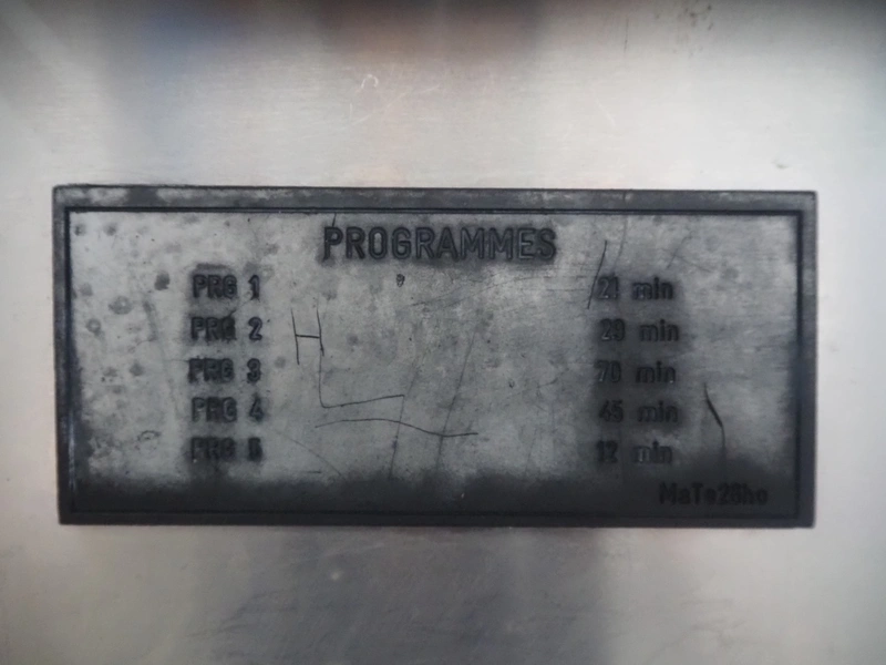 Pesutekno dishwasher, inside dimensions: 1080 mm x 650 mm, total dimensions: 1200 mm x 820 mm x 1720 mm.