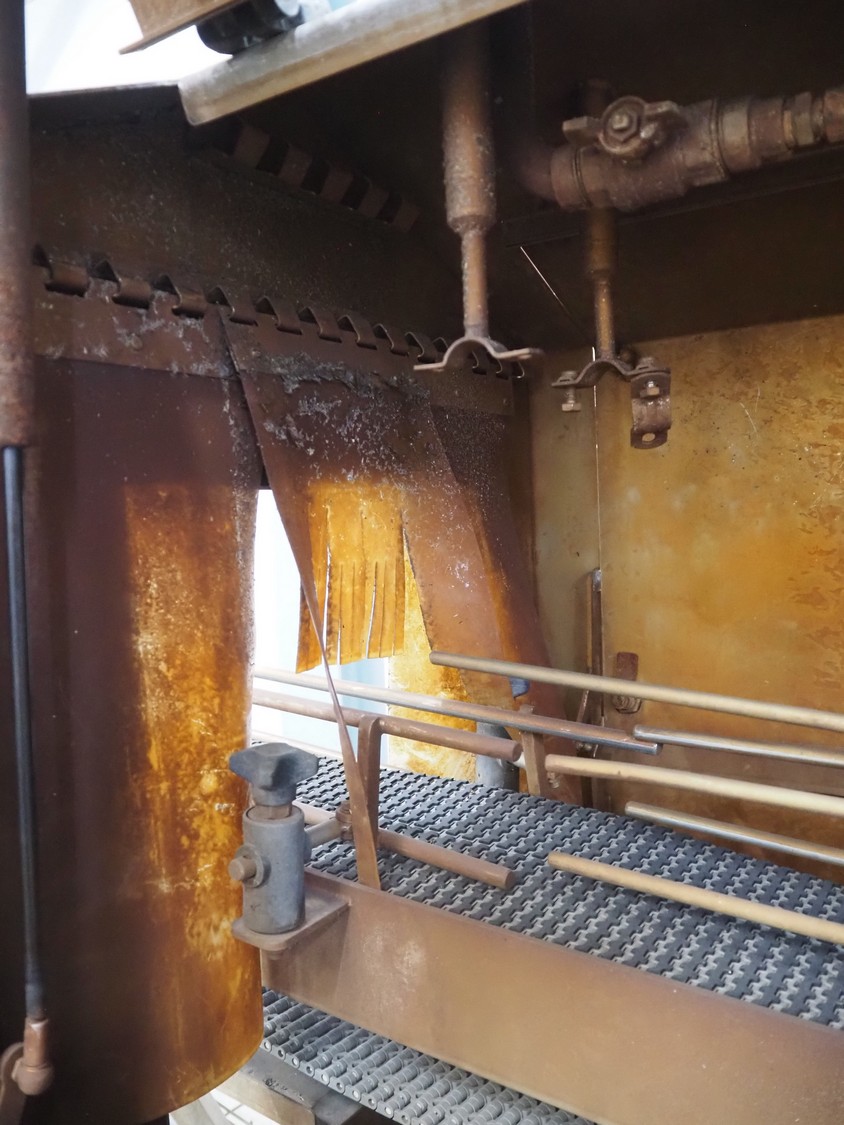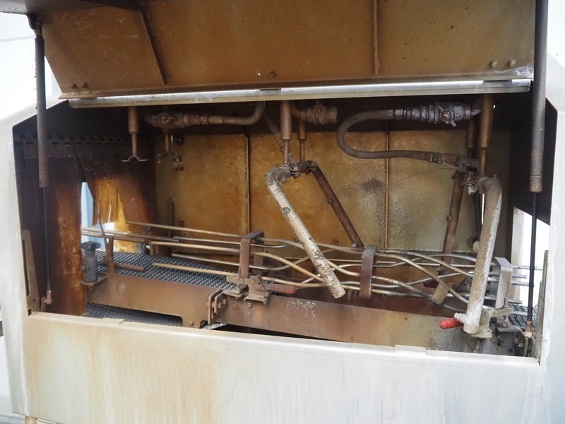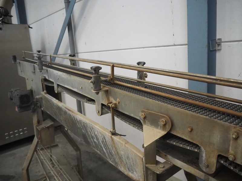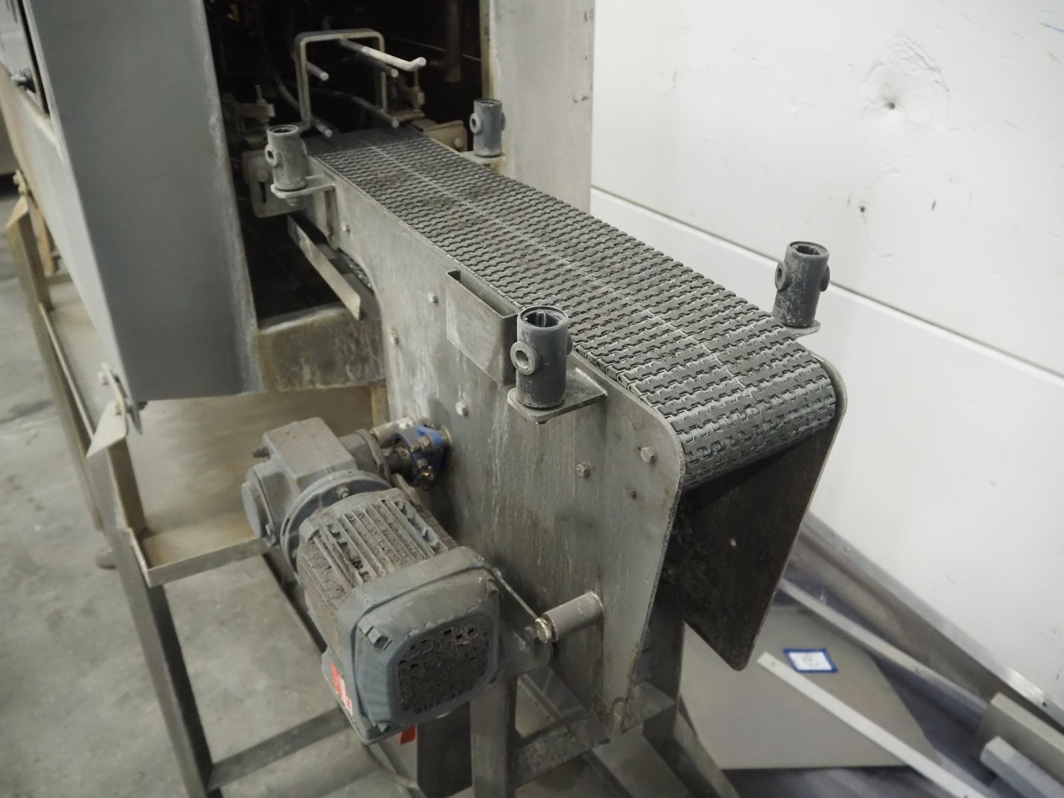 S/s can washer, clearance: 800 mm x 110 mm, plastic belt, belt width: (2x) 150 mm, total dimensions: 4230 mm x 850 mm x 1900 mm.