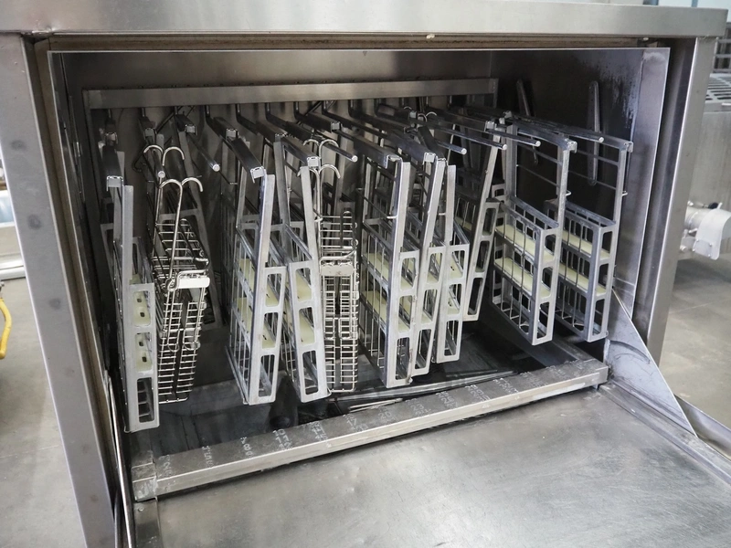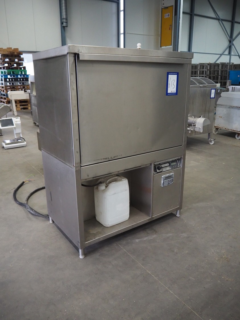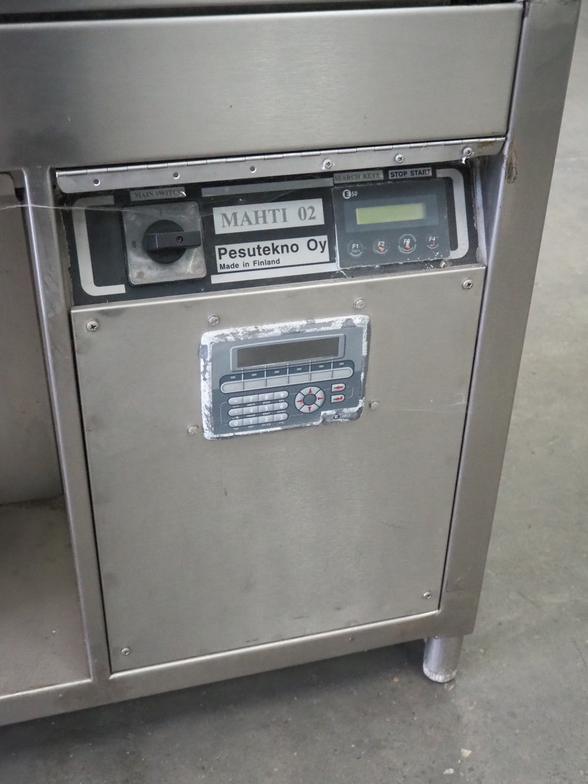 Pesutekno Oy chainmail glove and apron washer, model: Mahti 02, 14 racks, inside dimensions: 1060 mm x 510 mm x 670 mm, total dimensions: 1220 mm x 780 mm x 1680 mm.