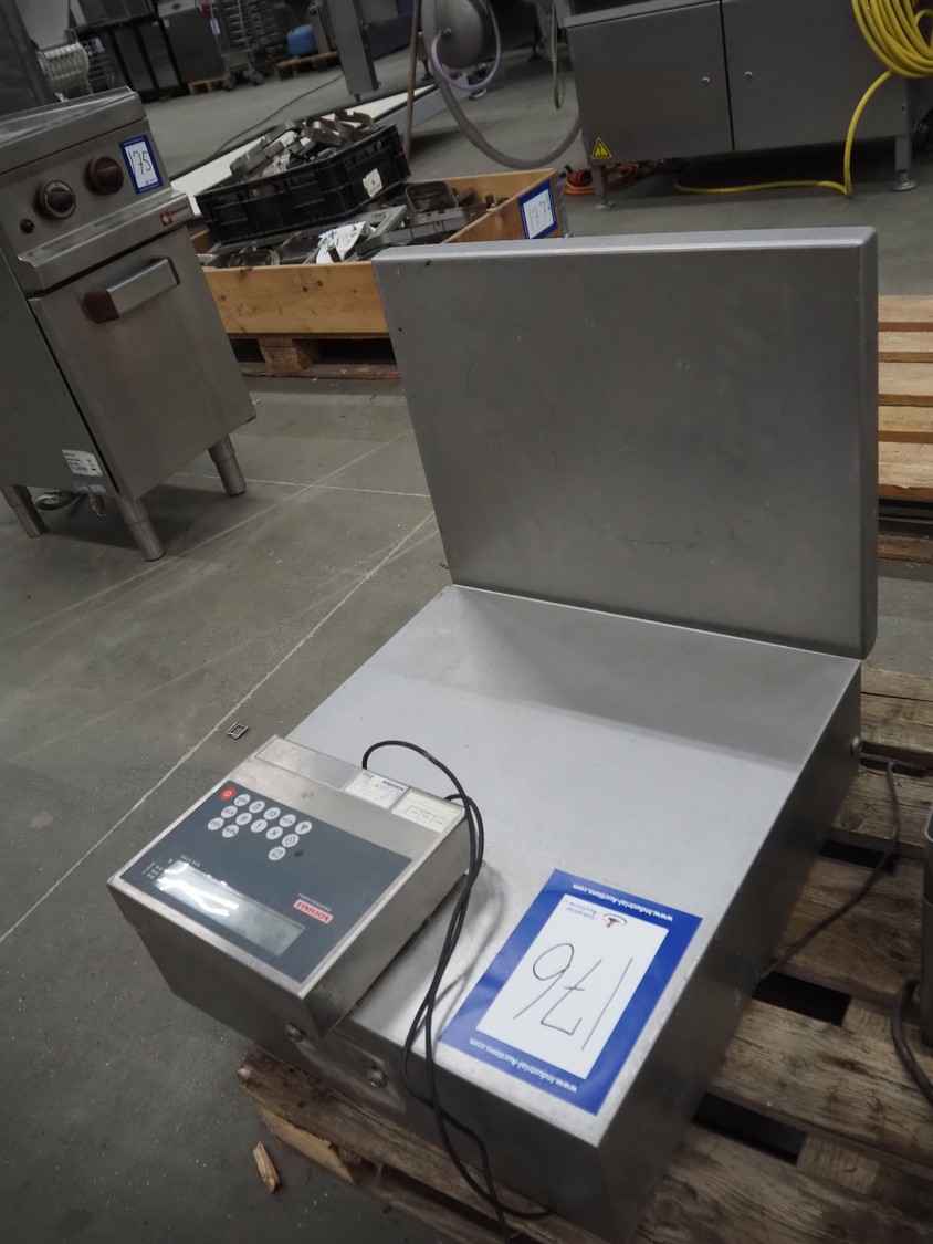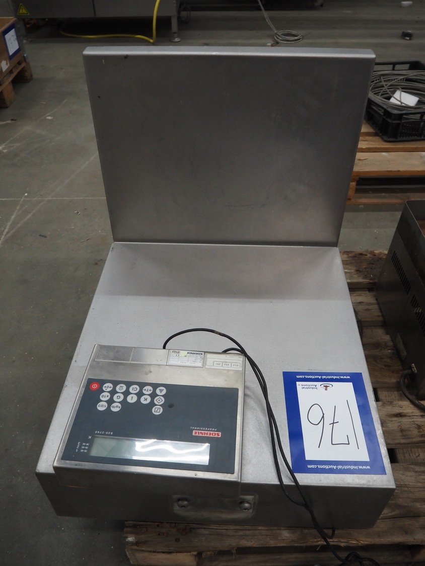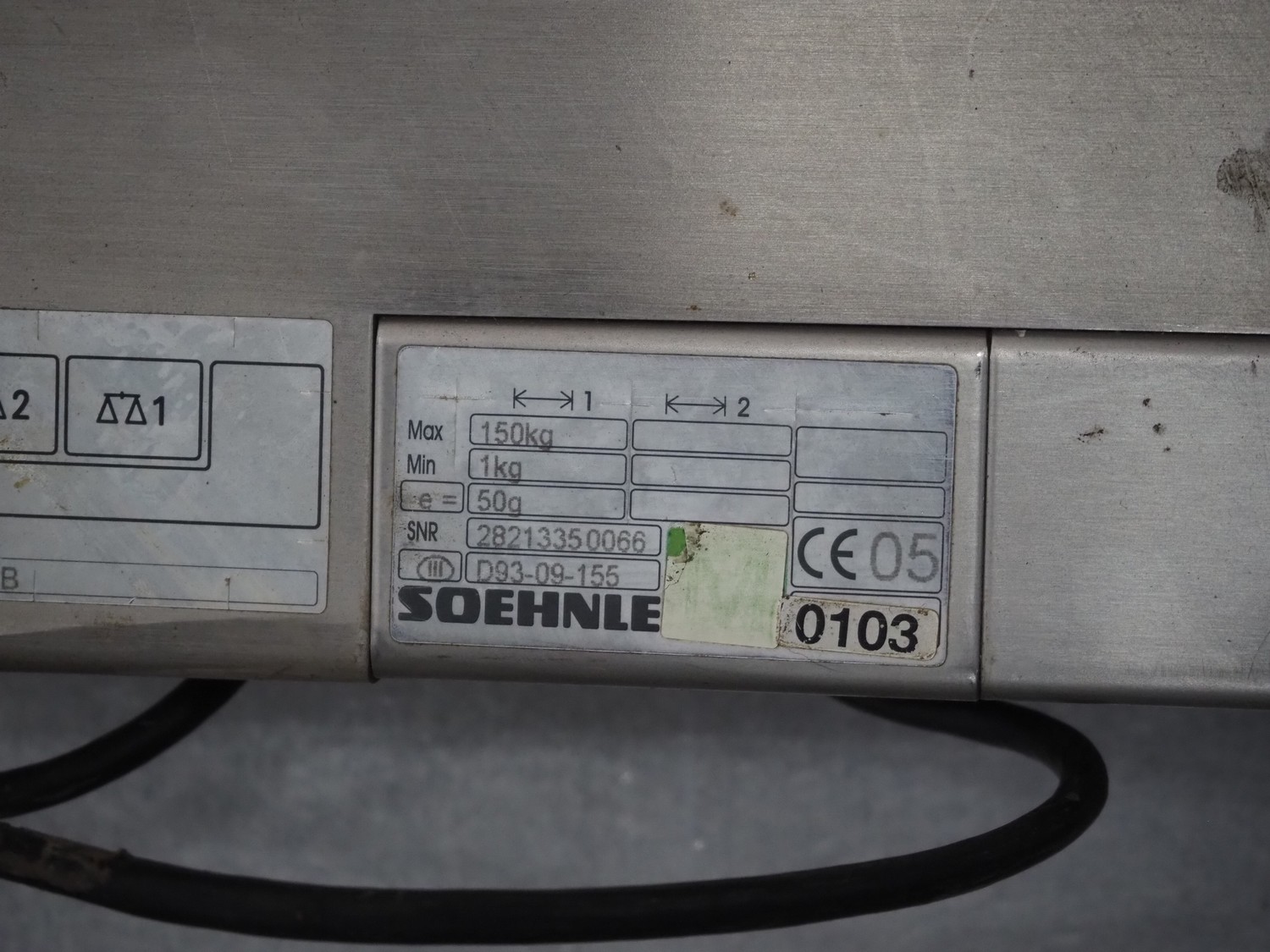 Soehnle hook weighing scale with indicator, serial number: 28213350066, maximum weight: 150 kg, minimum weight: 1 kg, e= 50 gram, dimensions: 570 mm x 300 mm x 700 mm.