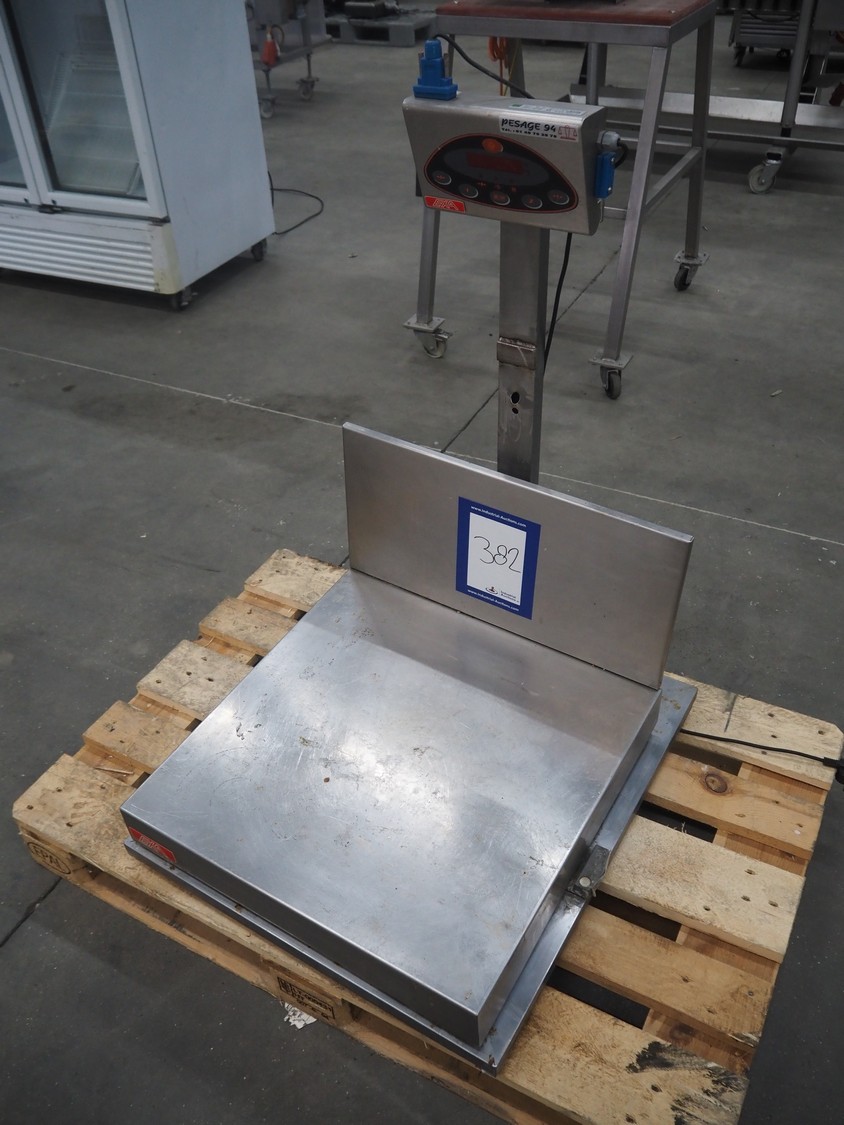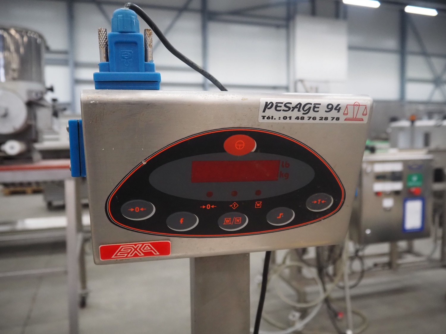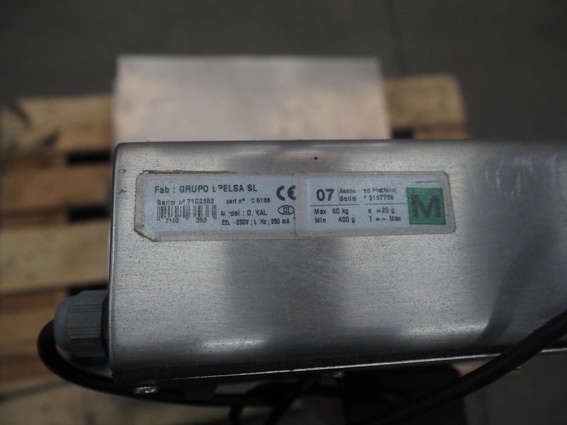 Grupo Epelsa SL, weighing scale with indicator, model: D.XAL, serial number: 7102352, 220-230 V, maximum weight: 60 kg, minimum weight: 400 g, scale dimensions: 600 mm x 600 mm, total dimensions: 700 mm x 650 mm x 1100 mm.