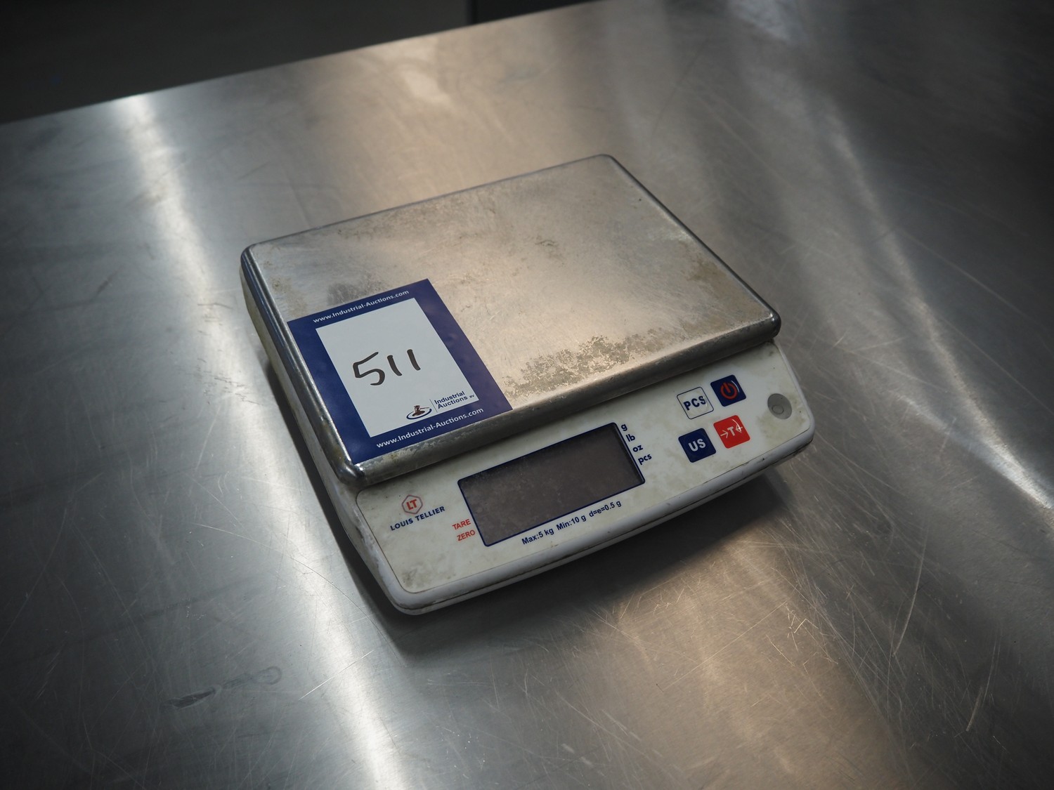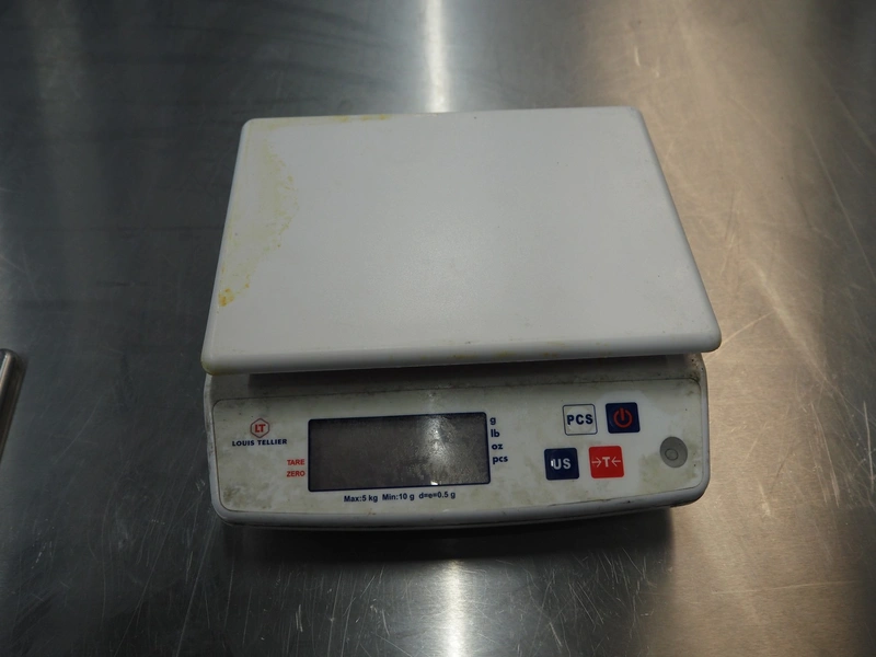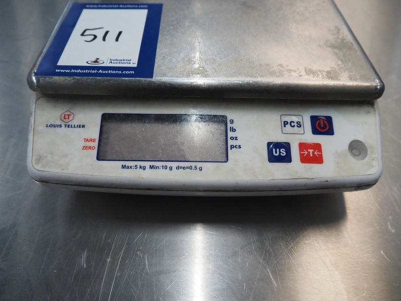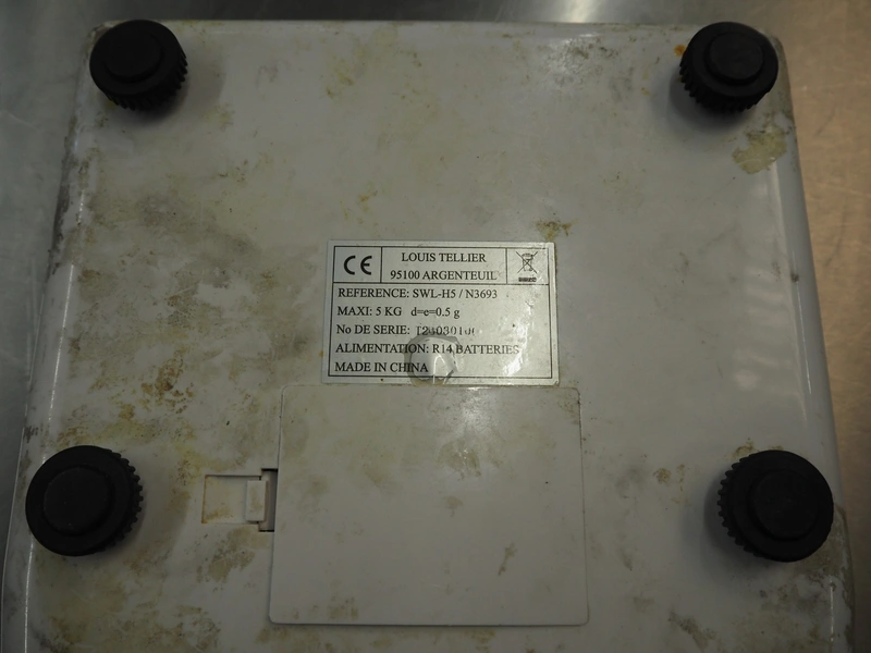 Louis Tellier weighing scale, serial numbe: T25030100, maximum weight: 5 kg, e=d= 0.5 gram, dimensions: 240 mm x 180 mm x 75 mm.