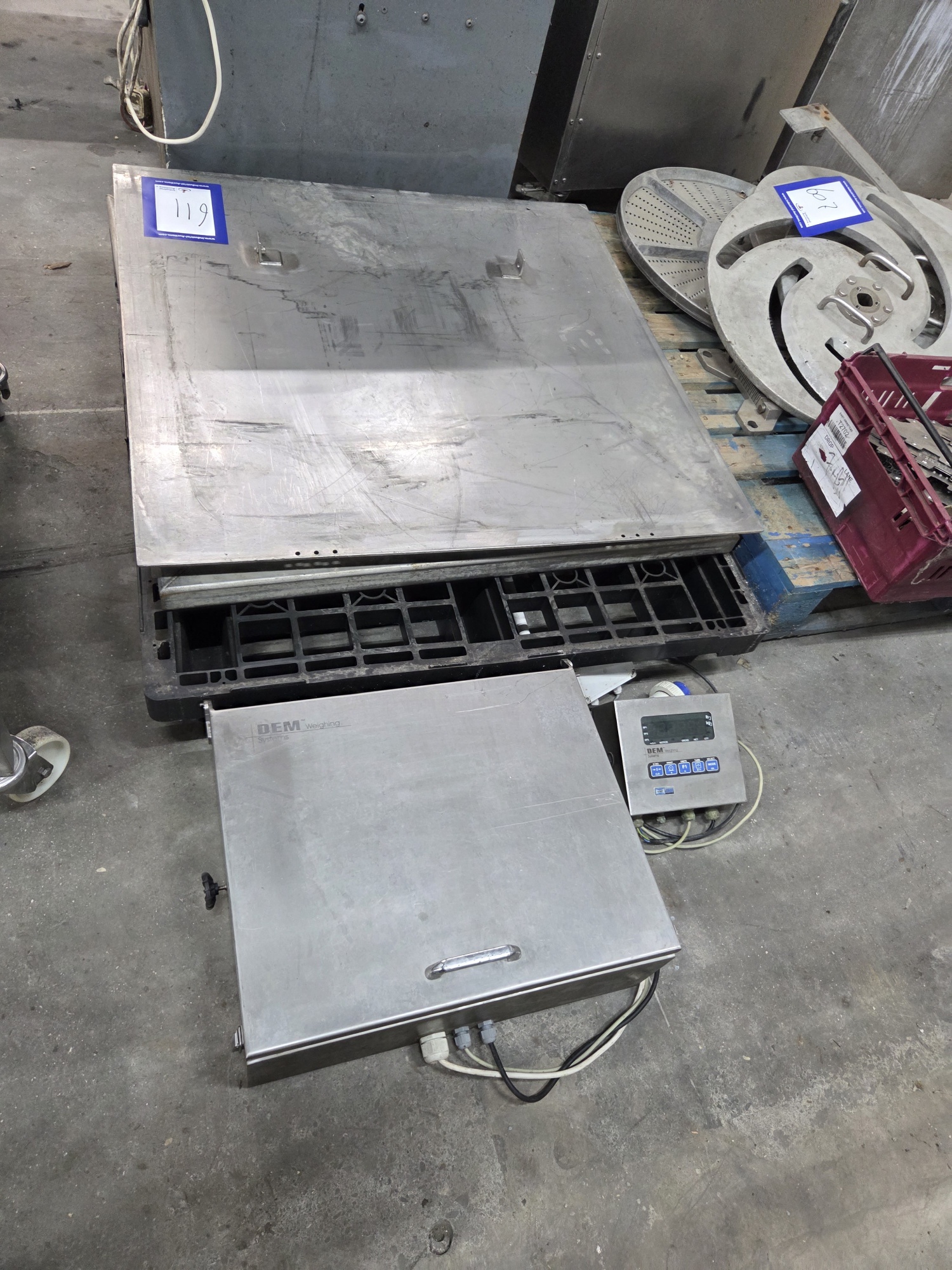 DEM weighing systems weighing scale and indicator, scale dimensions: 1000 mm x 1000 mm.
