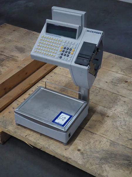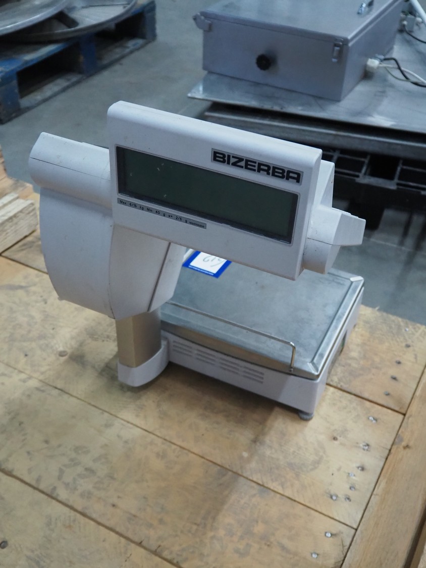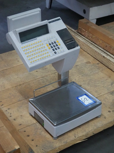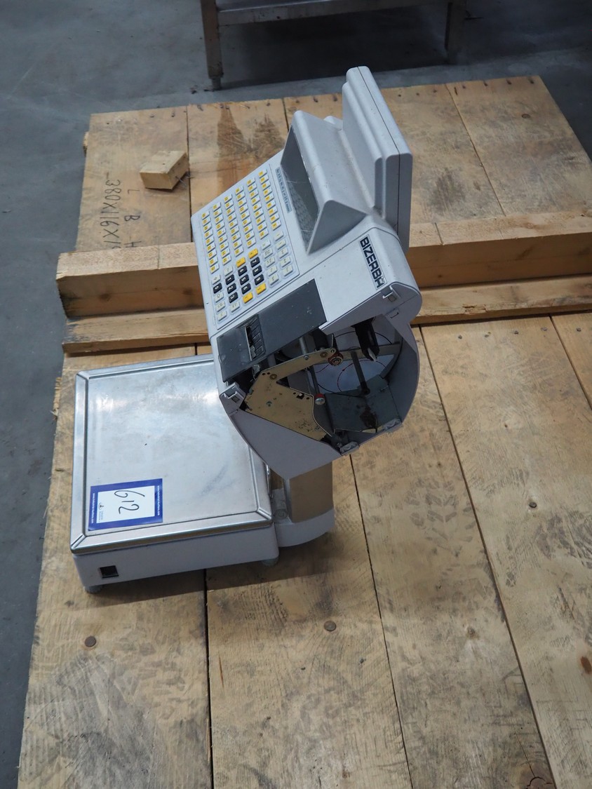 Bizerba weiging scale with indicator, maximum weight: 6/15 kg, minimum weight: 40 gram, e= 2/5 gram, dimensions: 500 mm x 360 mm x 560 mm.