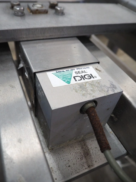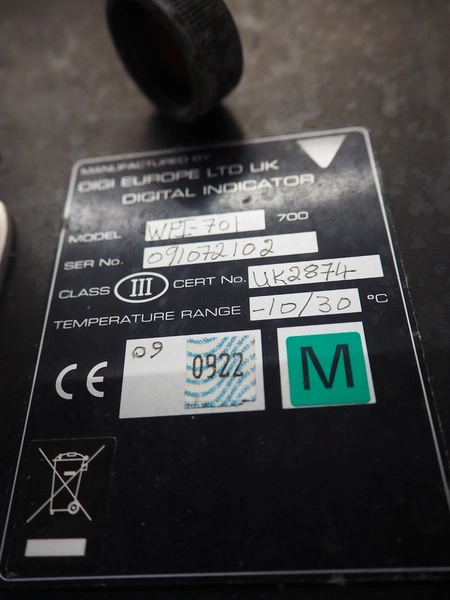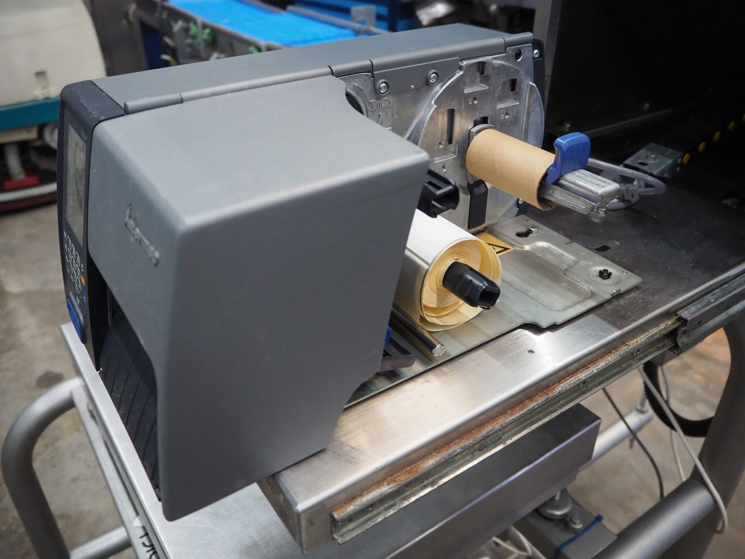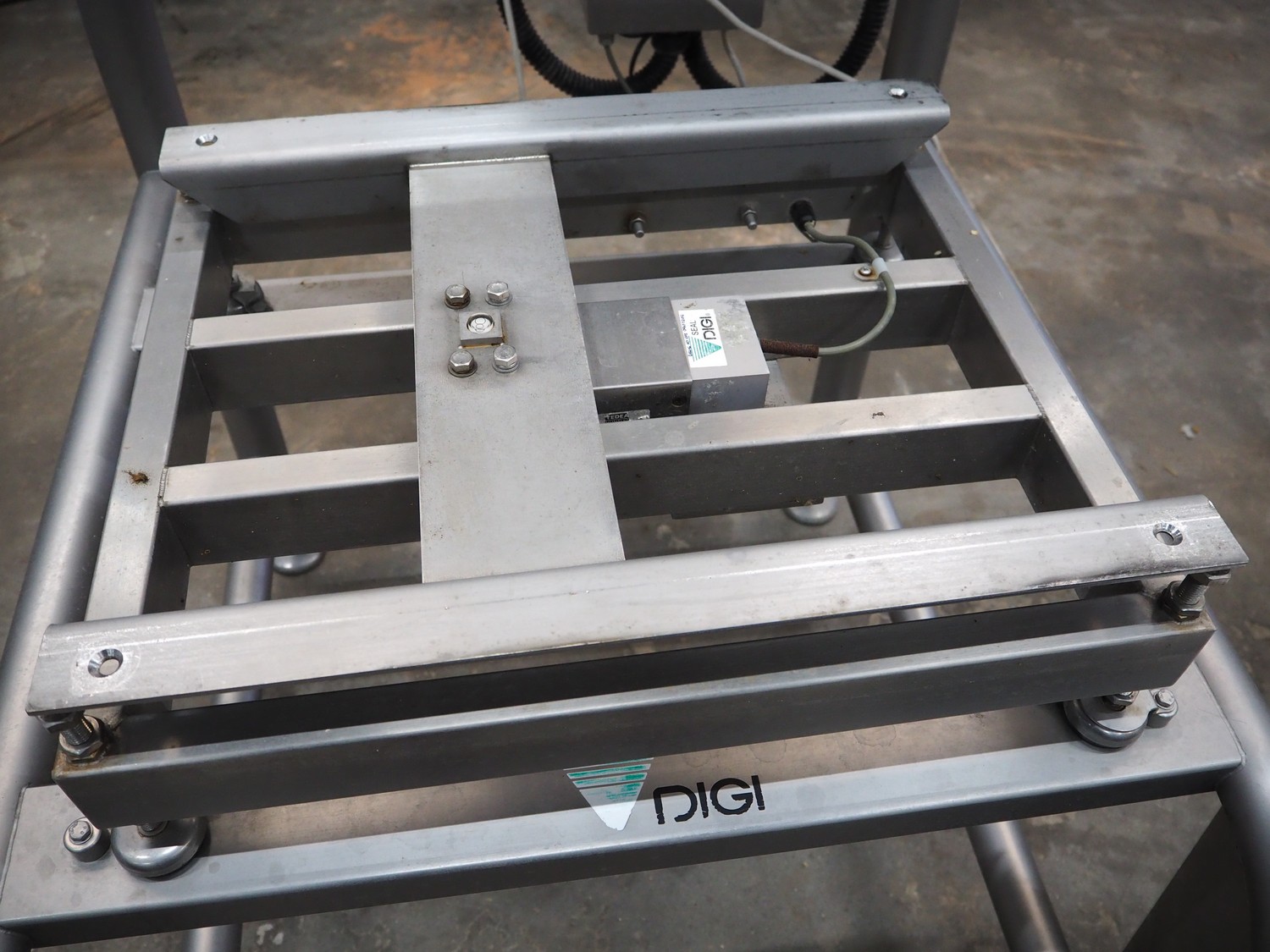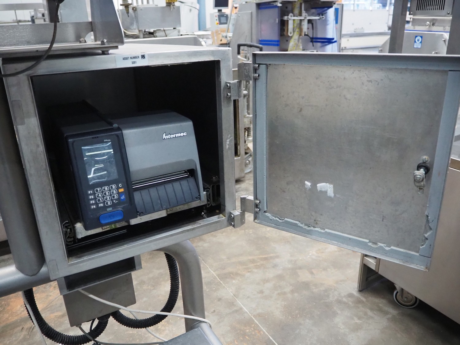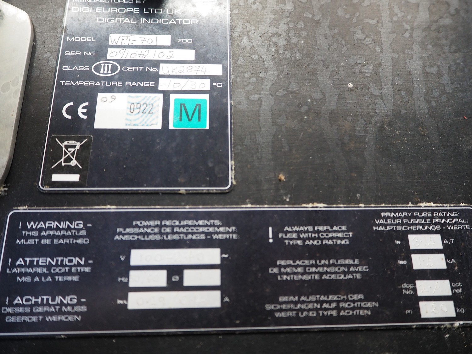 Digi Europe Ltd weighing scale with Intermec label printer, model weighing scale, WPI-70, serial number: 091072102, dimensions: 850 mm x 1500 mm x 1800 mm.