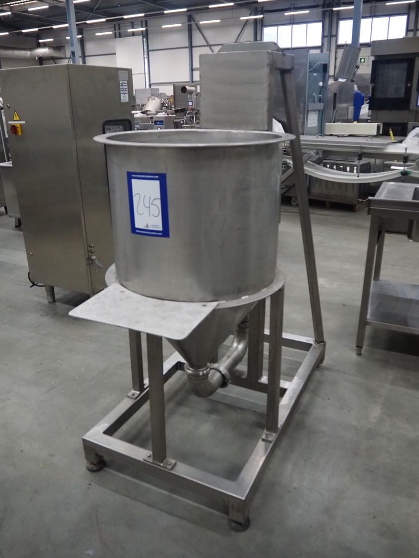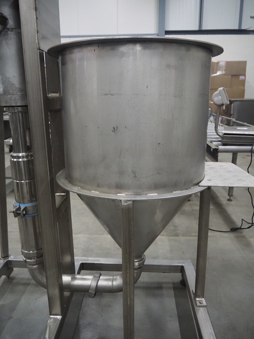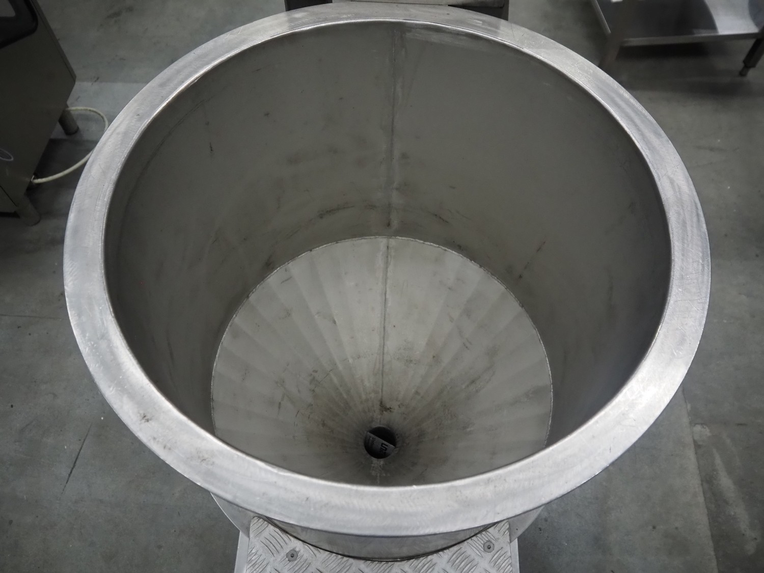 Unitrans s/s tank with pump, inside dimensions: 590 mm x 590 mm x 590 mm, total dimensions: 1300 mm x 700 mm x 1650 mm.