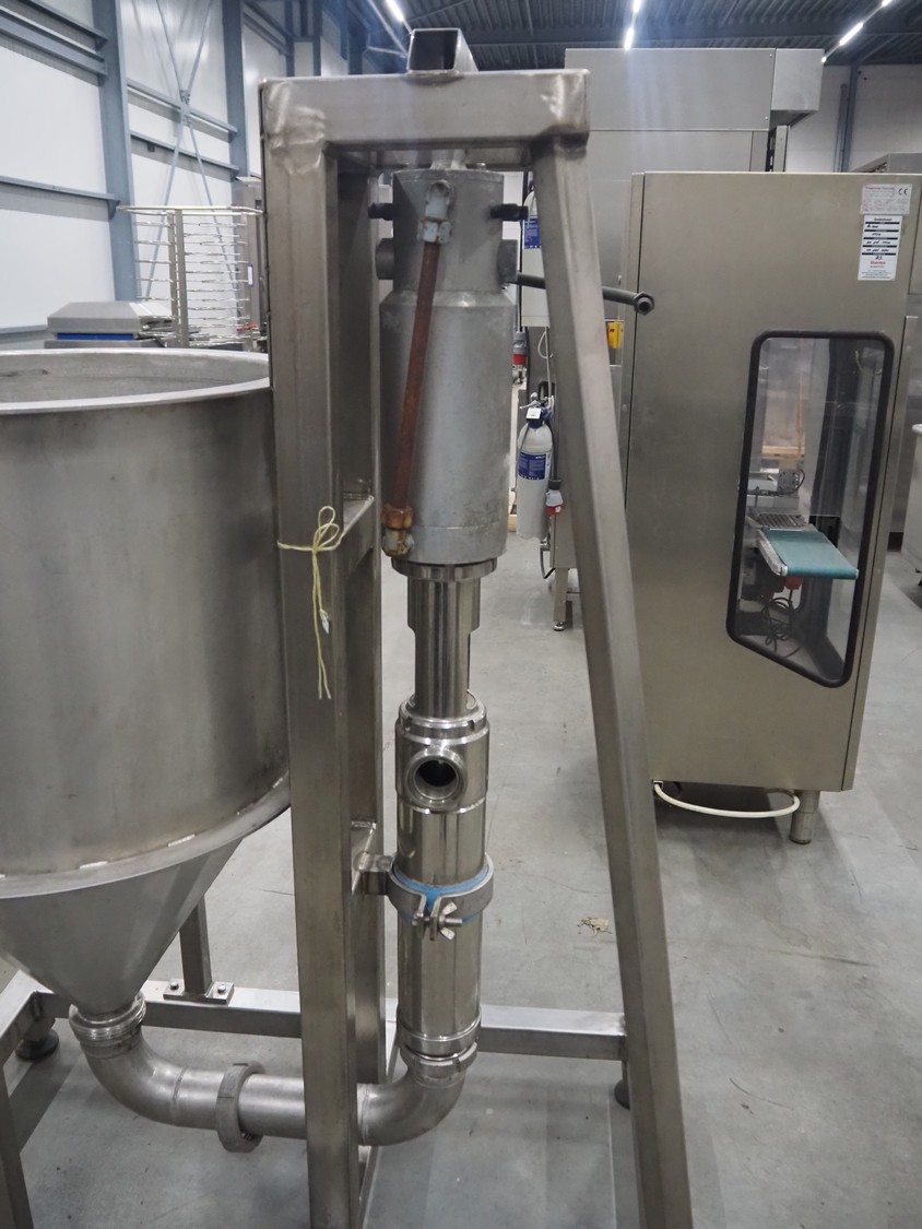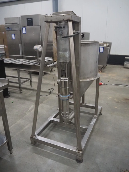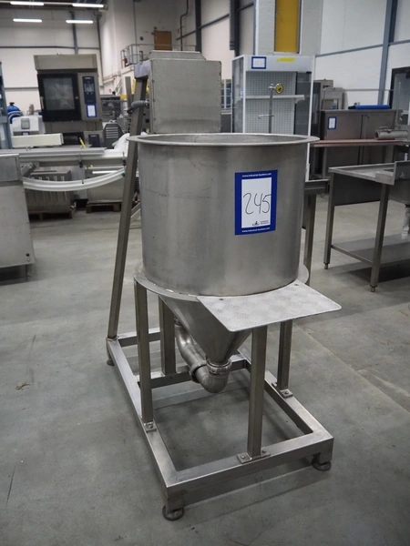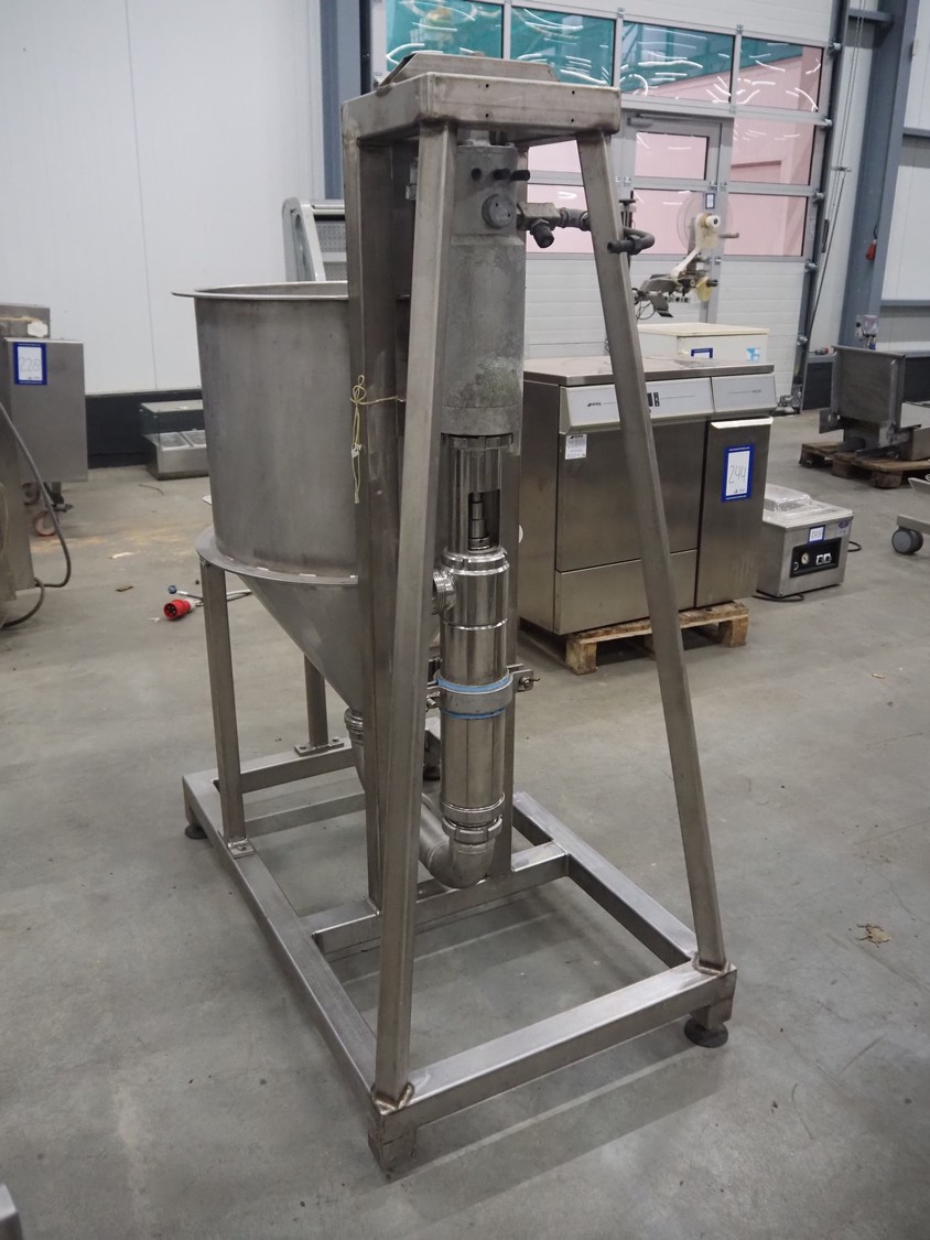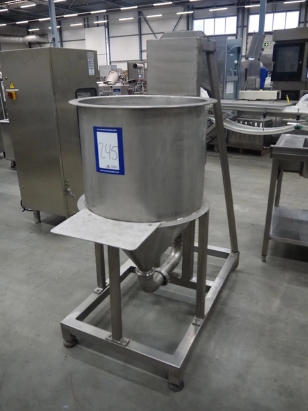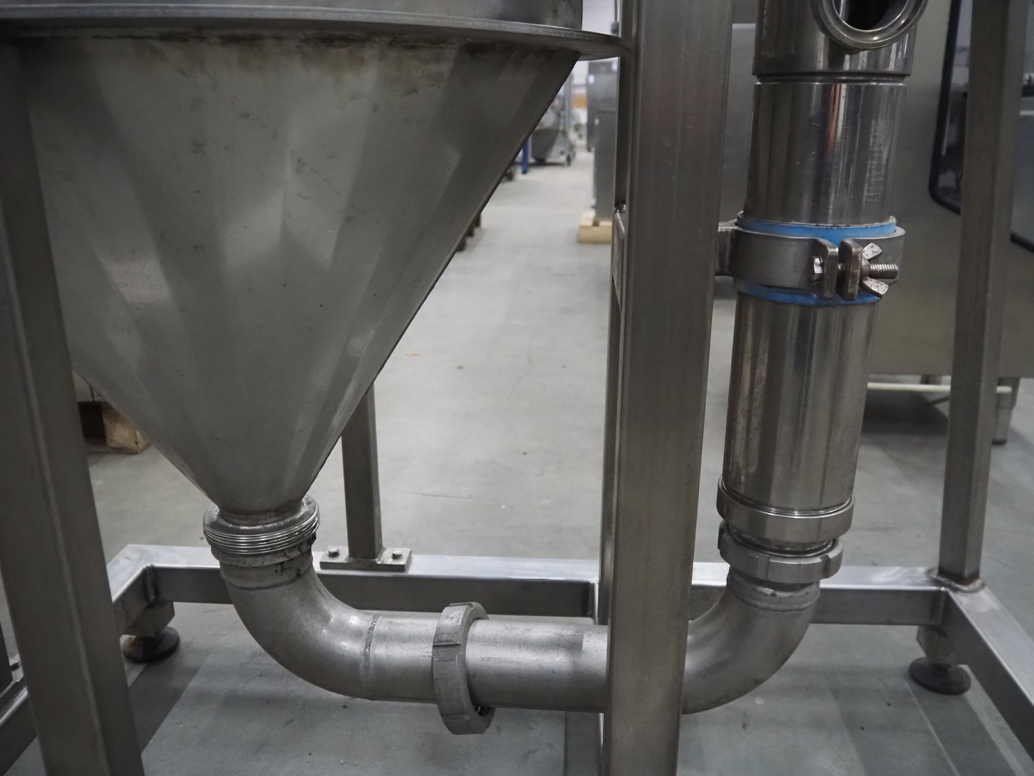 Unitrans s/s tank with pump, inside dimensions: 590 mm x 590 mm x 590 mm, total dimensions: 1300 mm x 700 mm x 1650 mm.