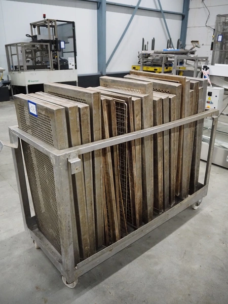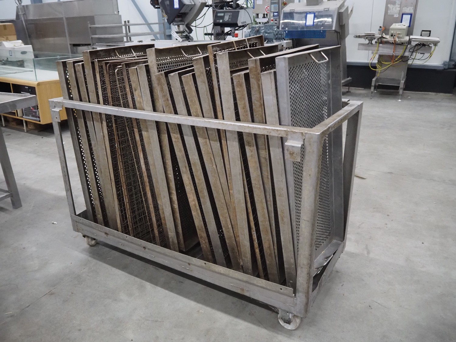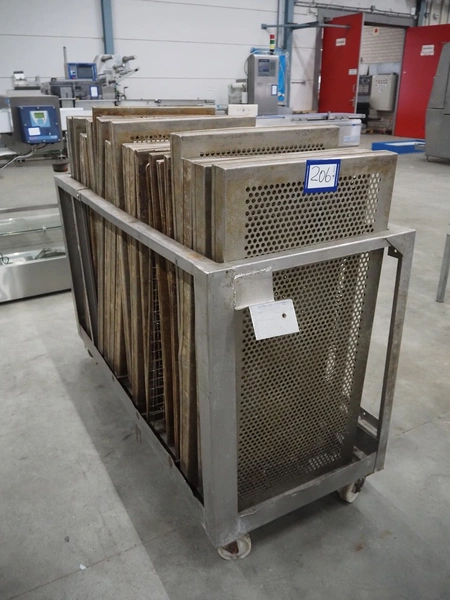 S/s trolley with s/s plates, plate dimensions: 500 mm x 1000 mm, dimensions trolley: 1600 mm x 650 mm x 1150 mm.